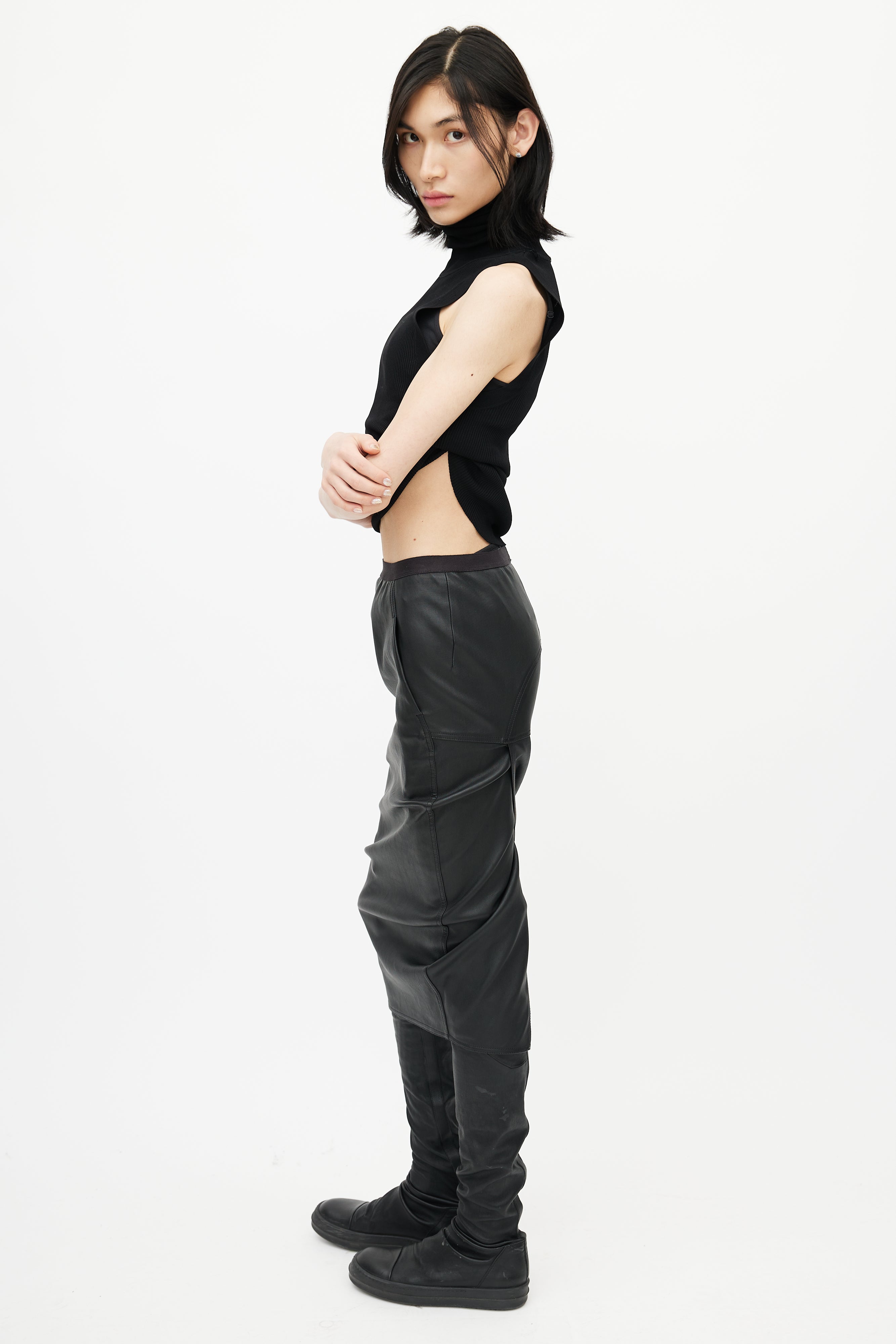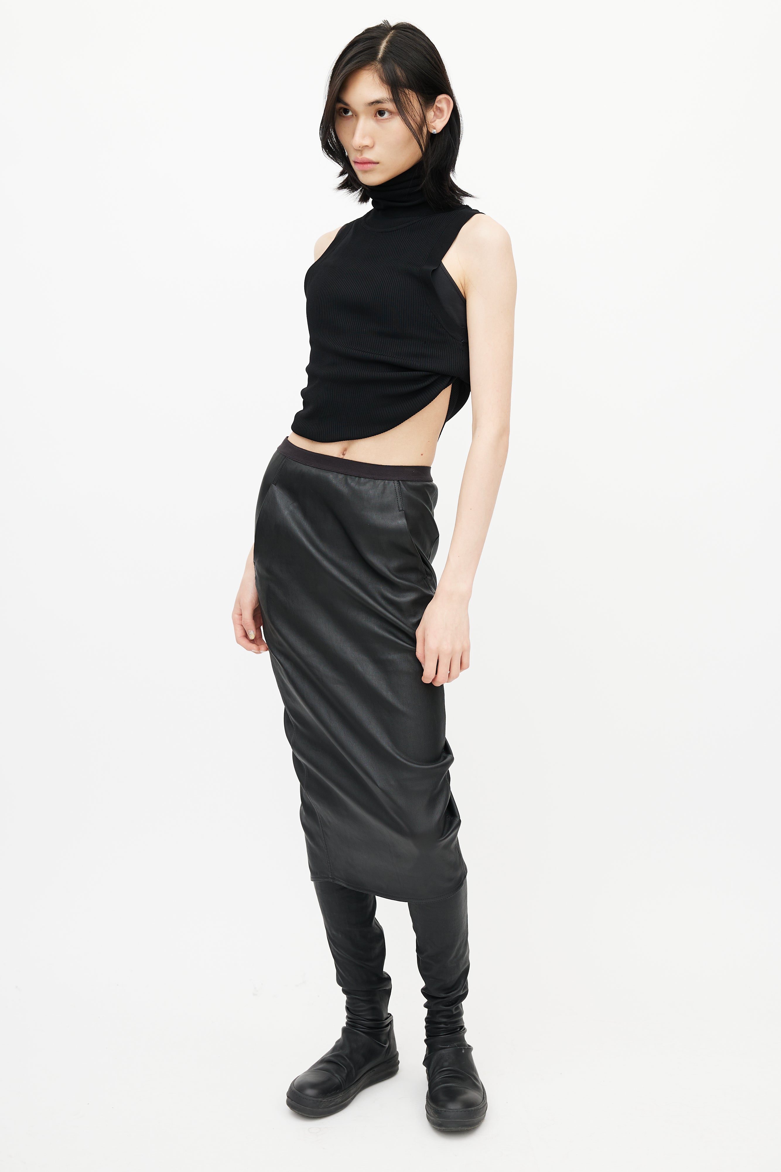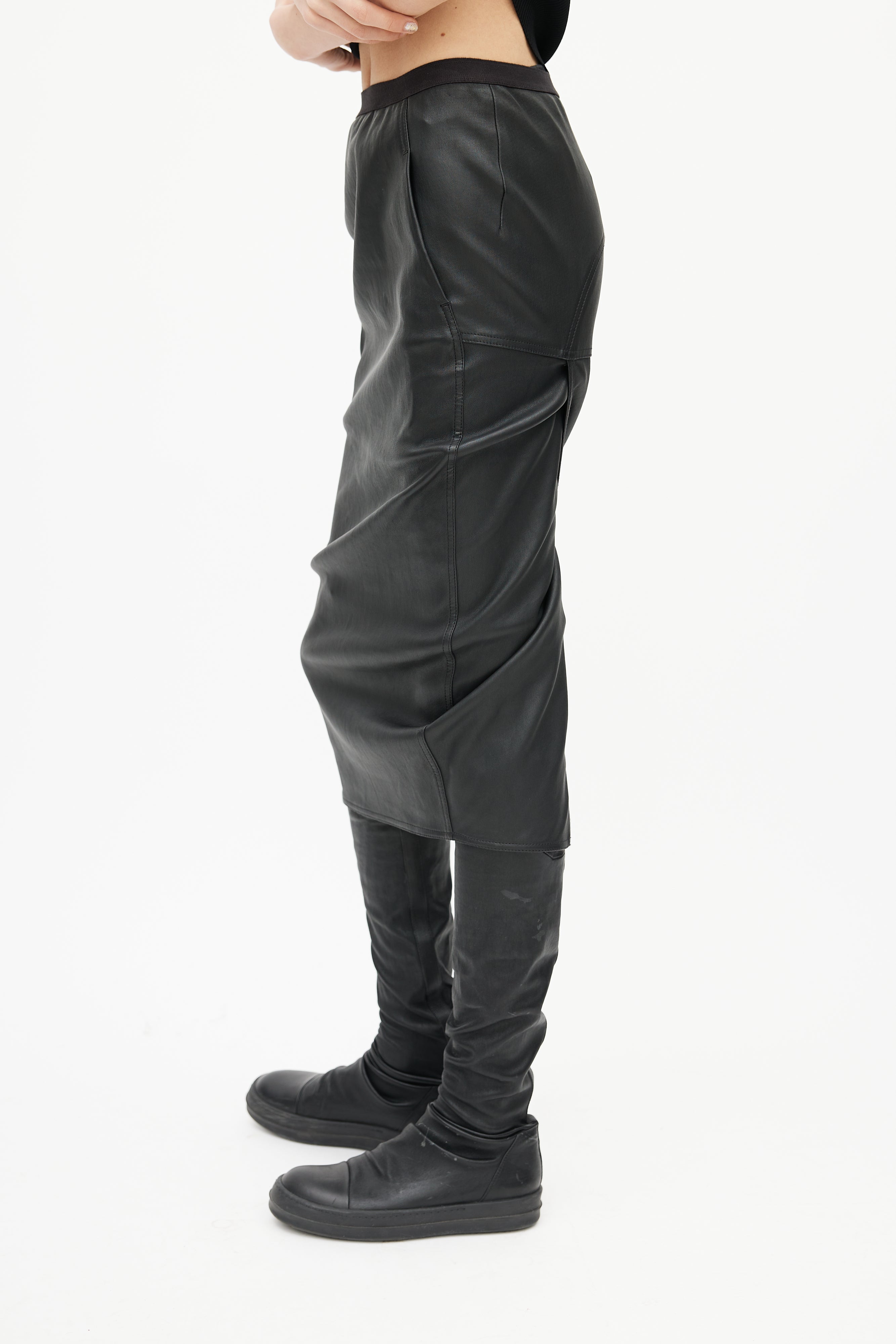 Pre-owned Fall/Winter 2021 Rick Owens black leather pencil skirt featuring an elasticized waist, two slip pockets at waist, and panelled seams at back. Lined.
