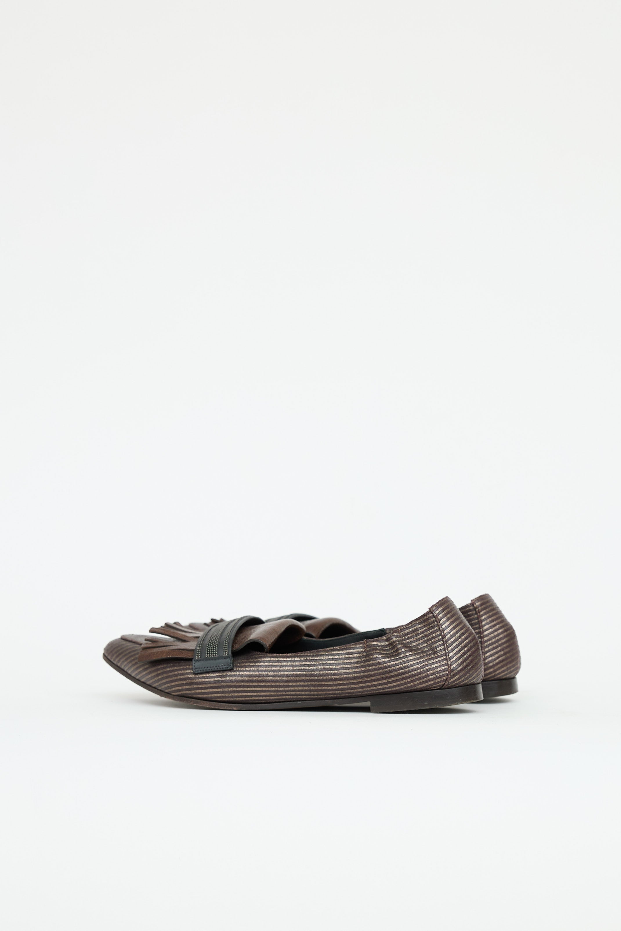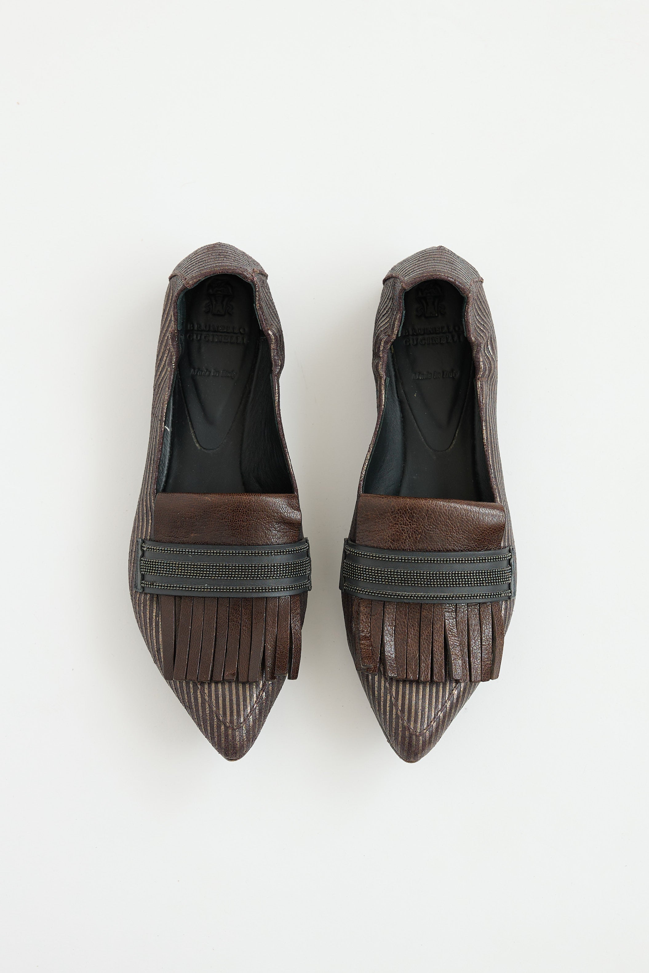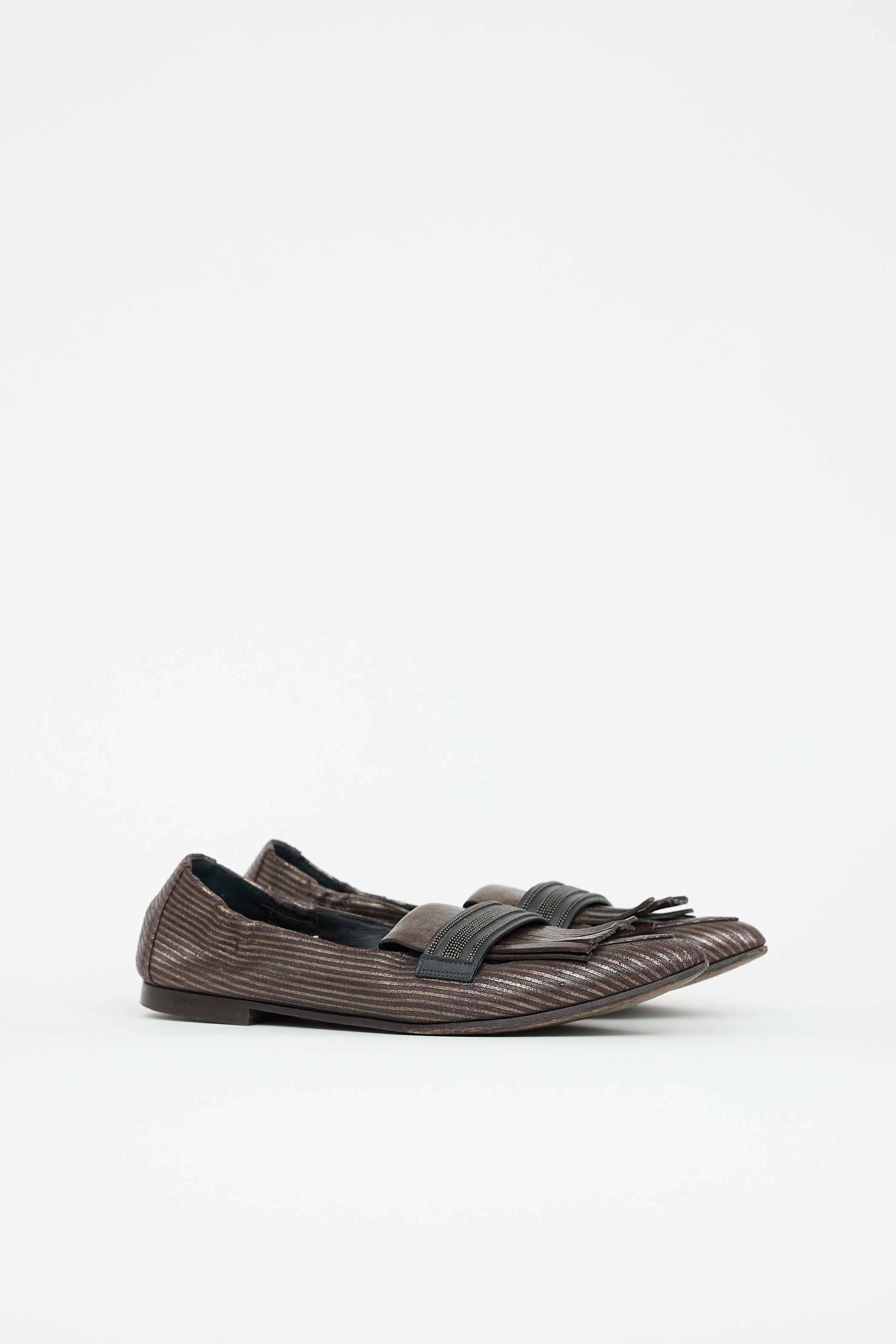 Brunello Cucinelli Pinstripe Monili Fringe Loafer IT 36