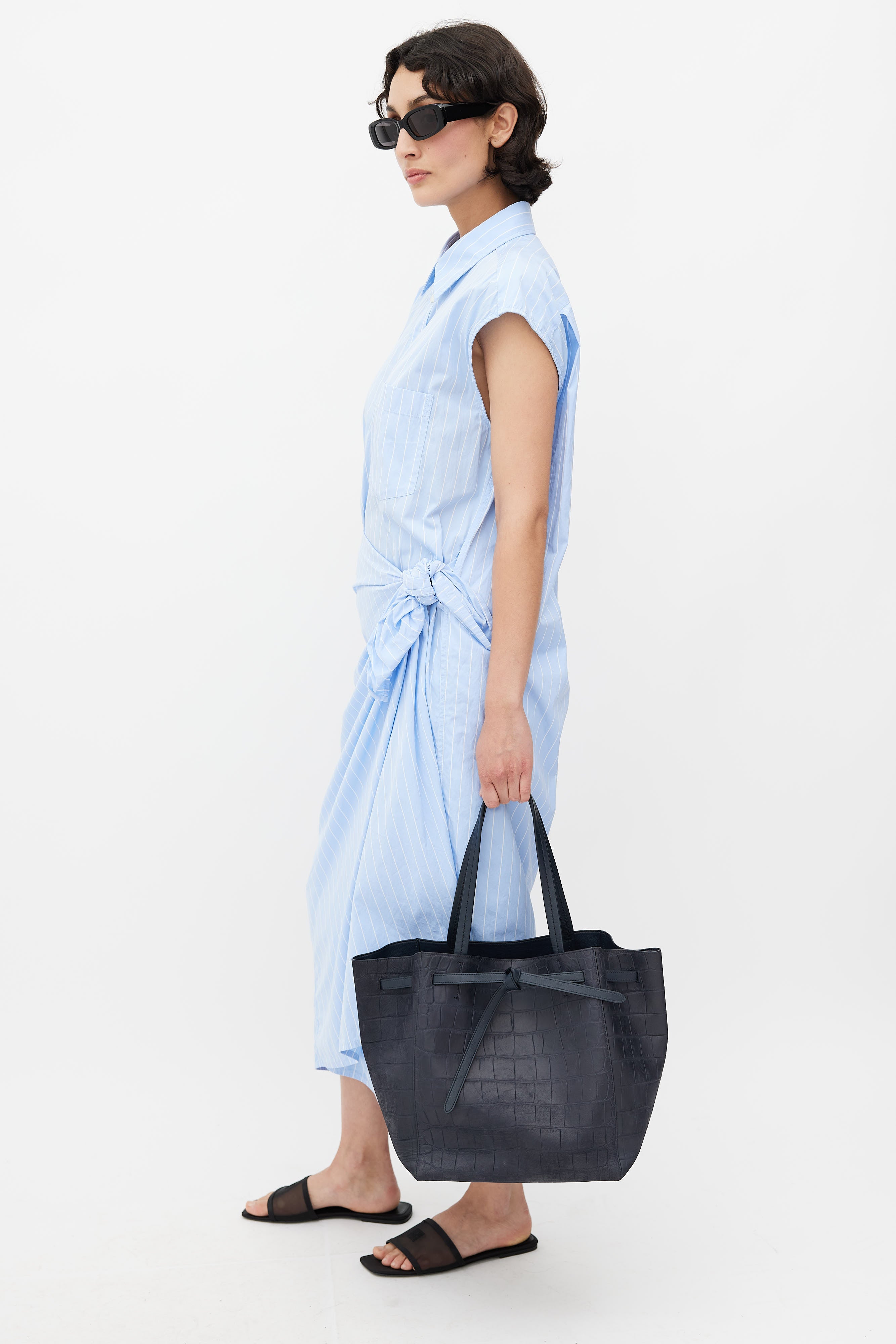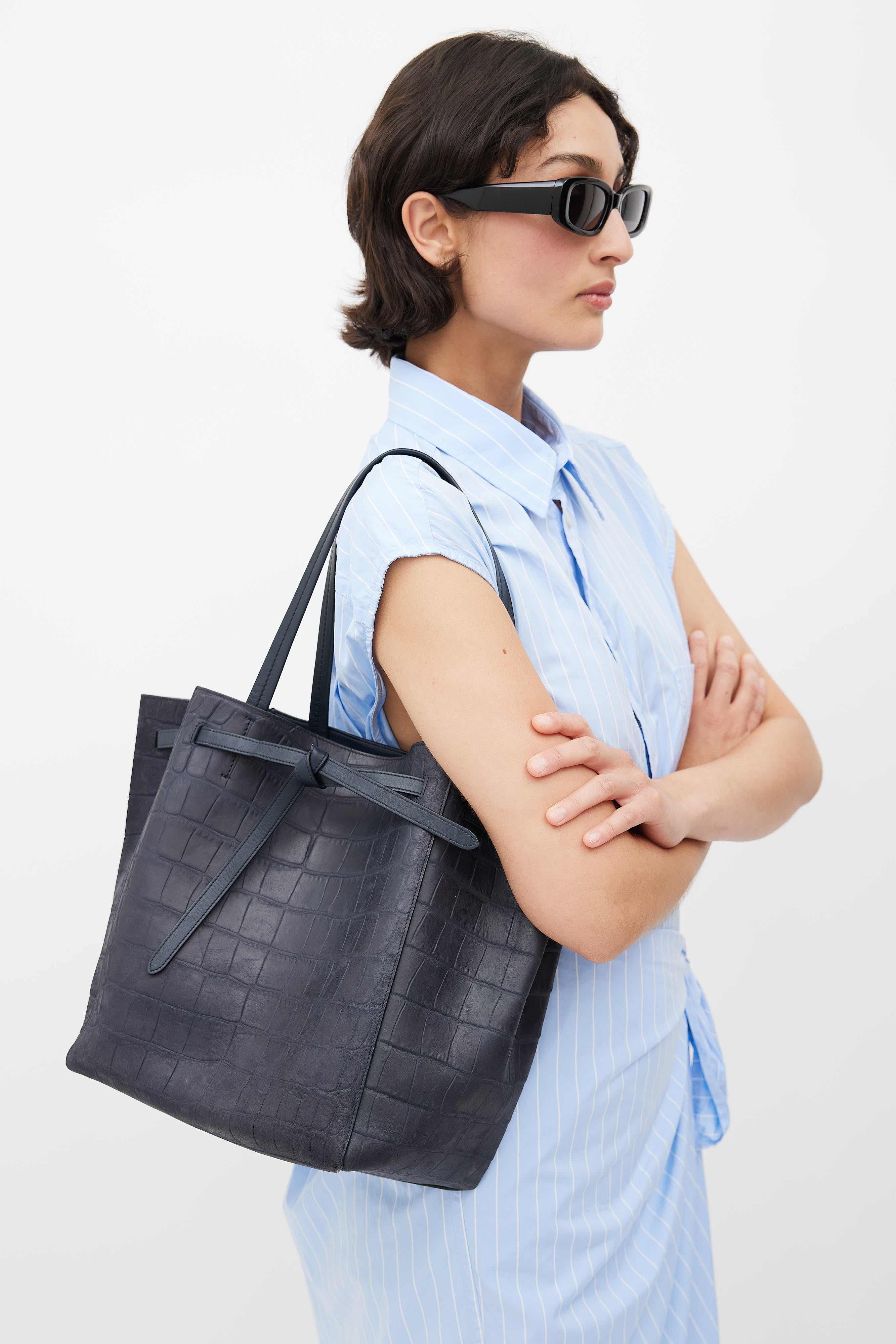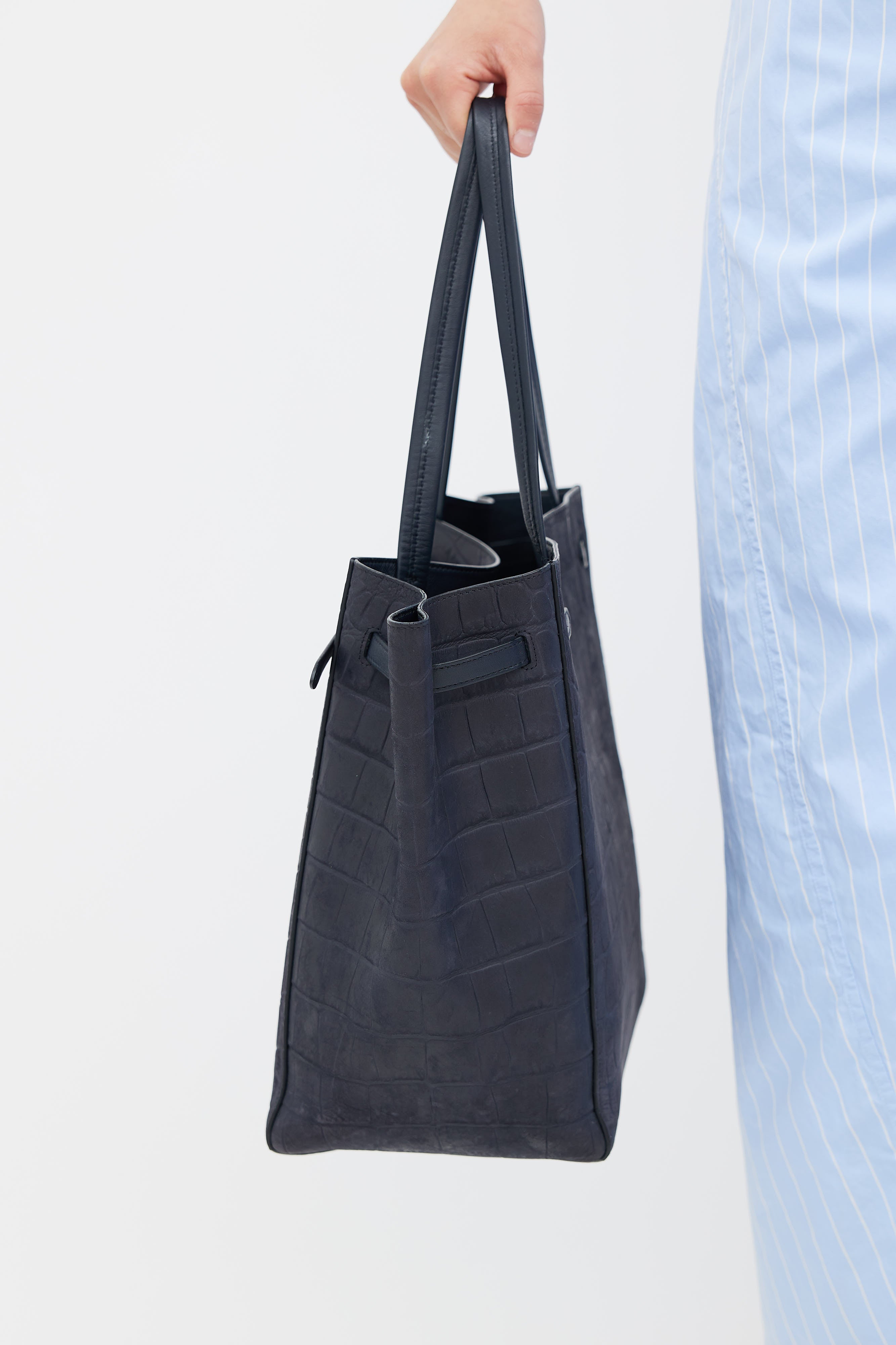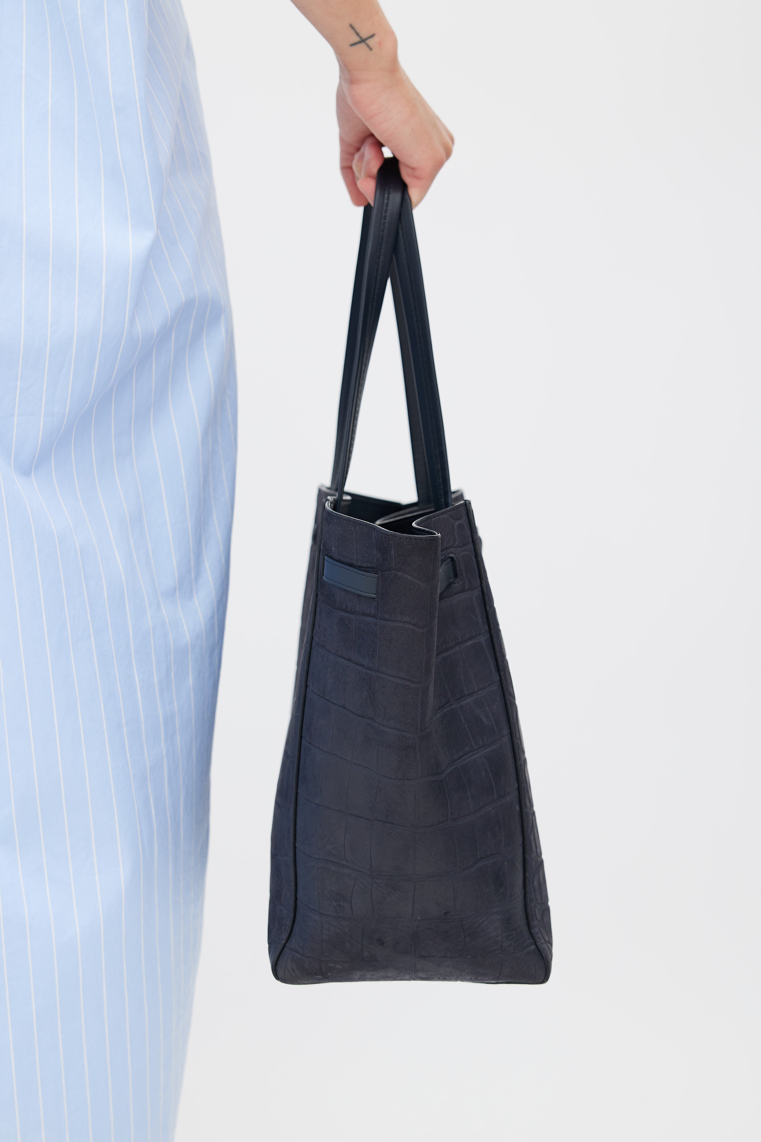 Navy Embossed Leather Cabas Phantom Tote Bag