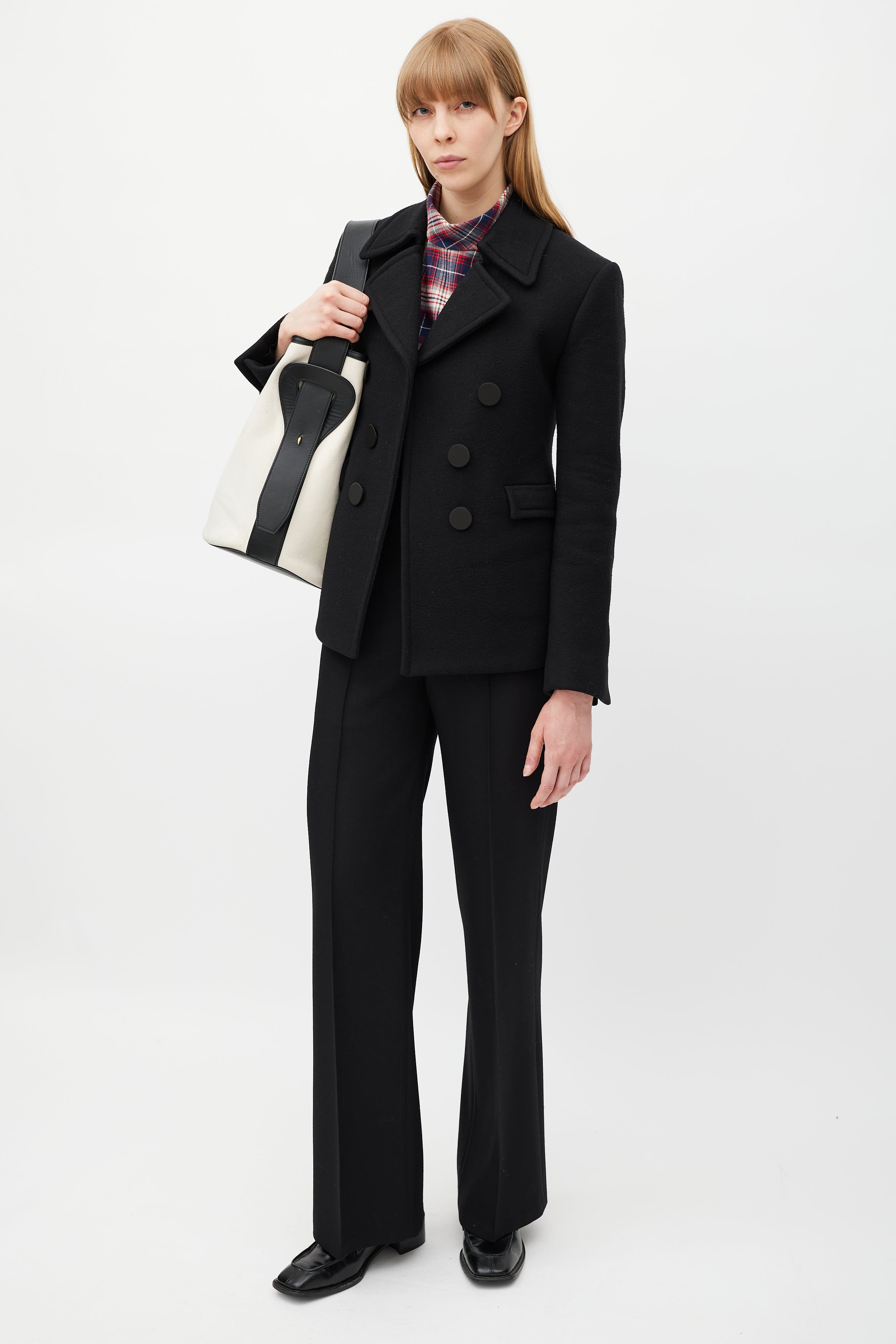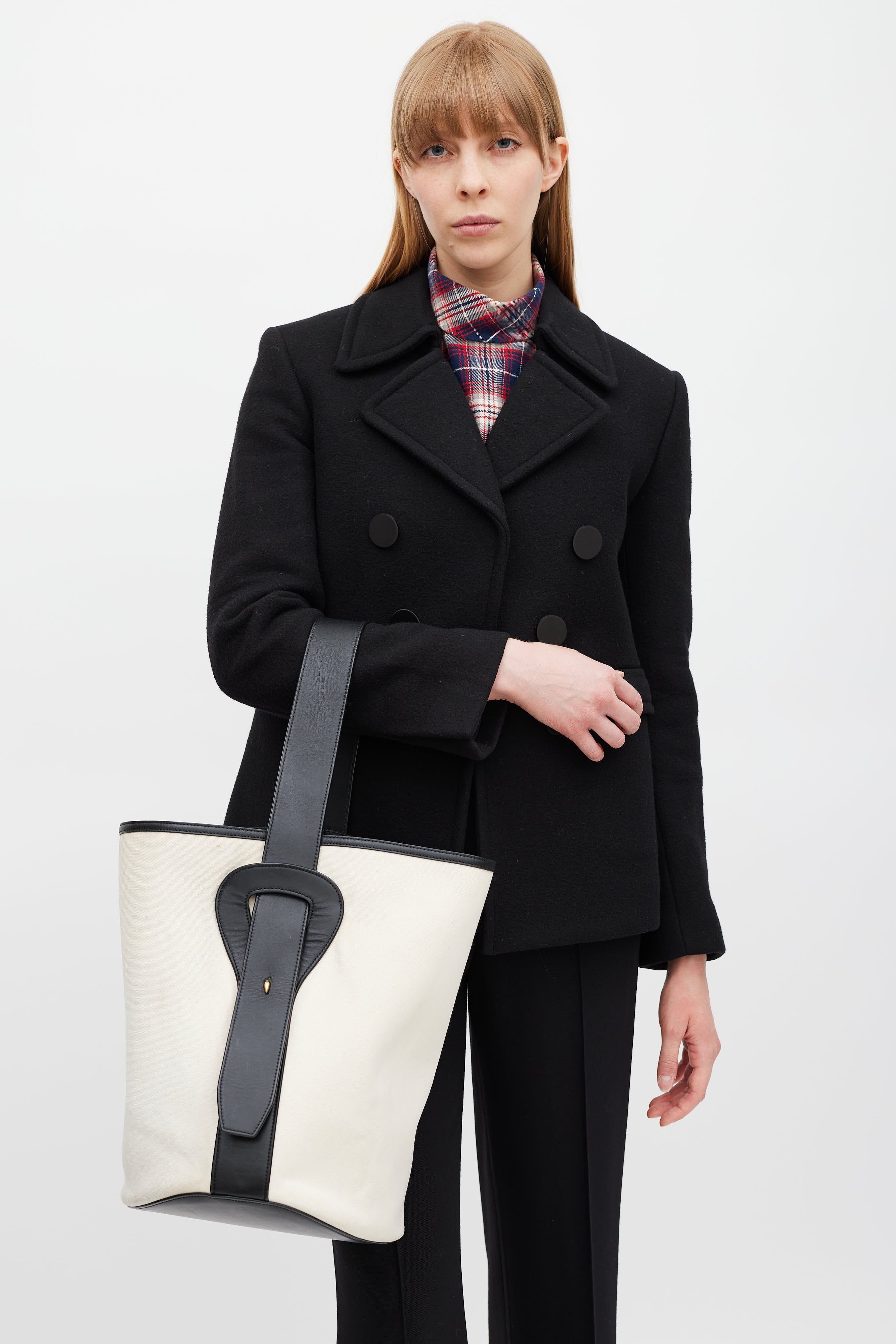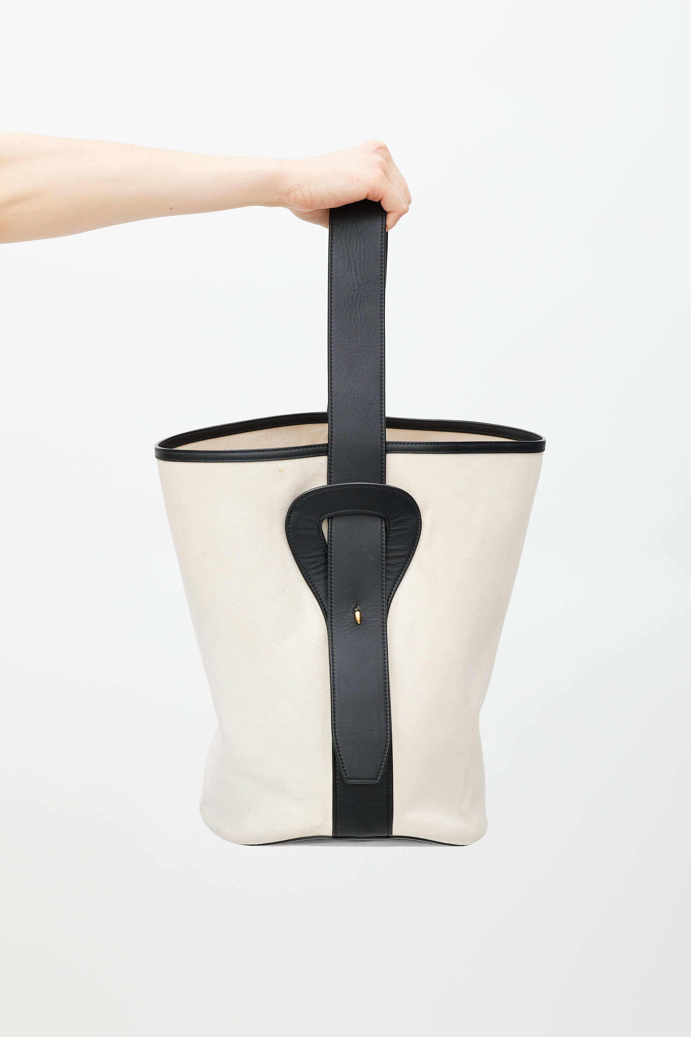 2015 White Canvas & Black Leather Bucket Bag