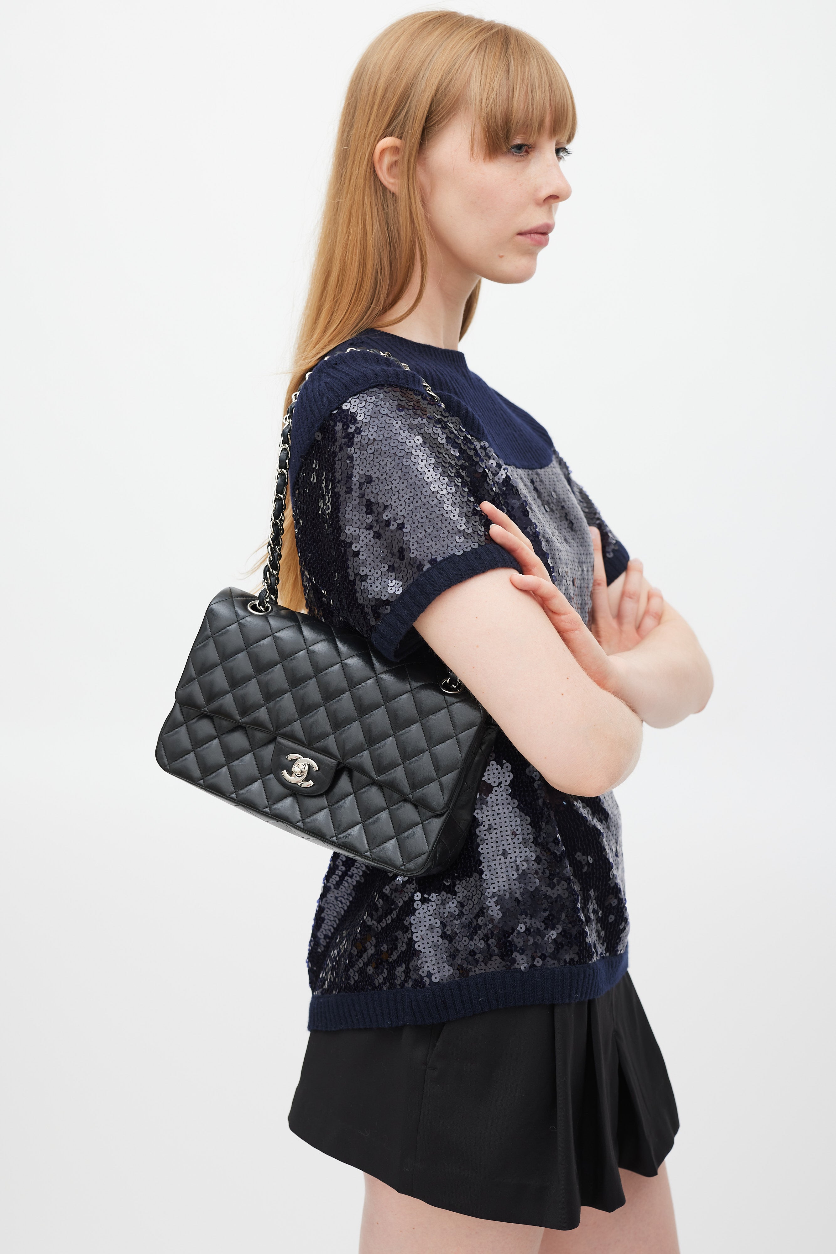 2008/9 Black Quilted Leather Medium Double Flap Bag
