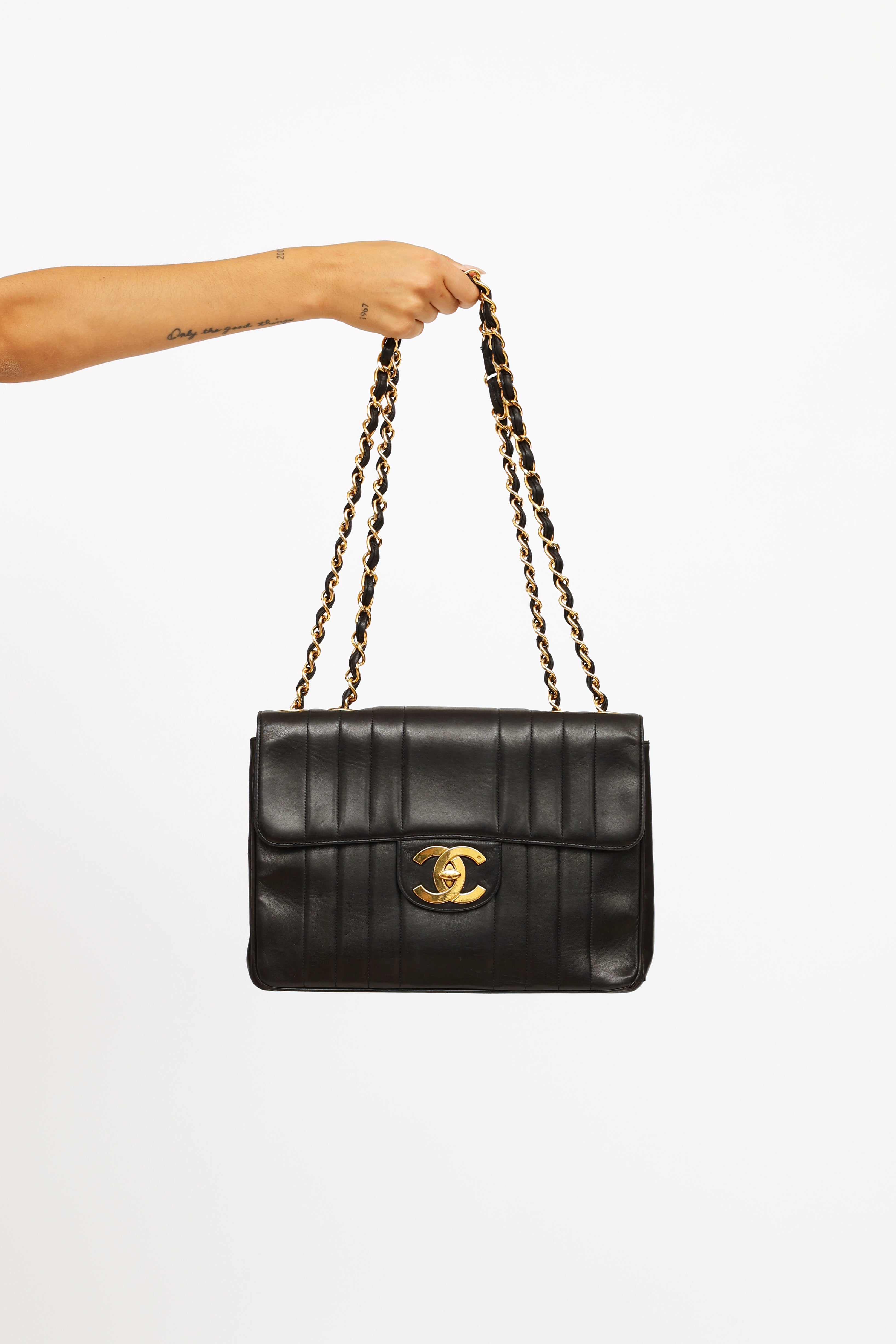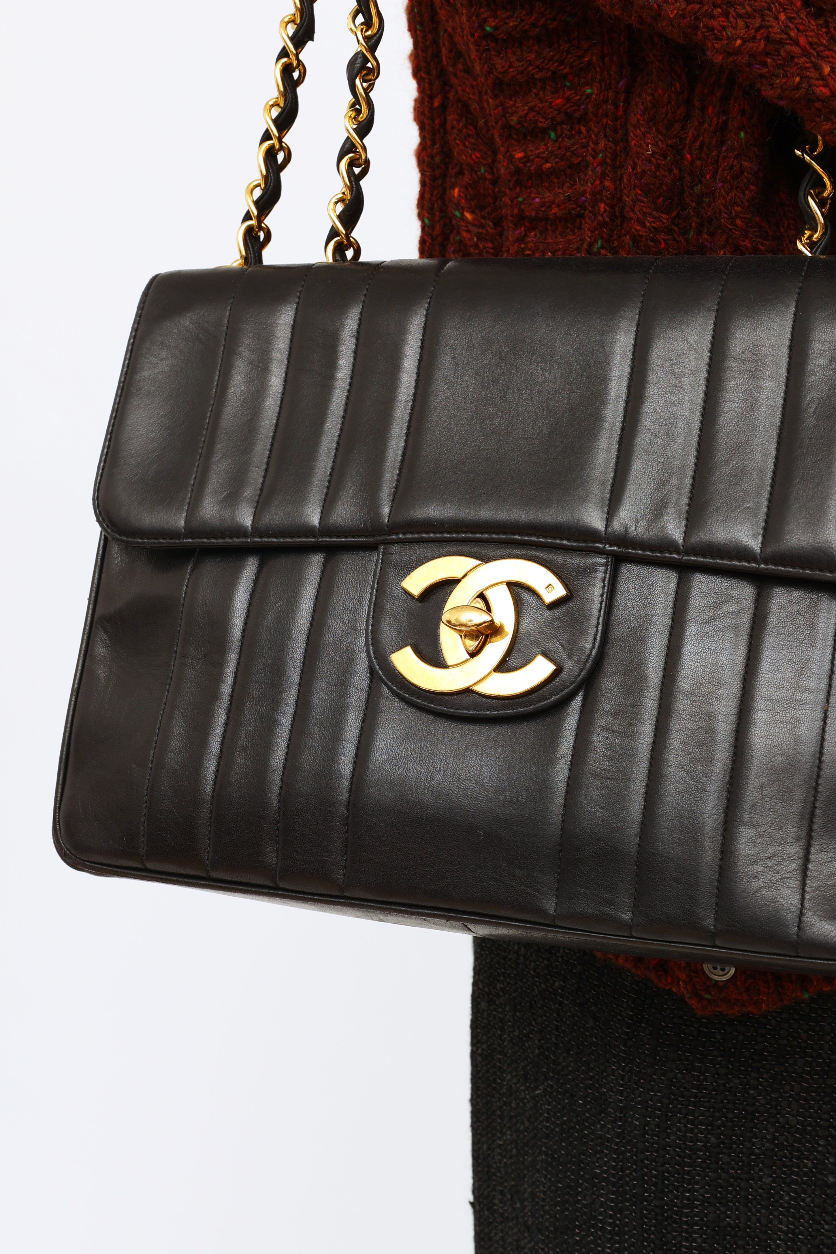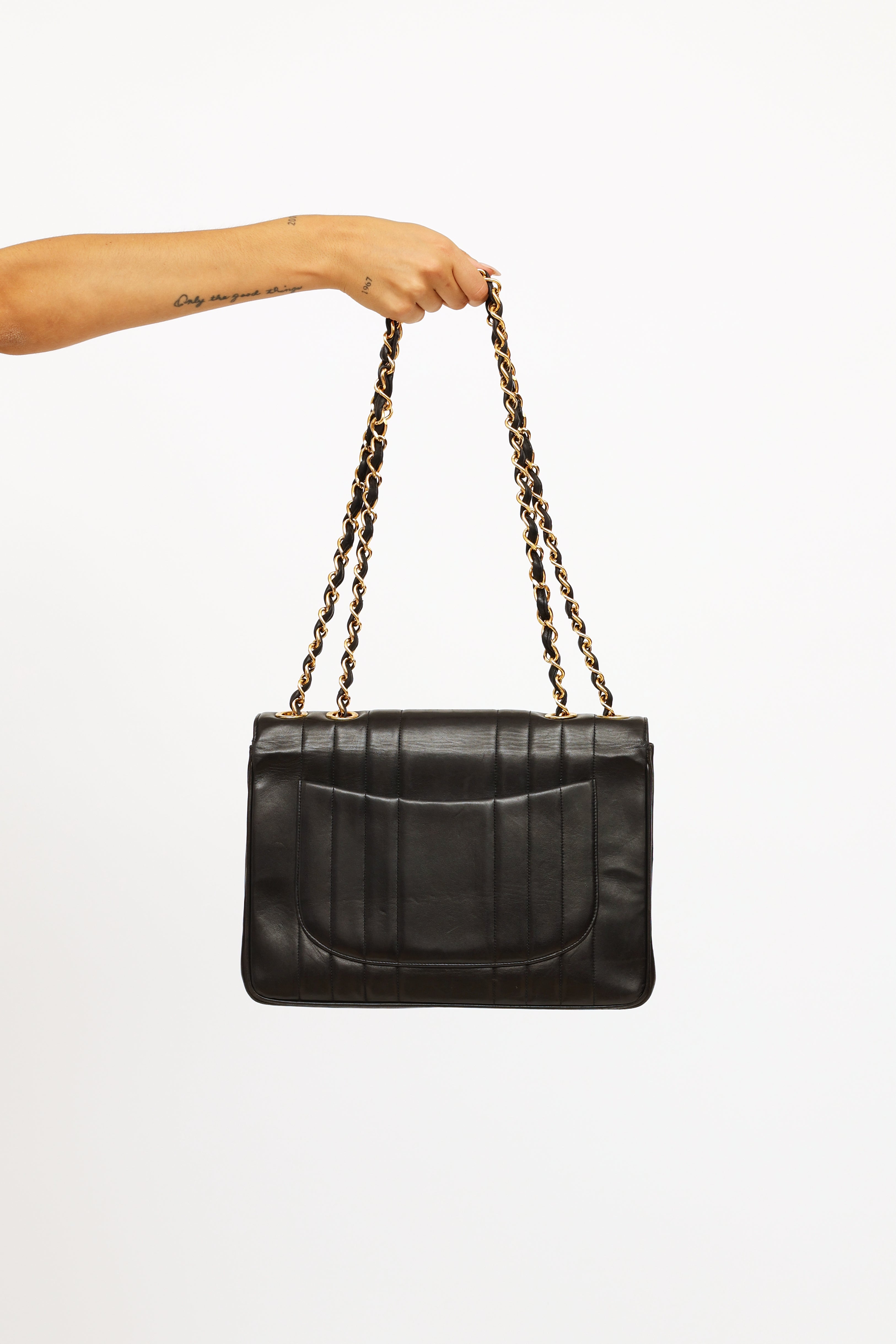 Black Vertical Quilt Lambskin Flap Bag