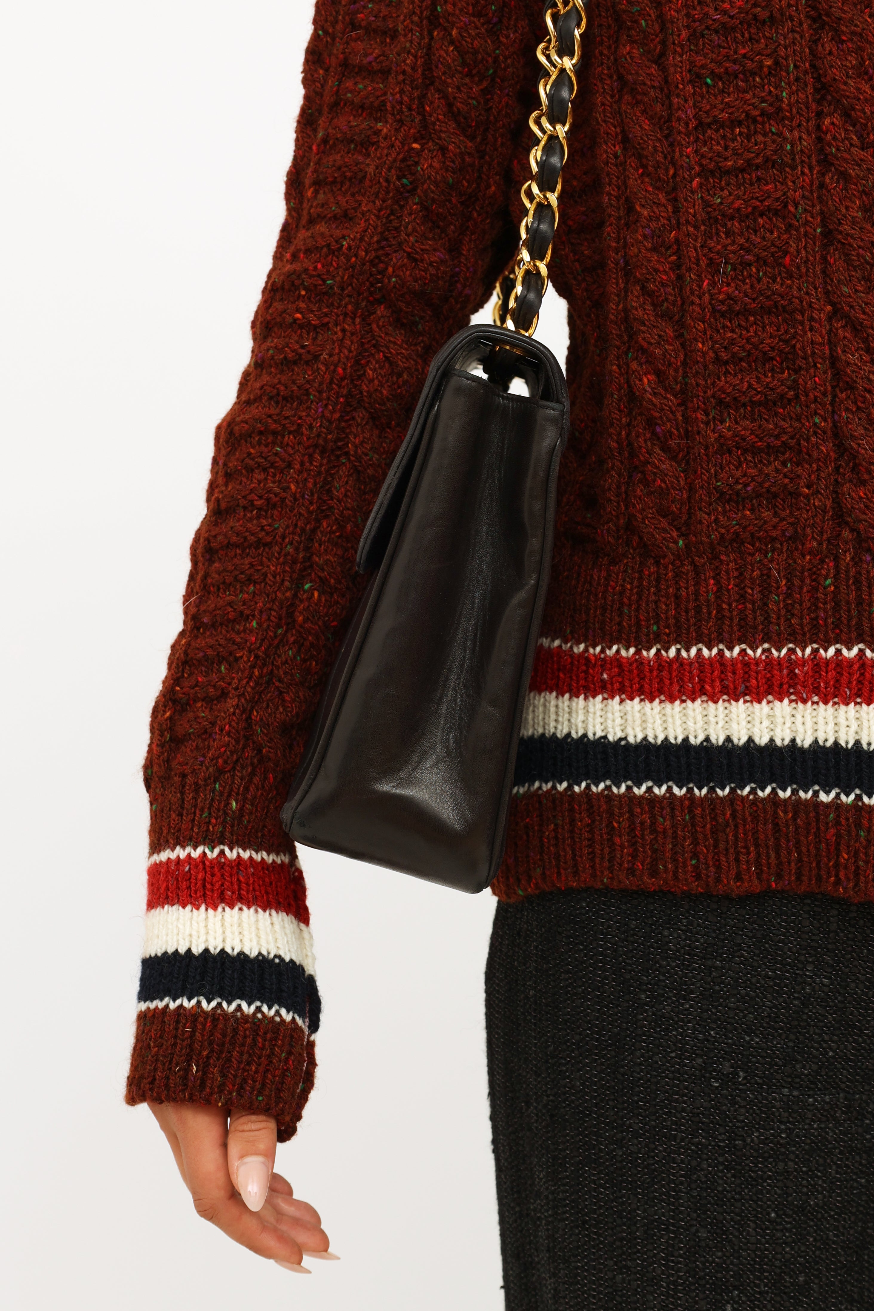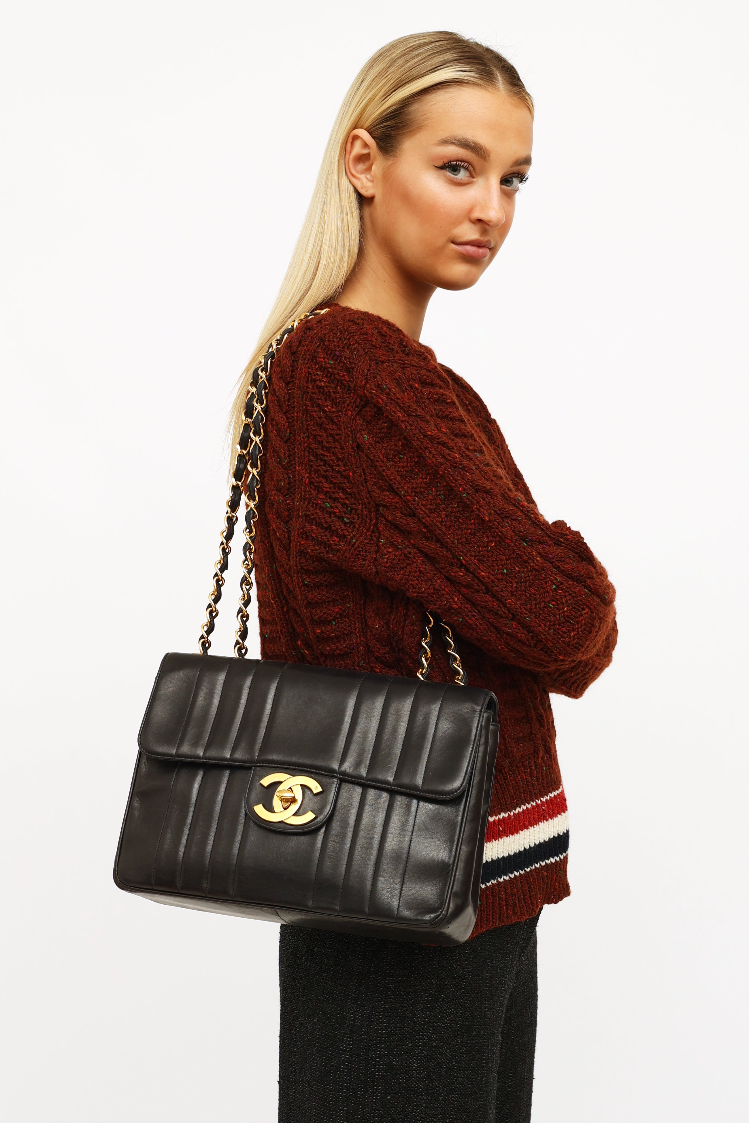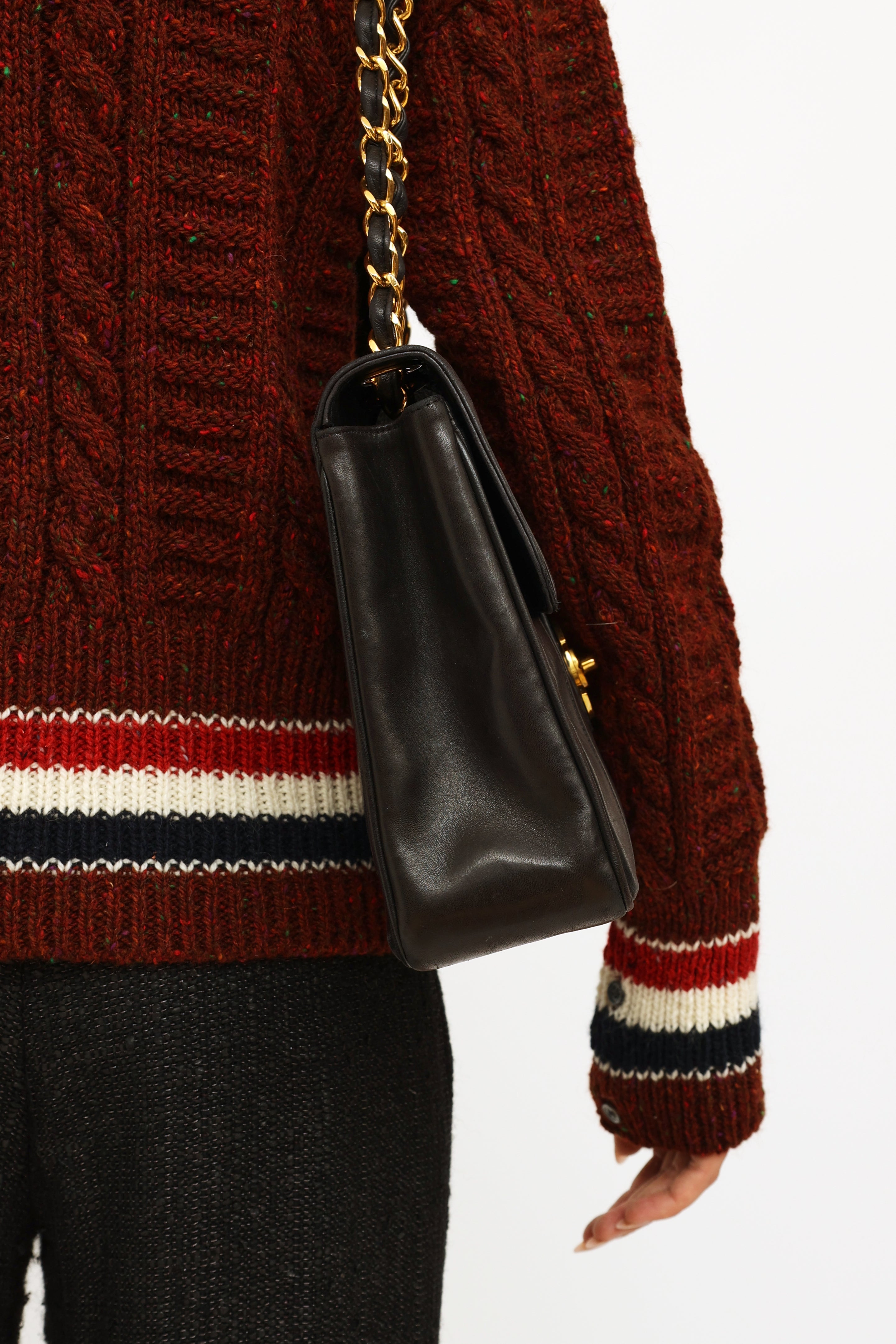 Black Vertical Quilt Lambskin Flap Bag