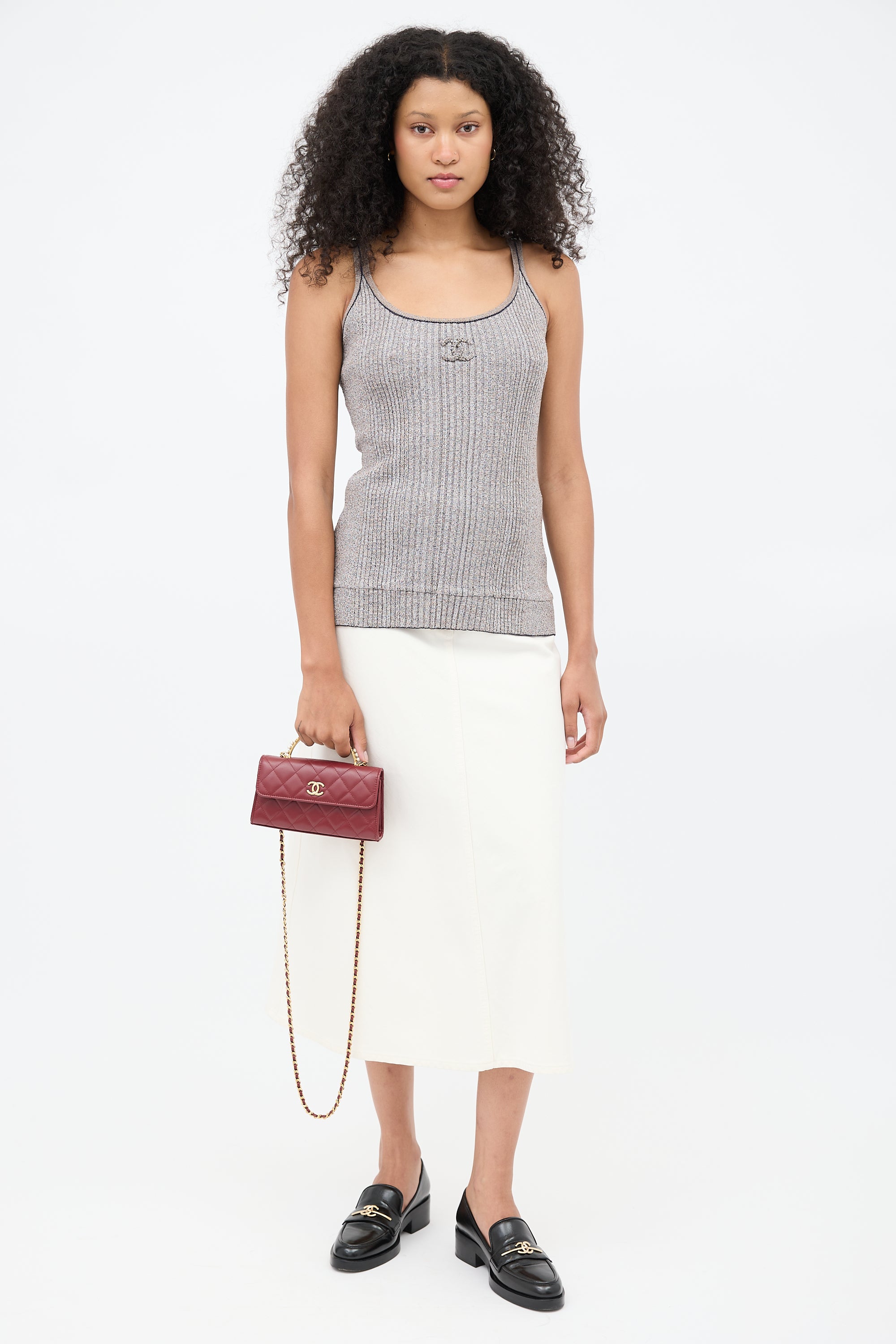 FW 2023 Burgundy Leather Flap Phone Holder Chain Bag