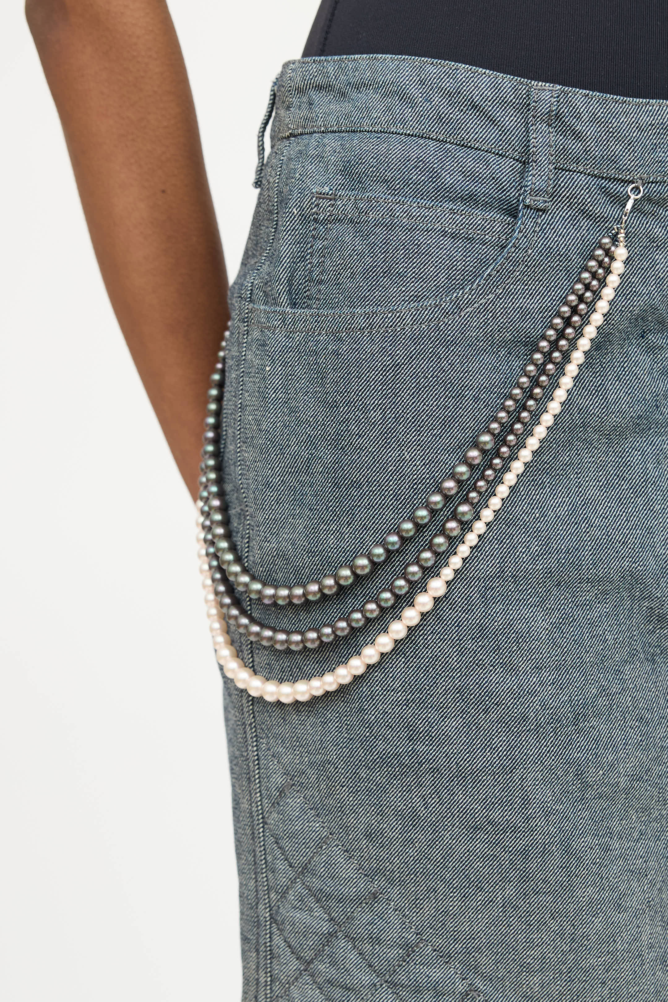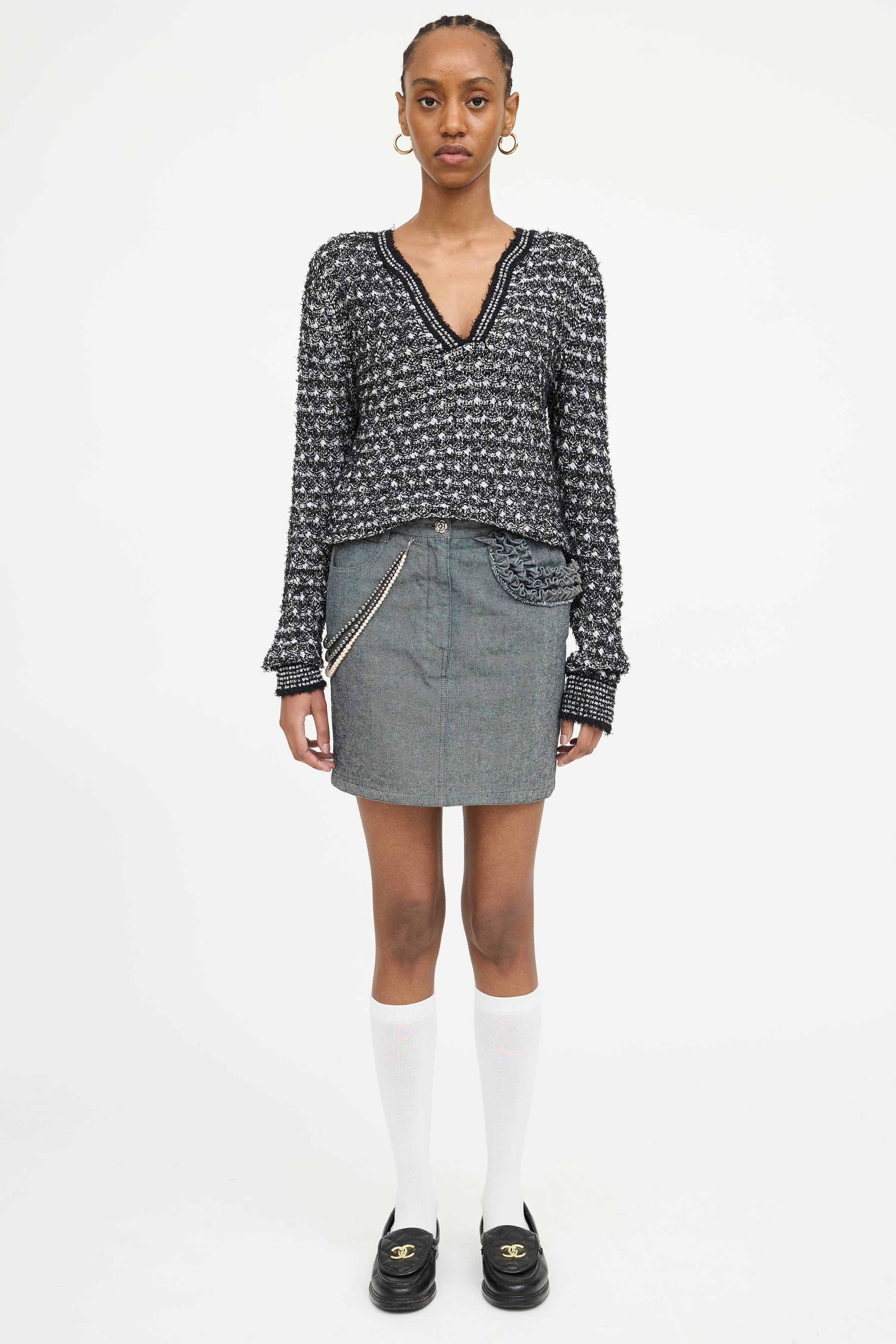 Chanel 2002 Pearl Denim Mini Skirt