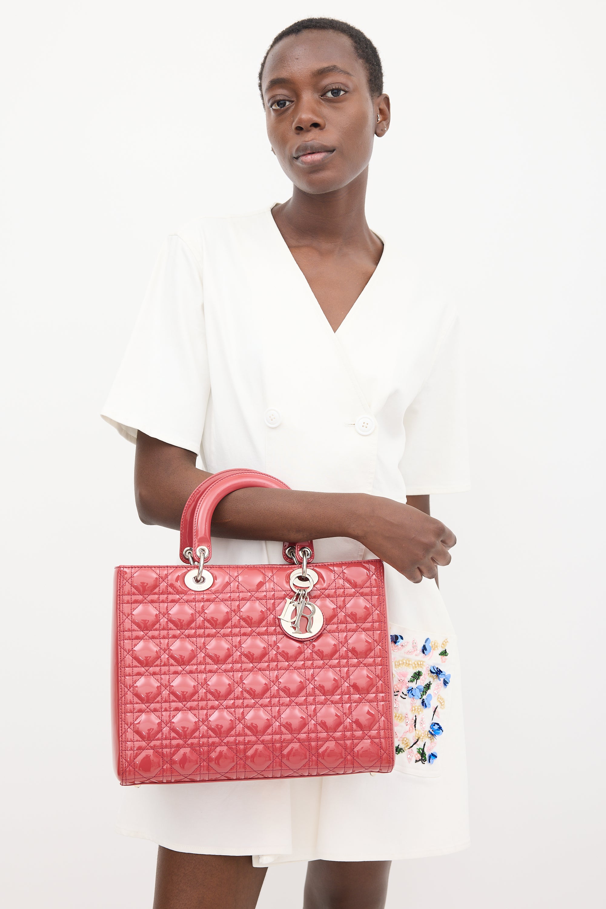 Dior Patent Leather Quilted Lady Dior Large Bag