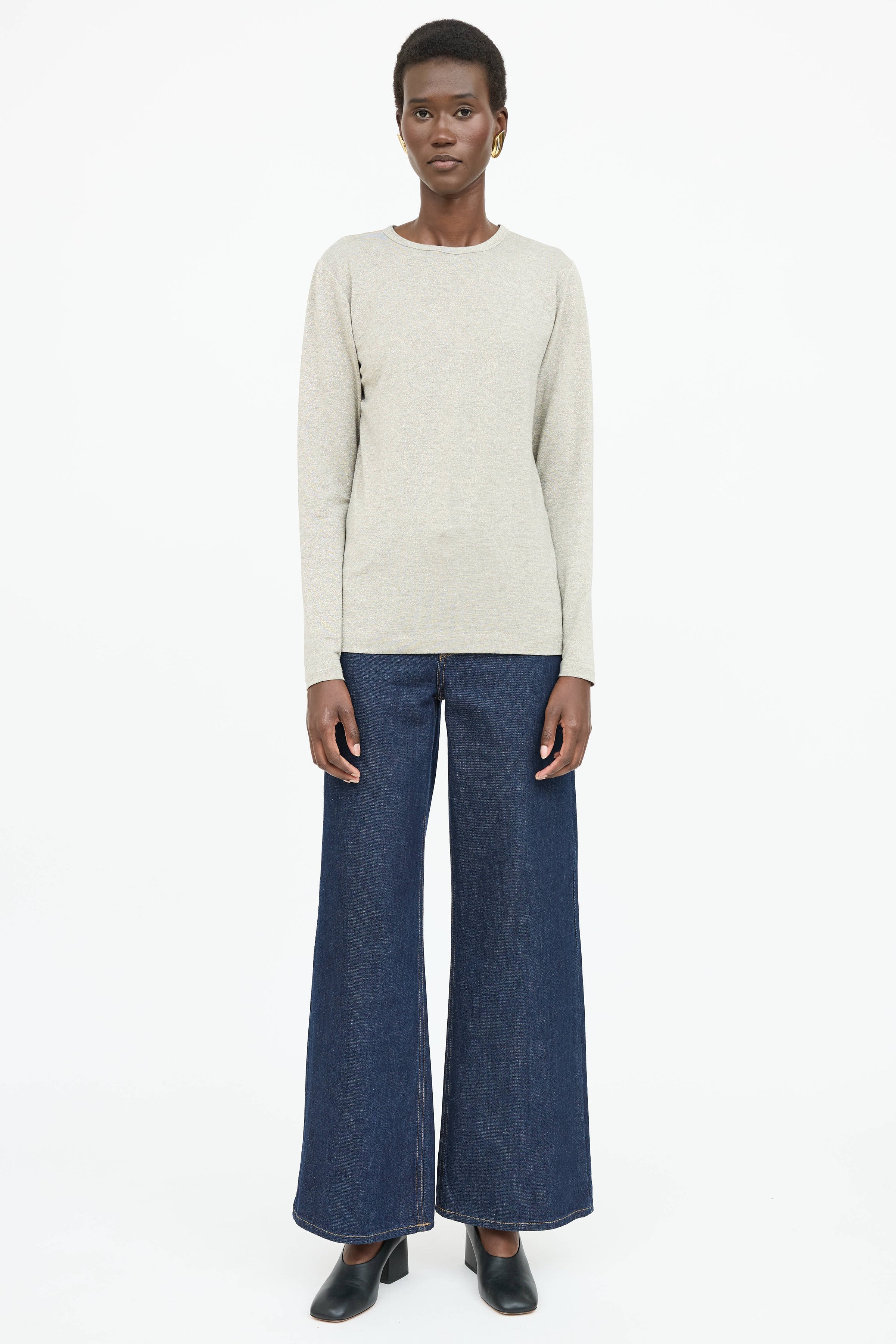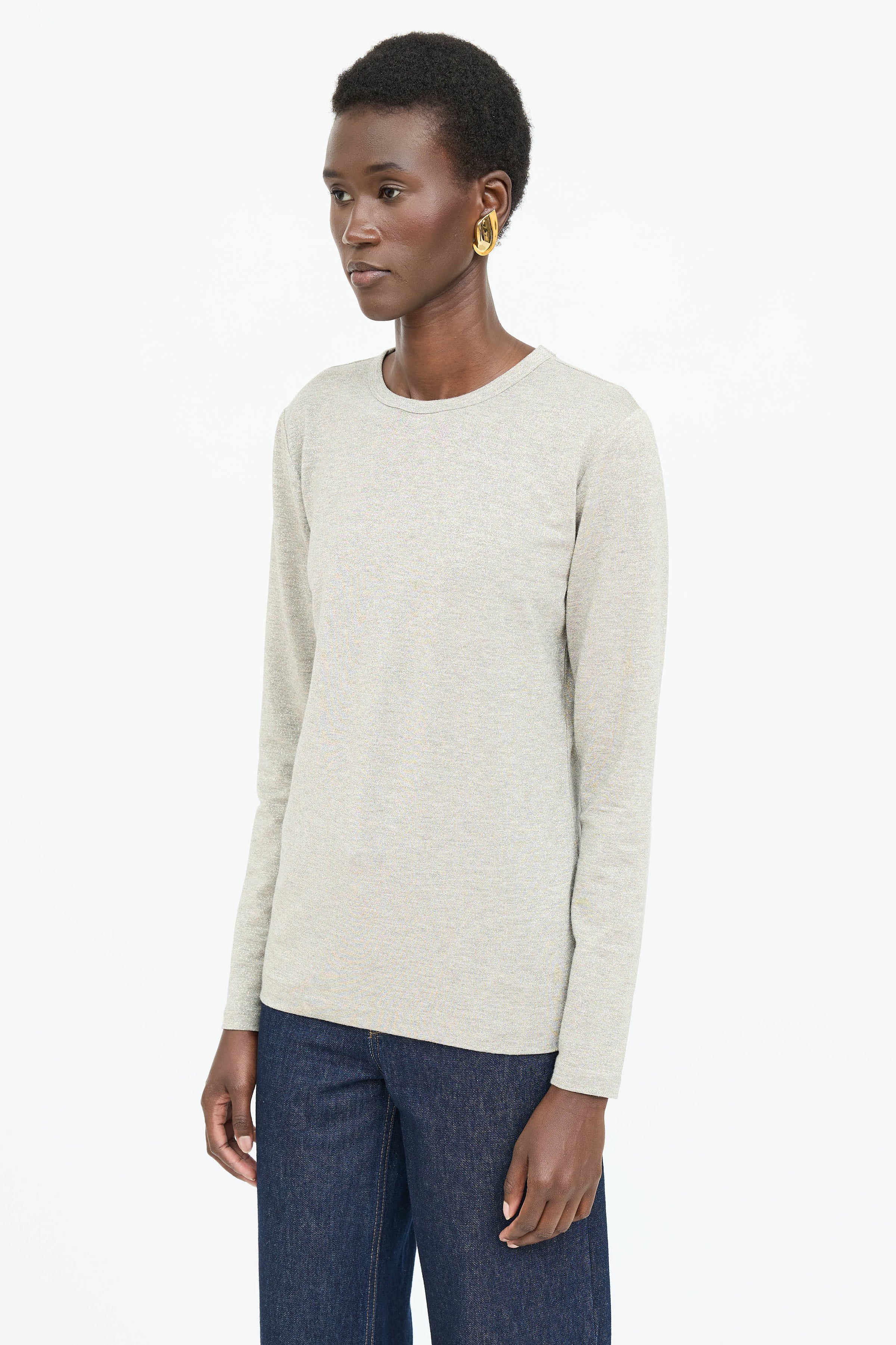 Pre-owned Dries Van Noten grey and gold long sleeve top featuring round neckline and sparkly throughout.