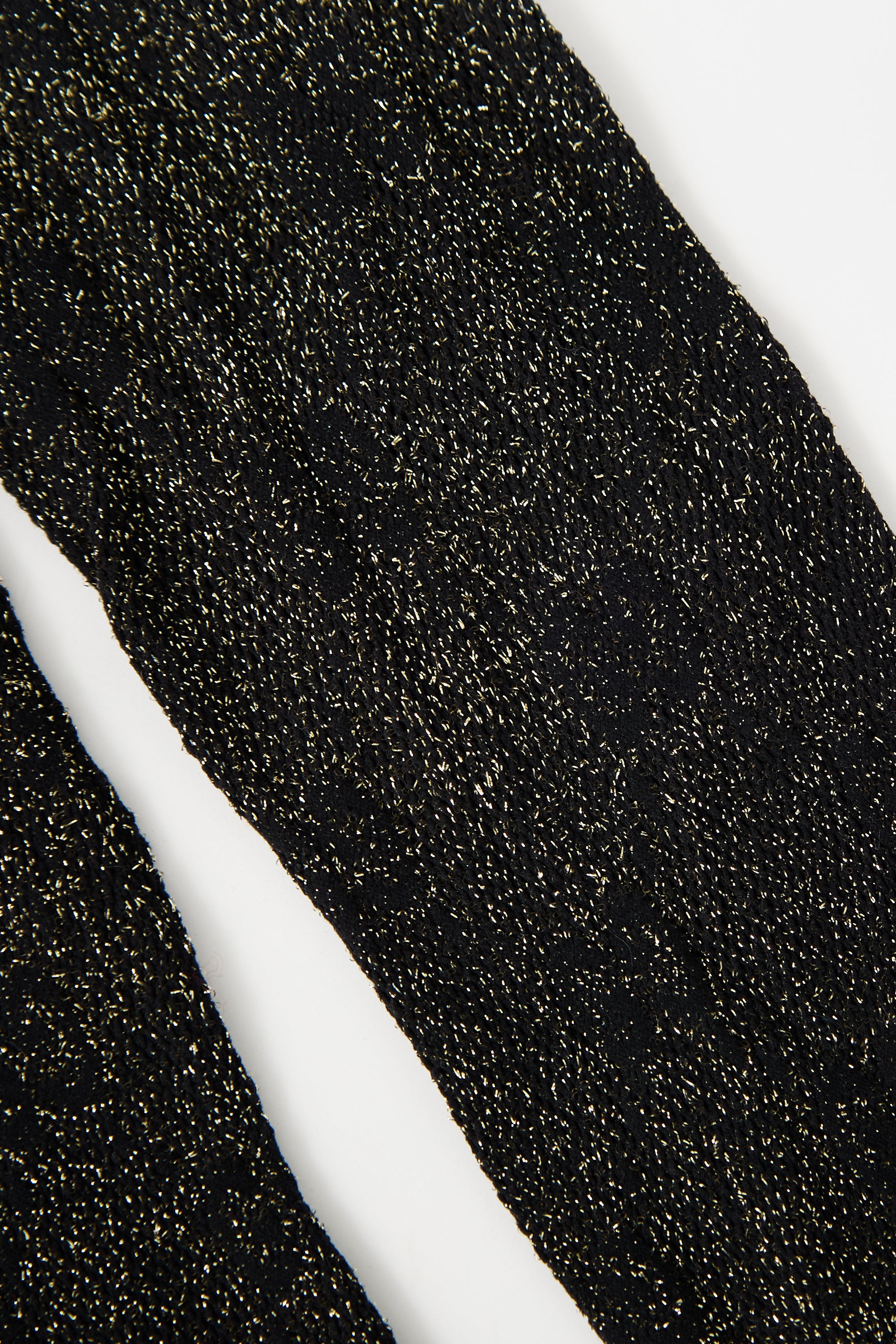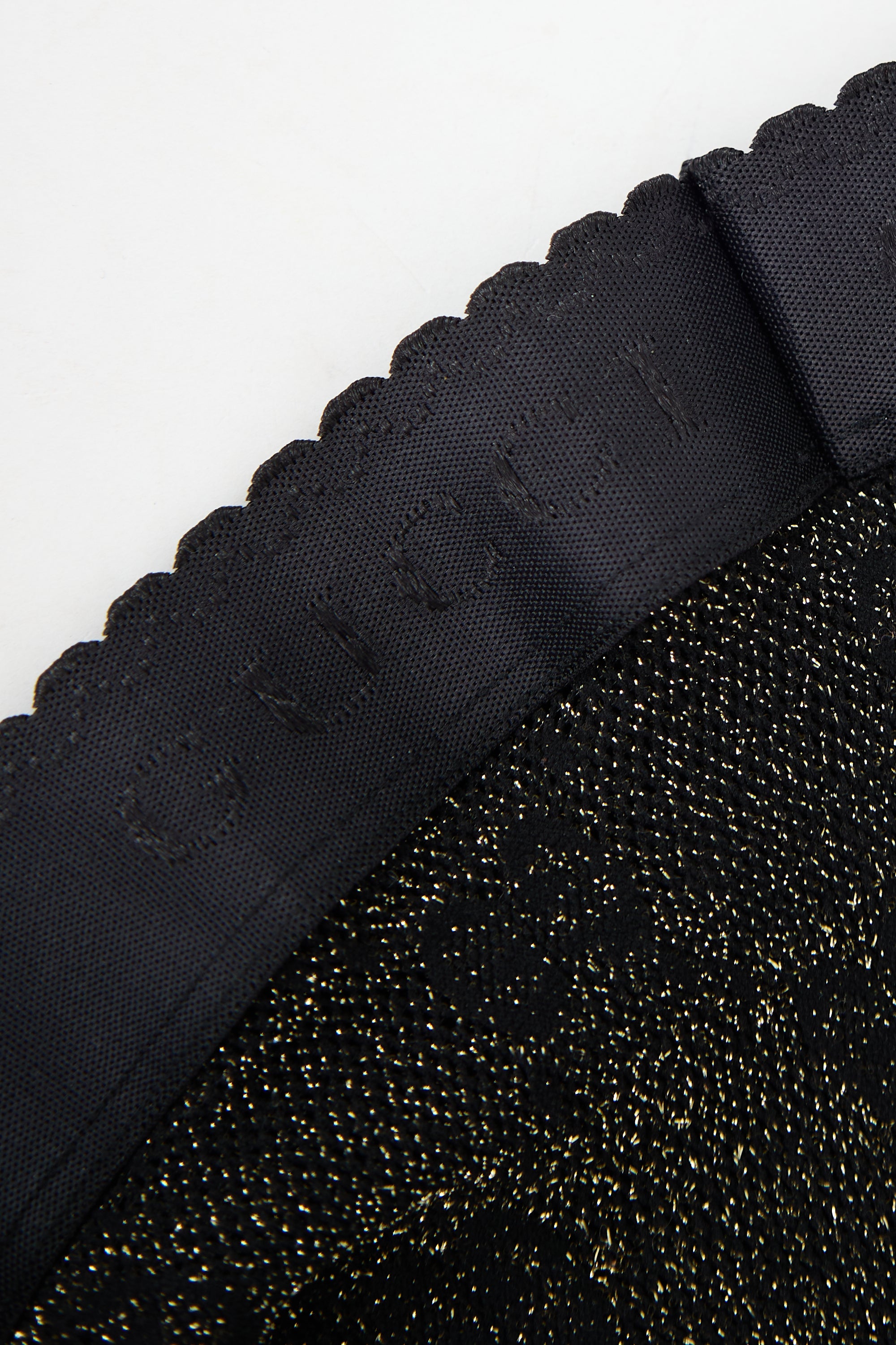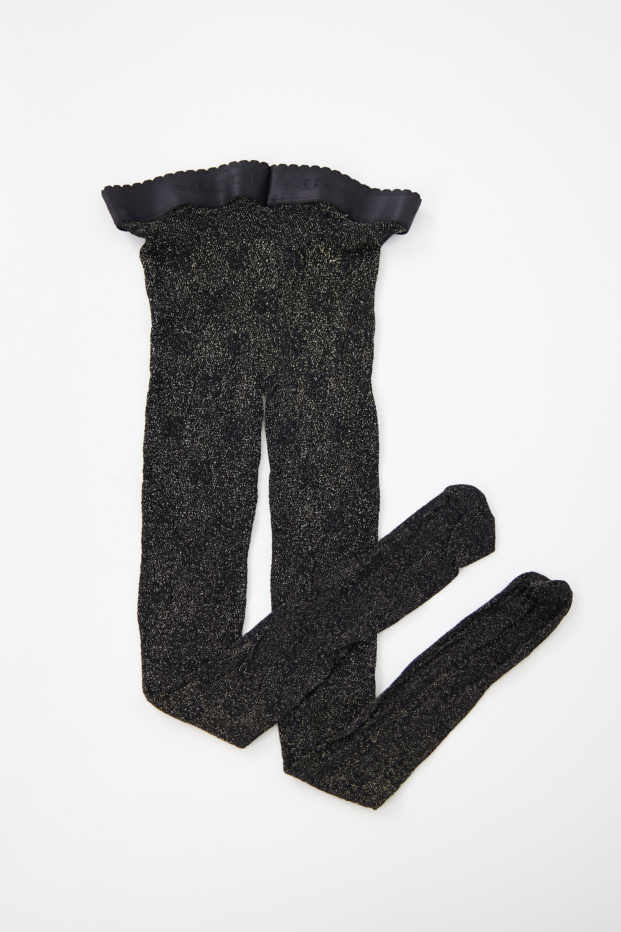 Pre-owned Gucci black and gold tone metallic fishnet tights featuring logo elastic waistband, scalloped trim, and all over GG pattern.