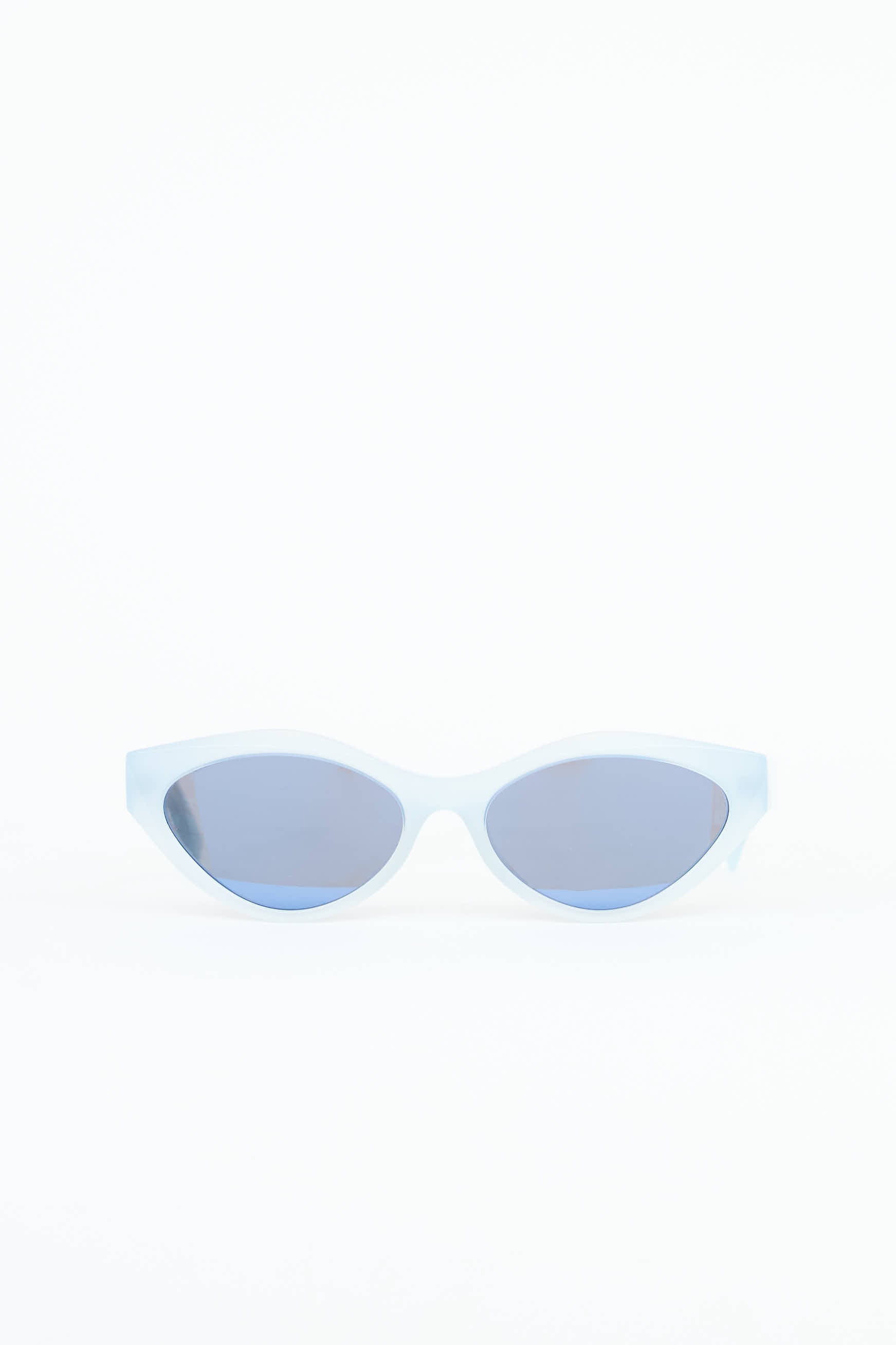 Pre-owned Givenchy GV40025U sunglasses featuring blue cat eye frames, grey tinted lenses, and logo at temples.