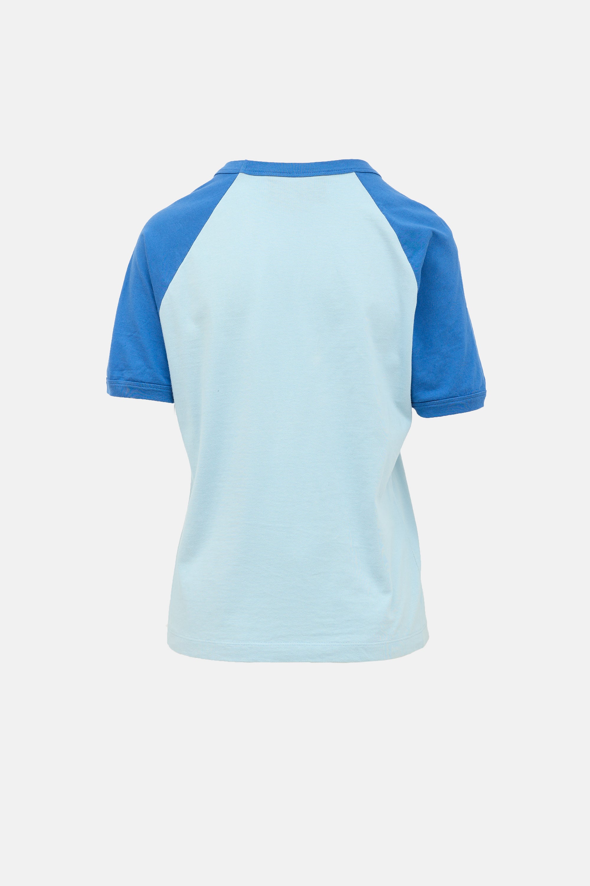 Pre-owned Gucci x Palace blue T-shirt featuring crew neckline, raglan short sleeve, and lip and logo print at front.