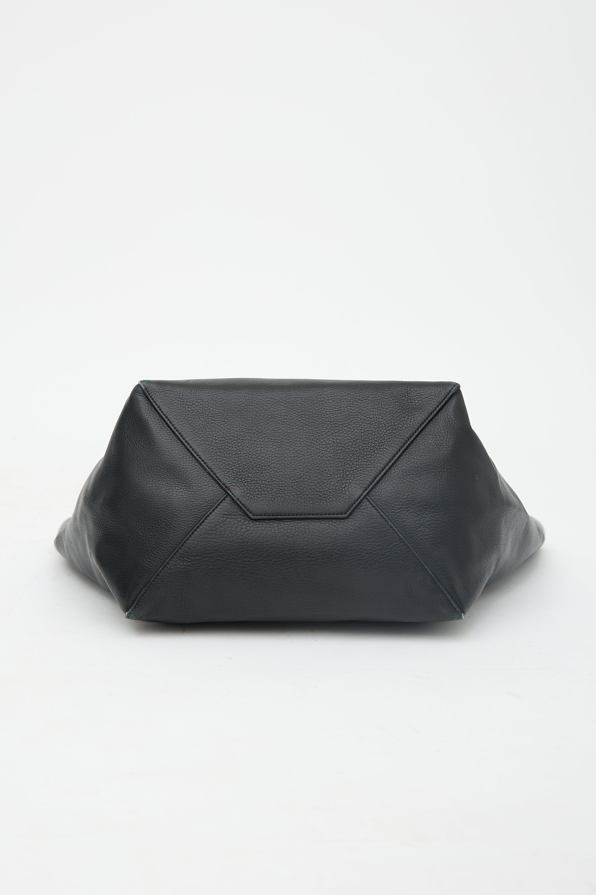 Pre-owned Celine 2013 black leather Cabas Phantom tote bag featuring gold tone logo at front, two flat leather top handles, one main compartment with one zip pocket and two slip pockets, and adjustable tie belt at front. Phoebe Philo era design.