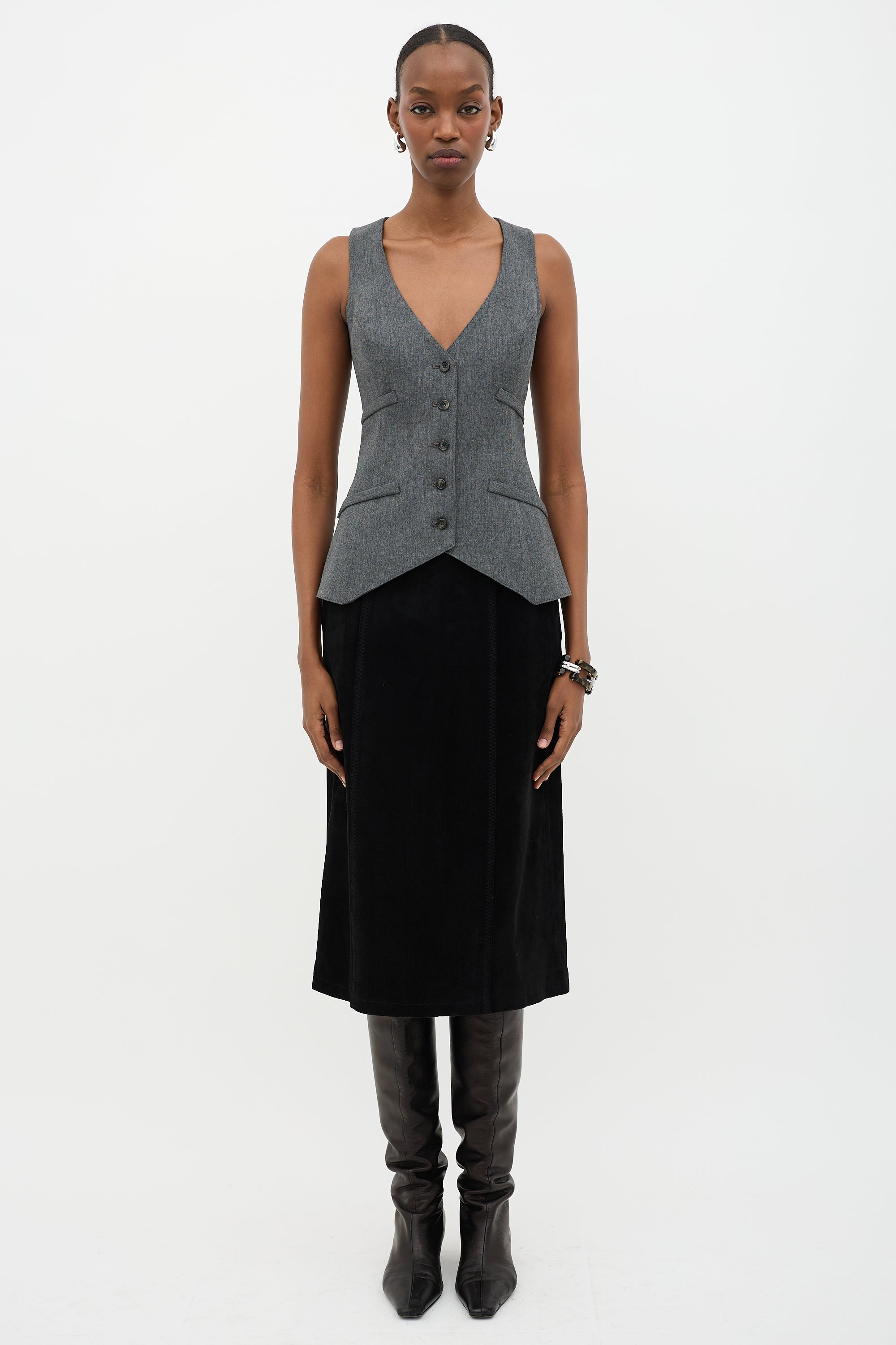 Smythe dark grey Waistcoat featuring a V-neckline, button front, tailored construction, and four welt details at front.