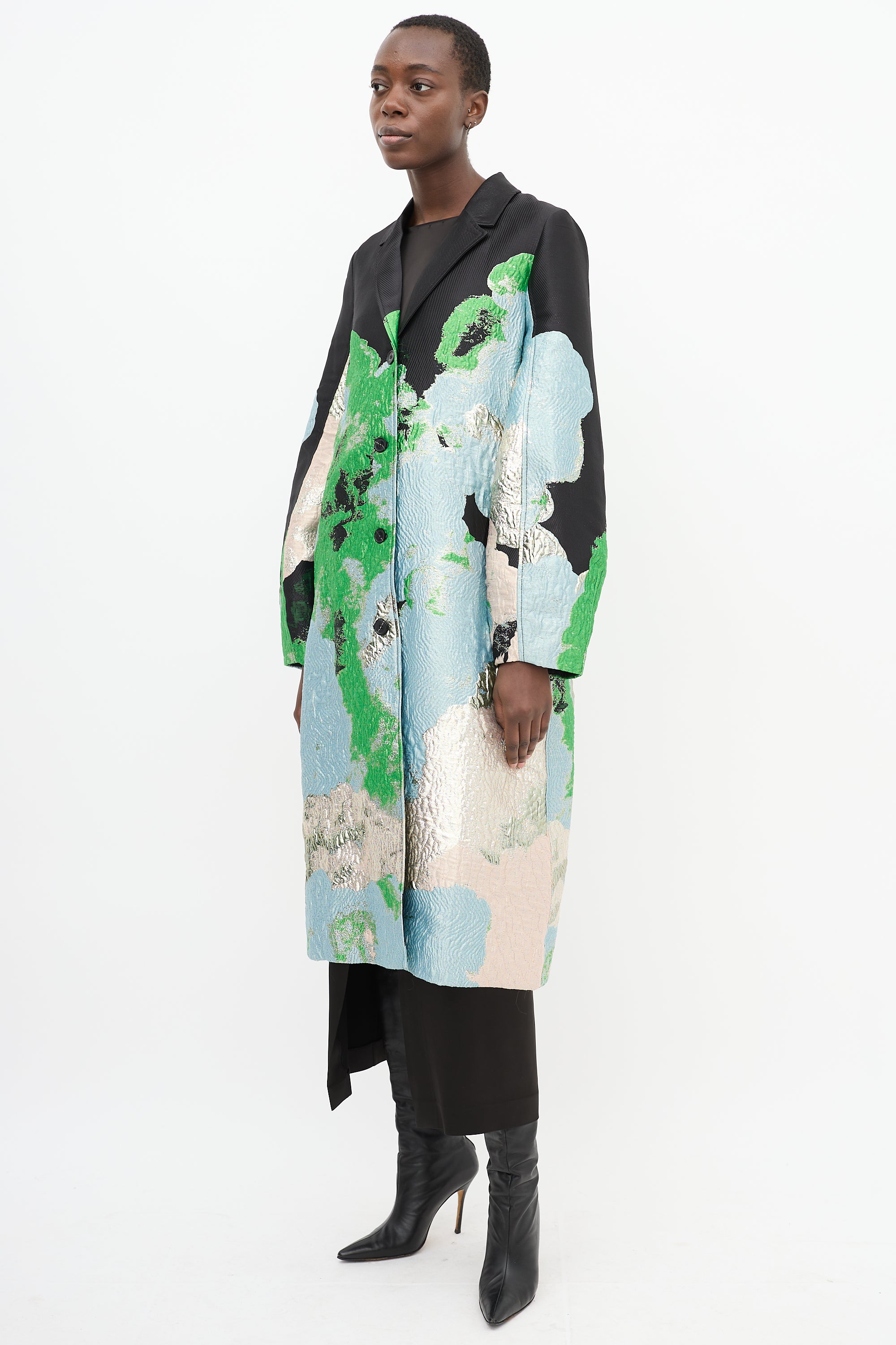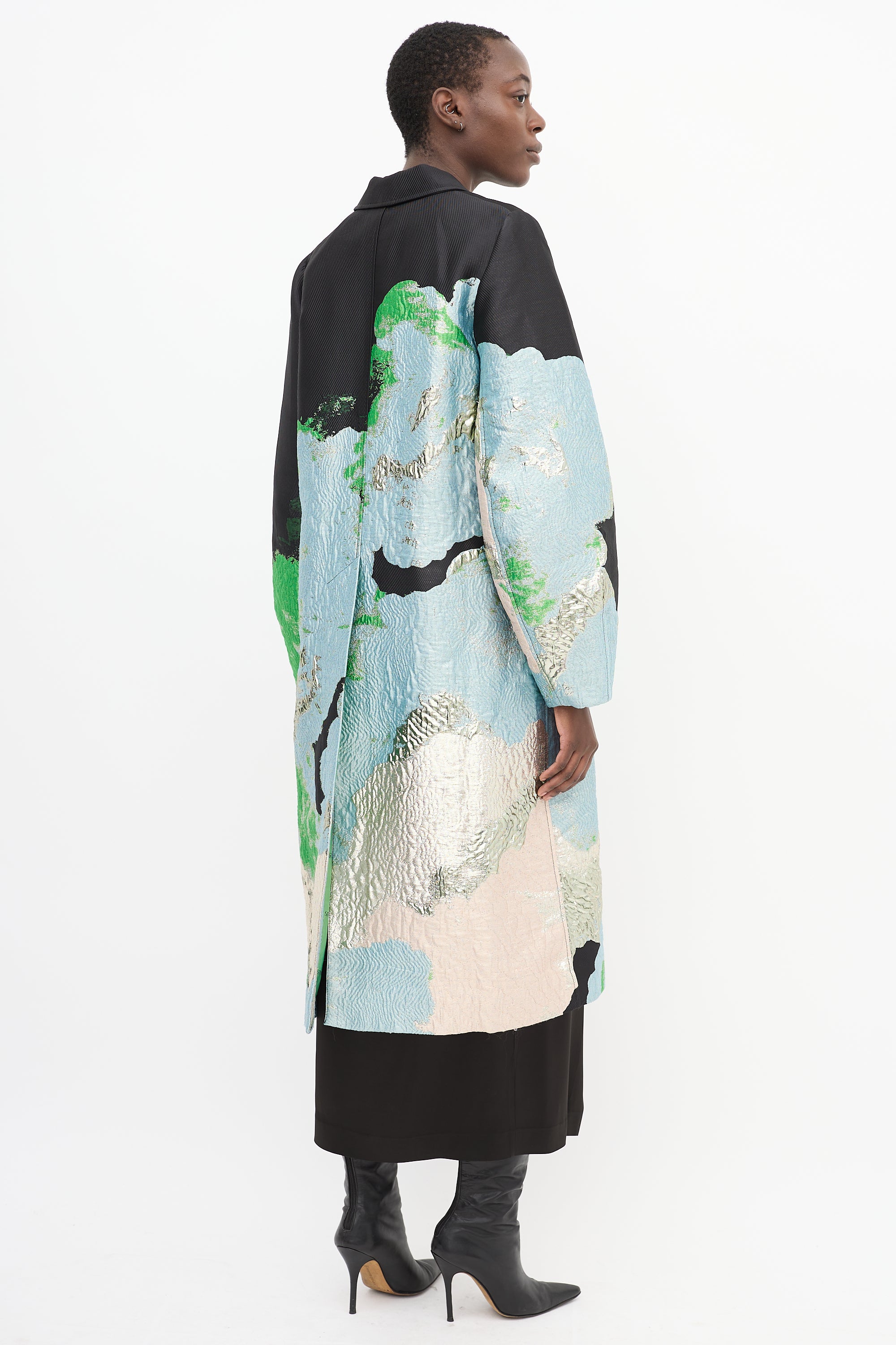 Black & Multicolour Brocade Cornelia Long Coat Small Size Guide
