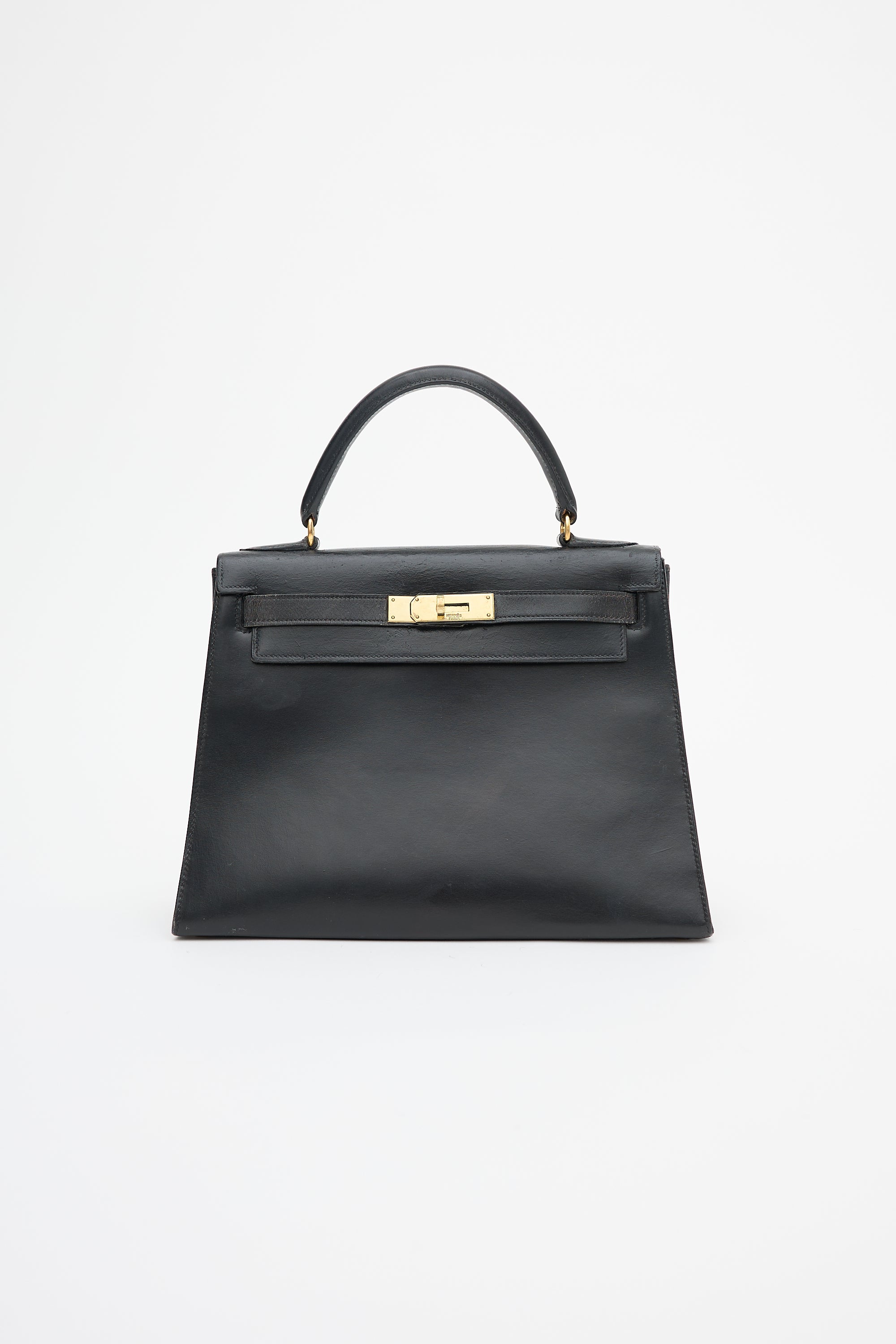 Hermès 1970 Noir Box Kelly Sellier 28 Bag