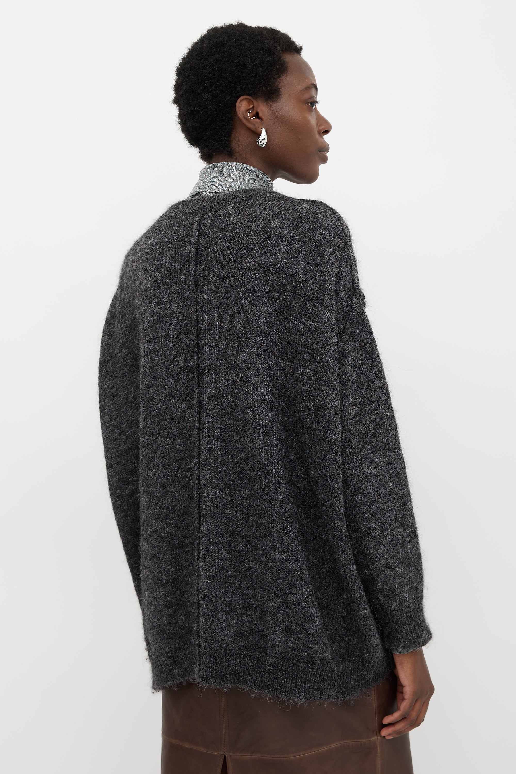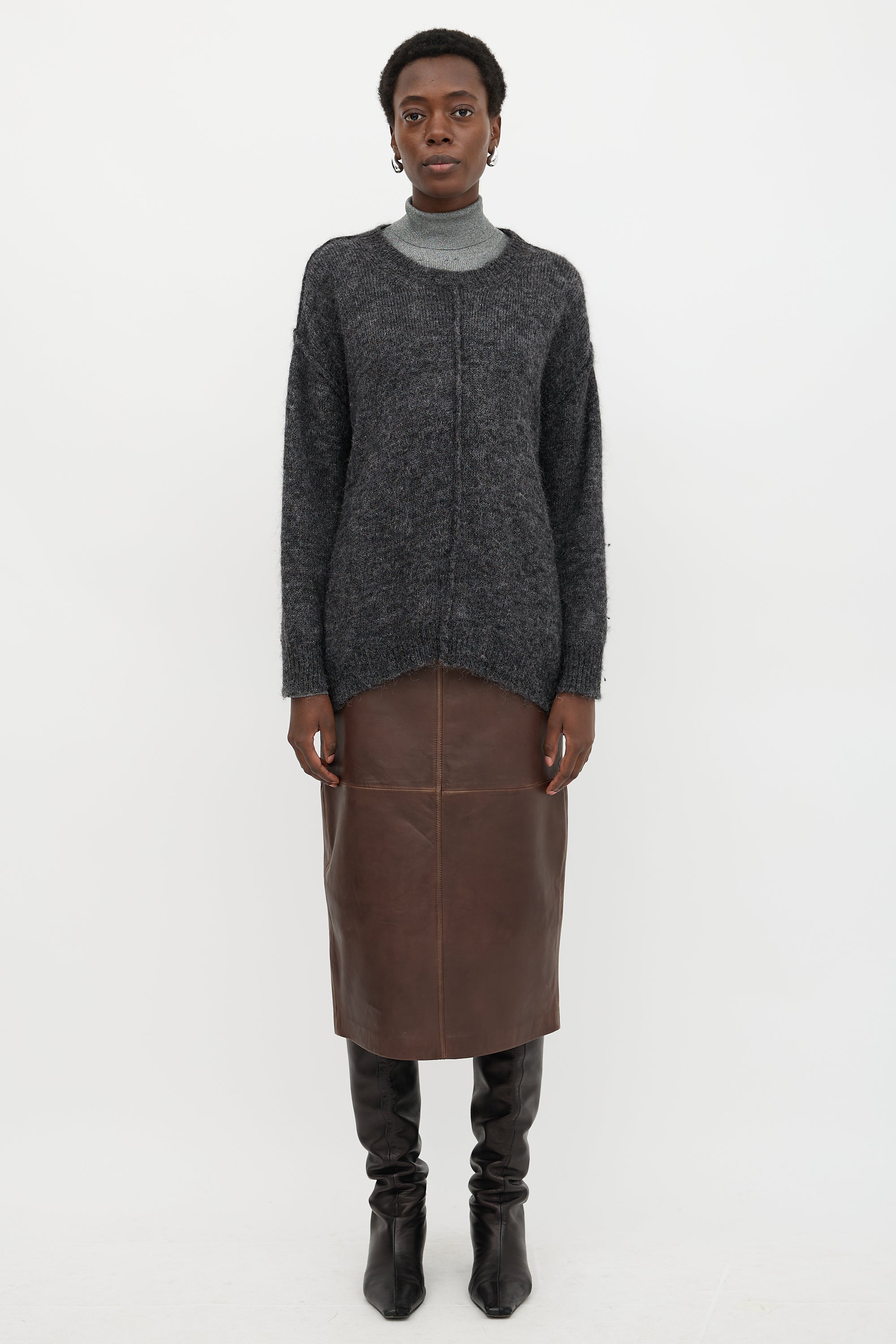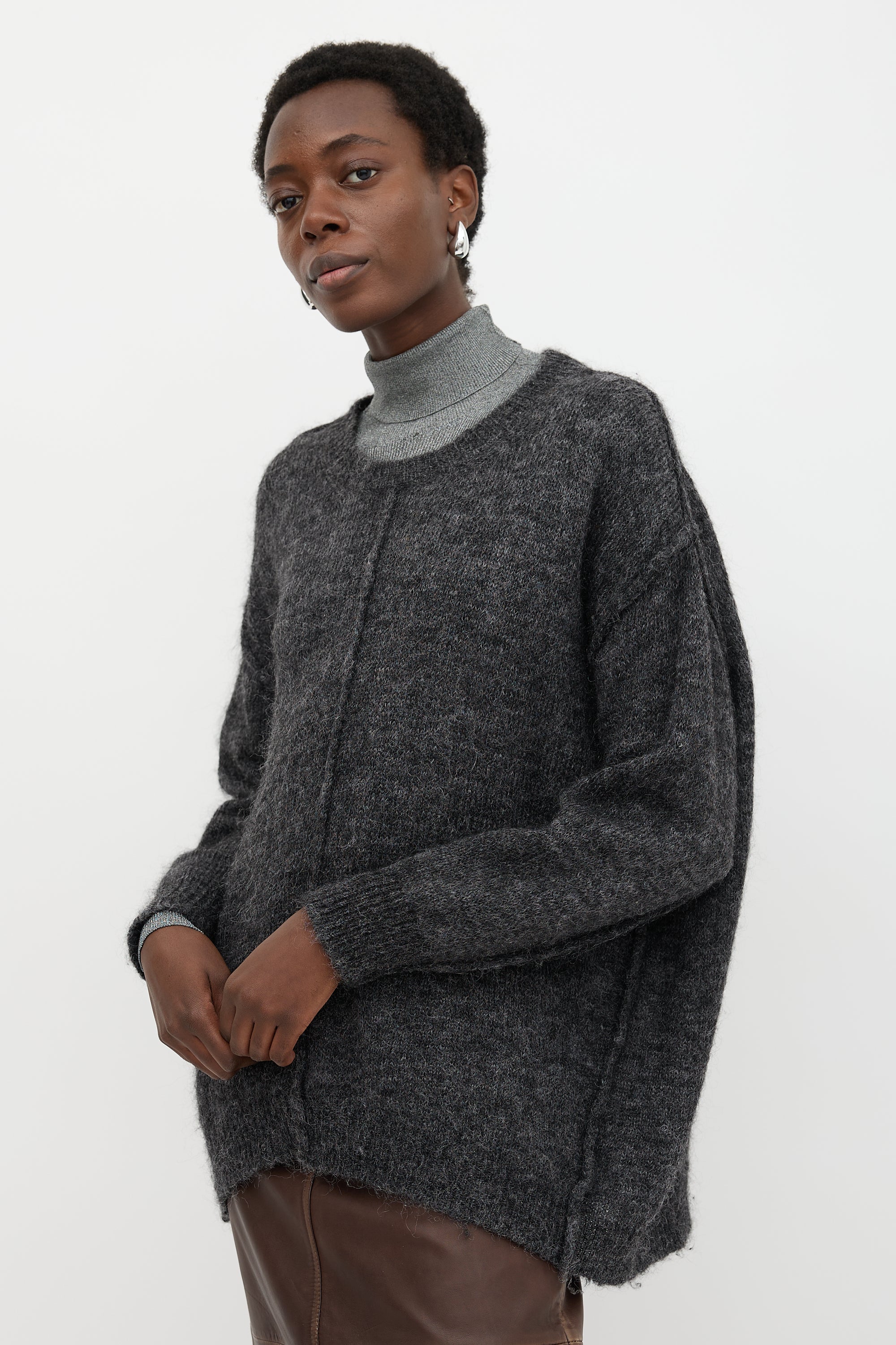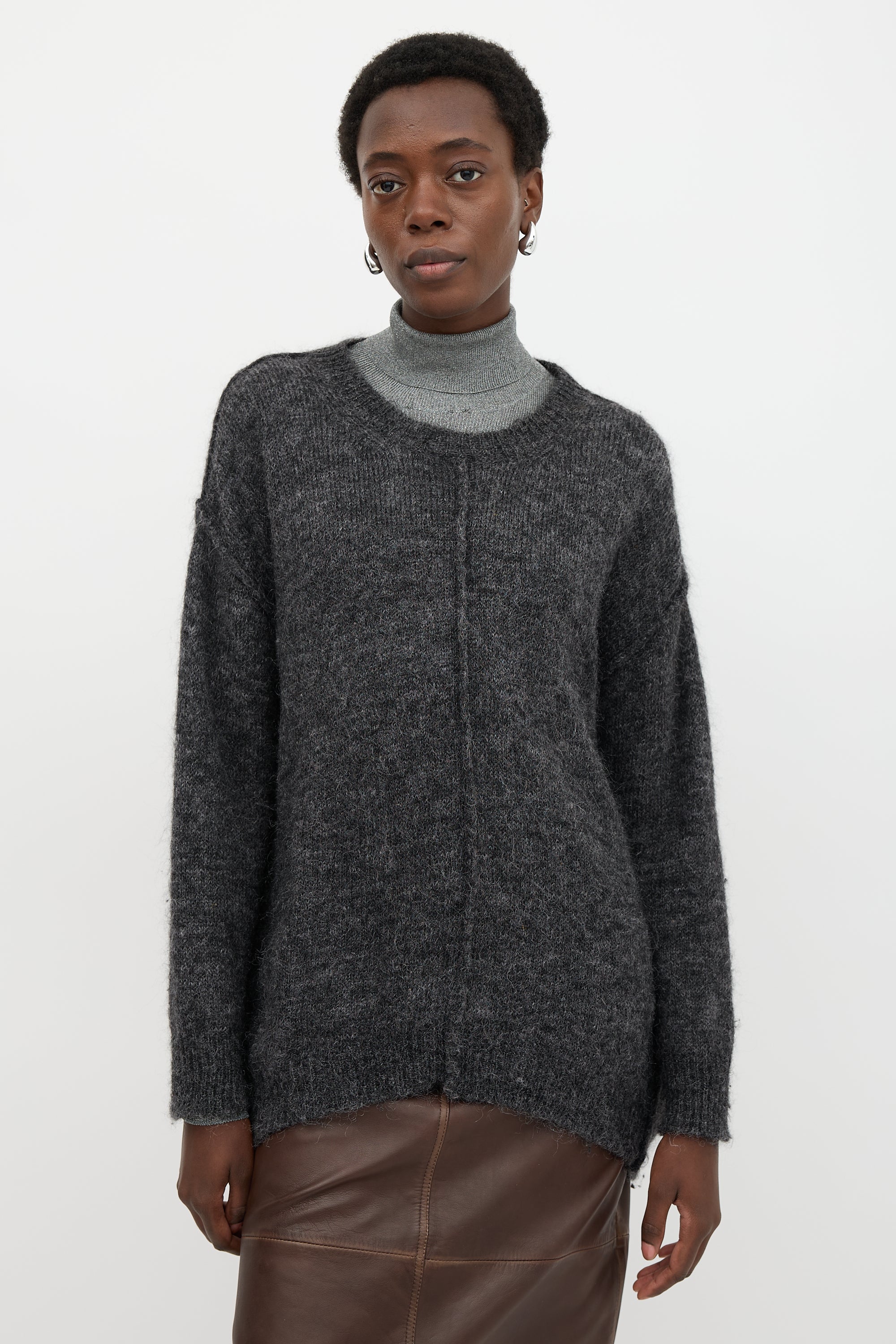 Pre-owned Isabel Marant grey metallic mohair and wool blend sweater featuring a crew neckline, inverted seams, and boxy fit.