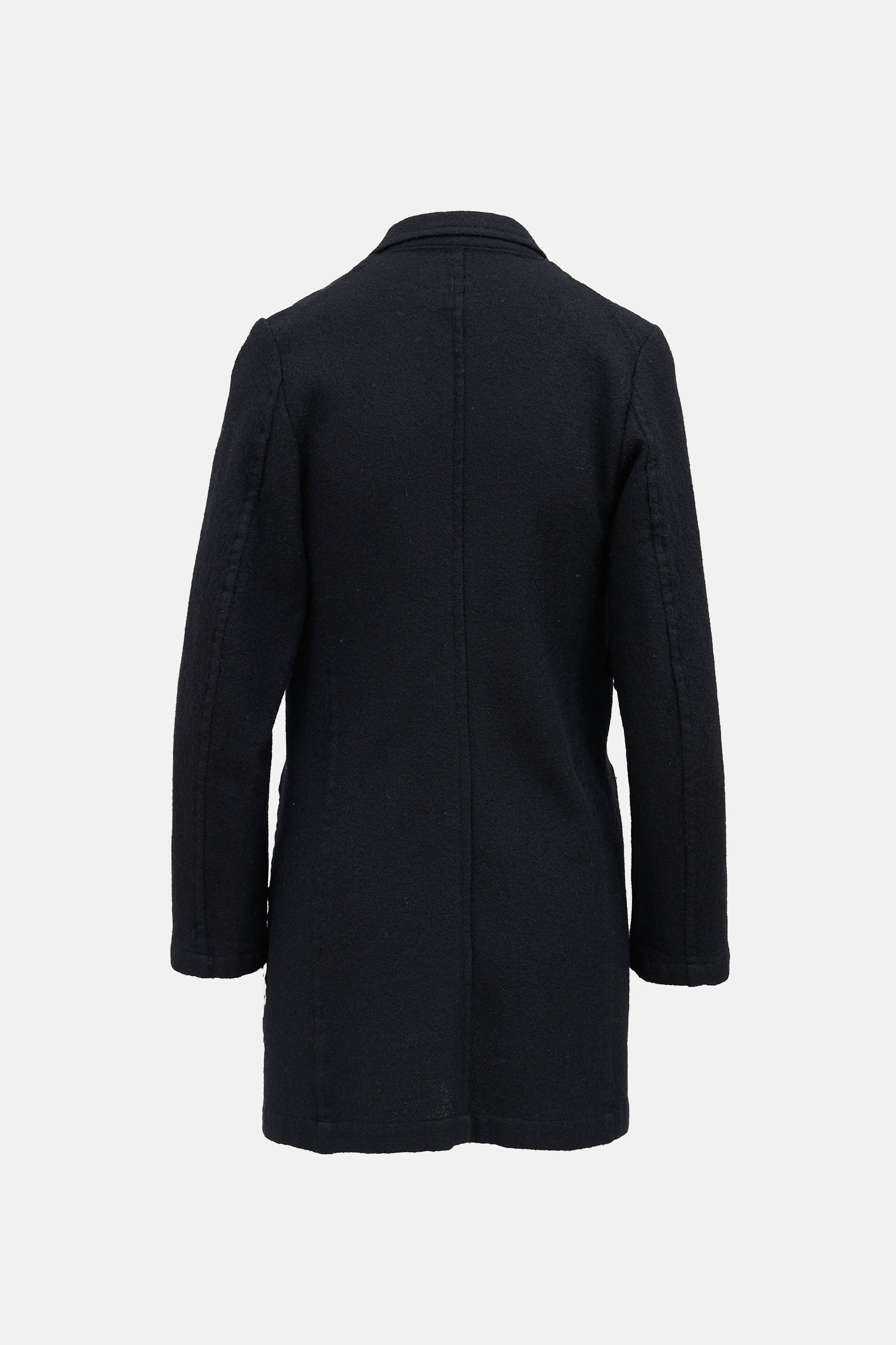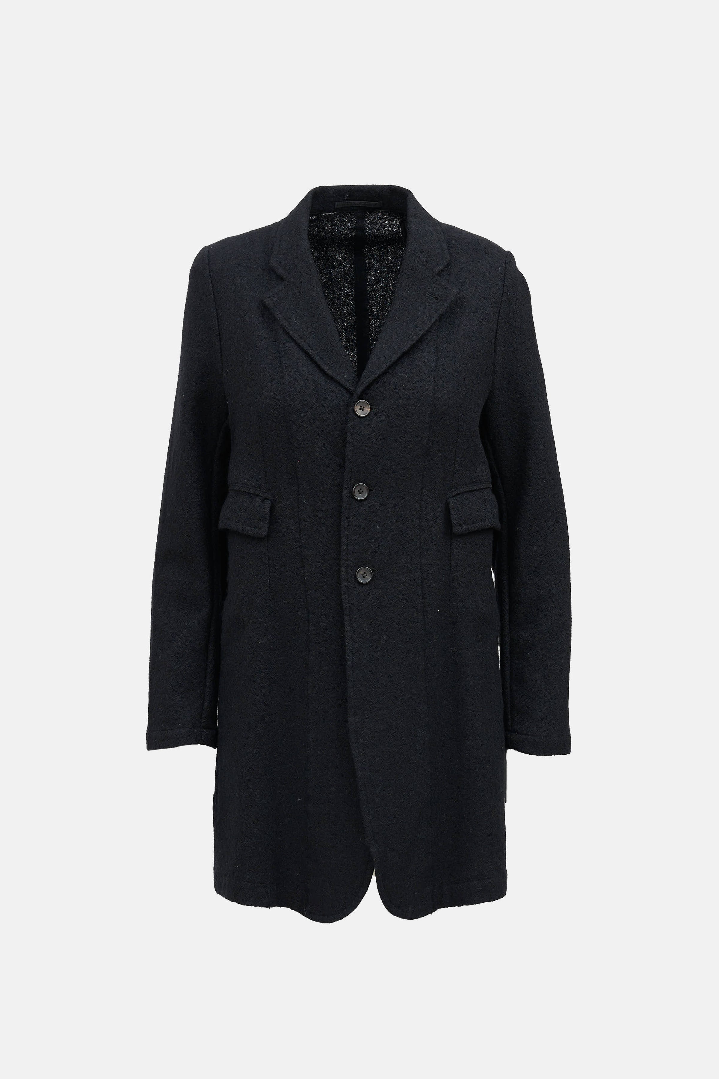Pre-owned Dolce & Gabbana black long sleeve featuring notched lapel collar, button front, and flap pockets.