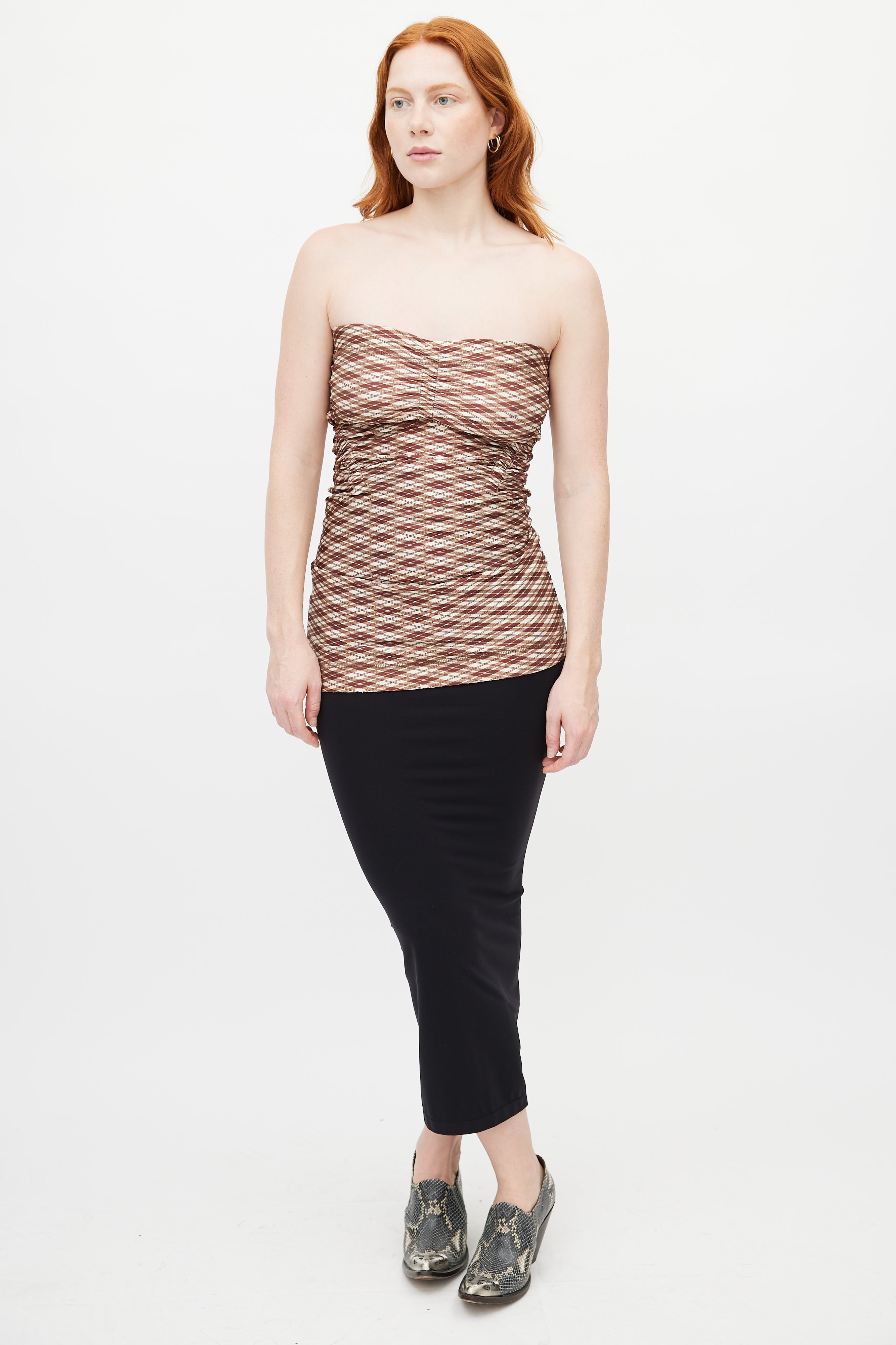 Brown & Multicolour Plaid Ruched Top Medium Size Guide