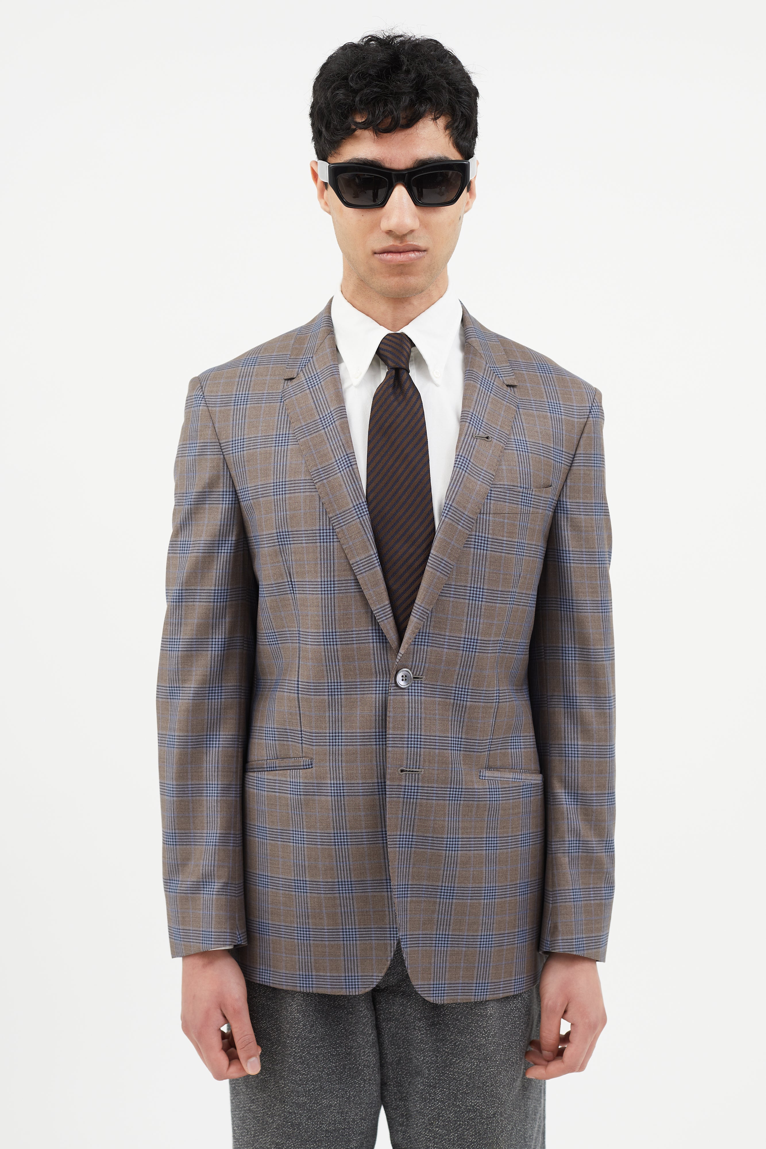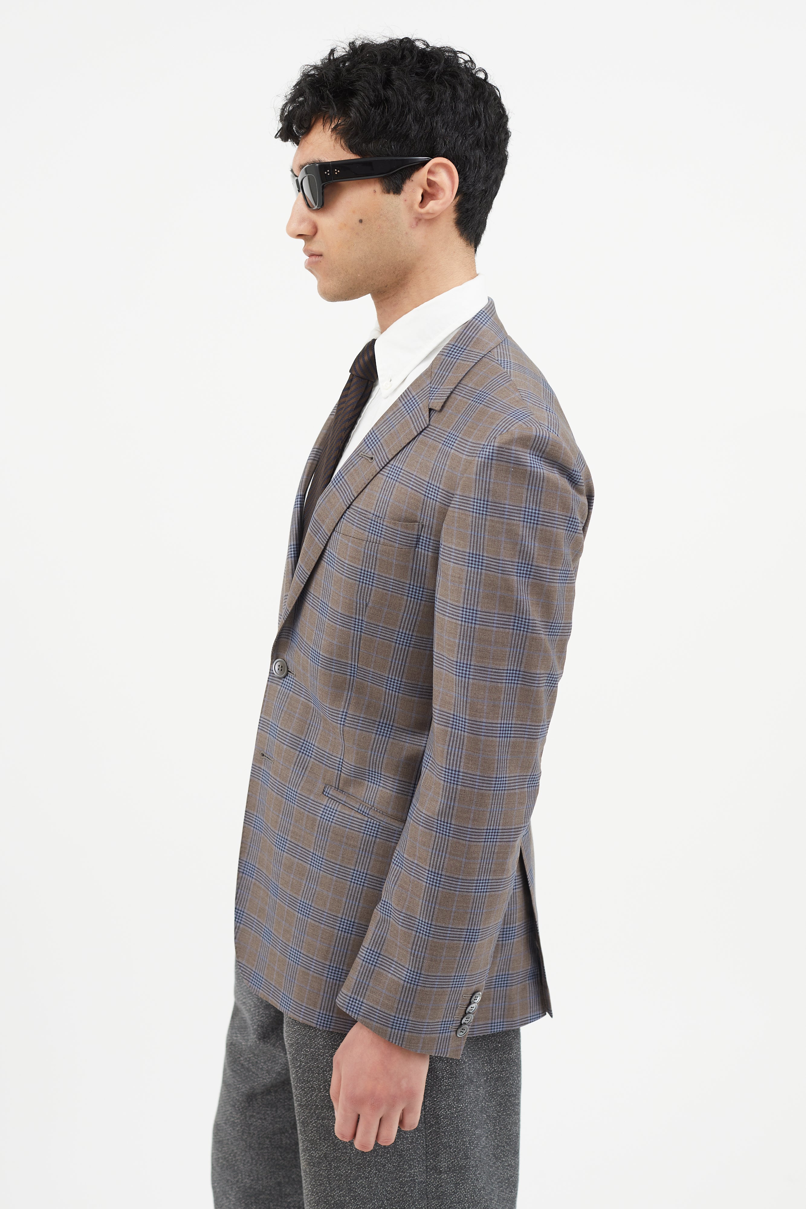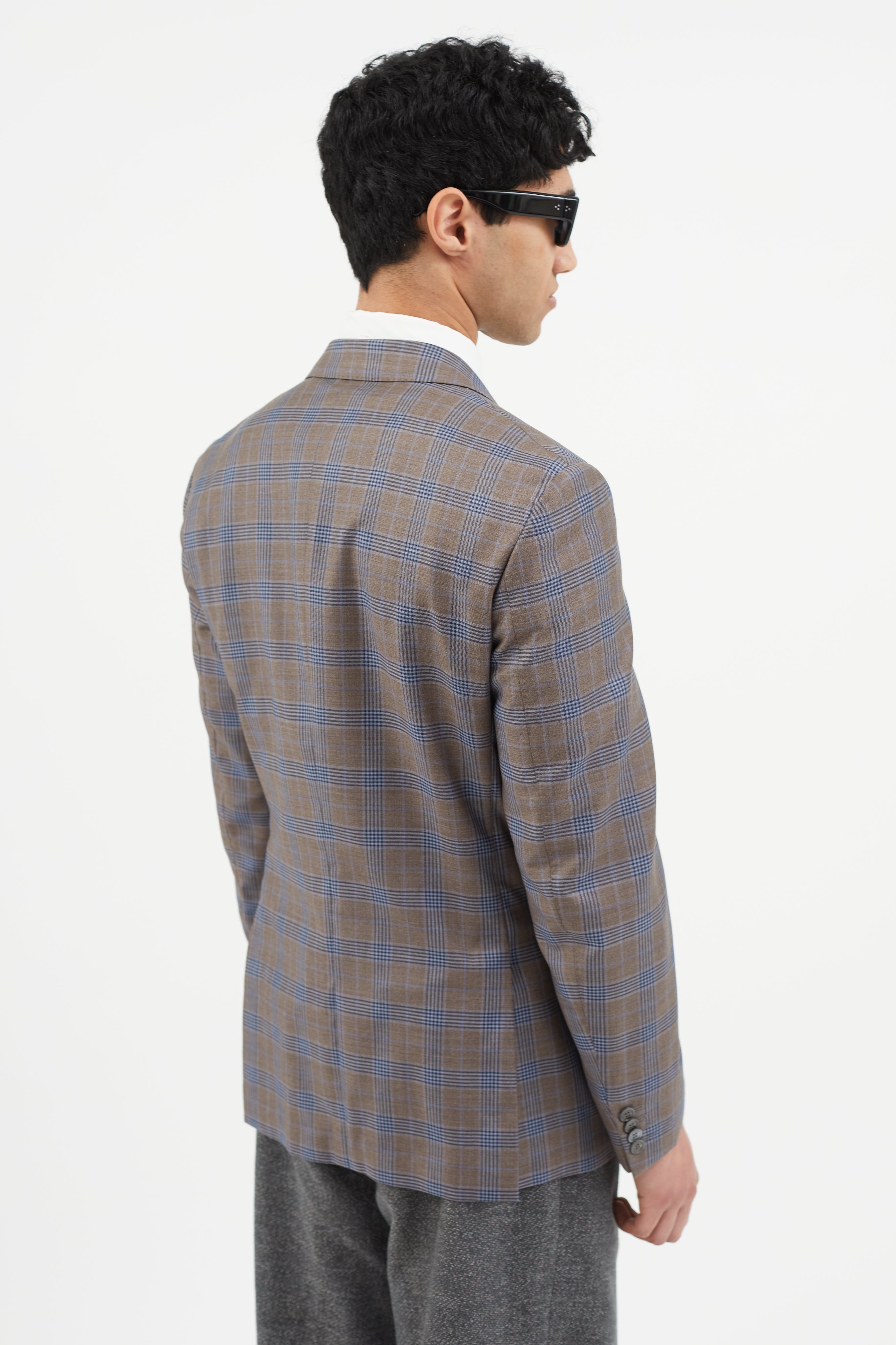 Brown & Blue Plaid Blazer IT 50 Size Guide