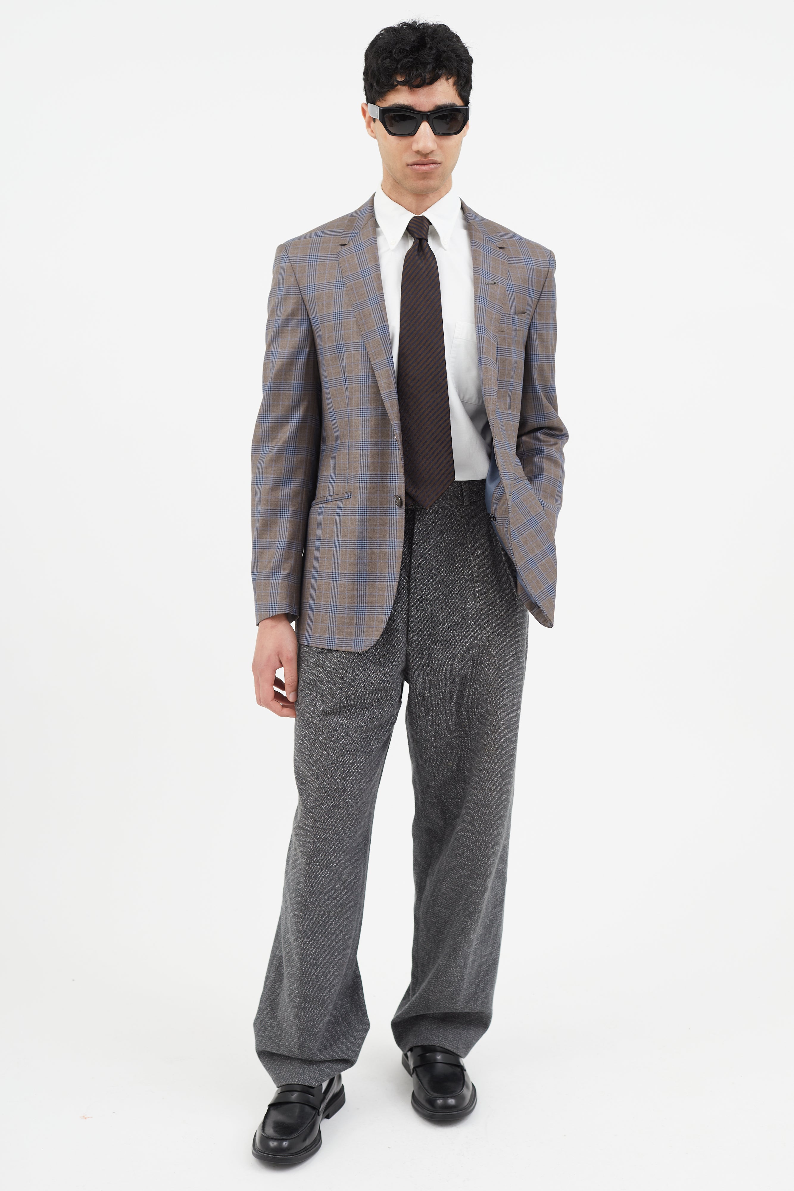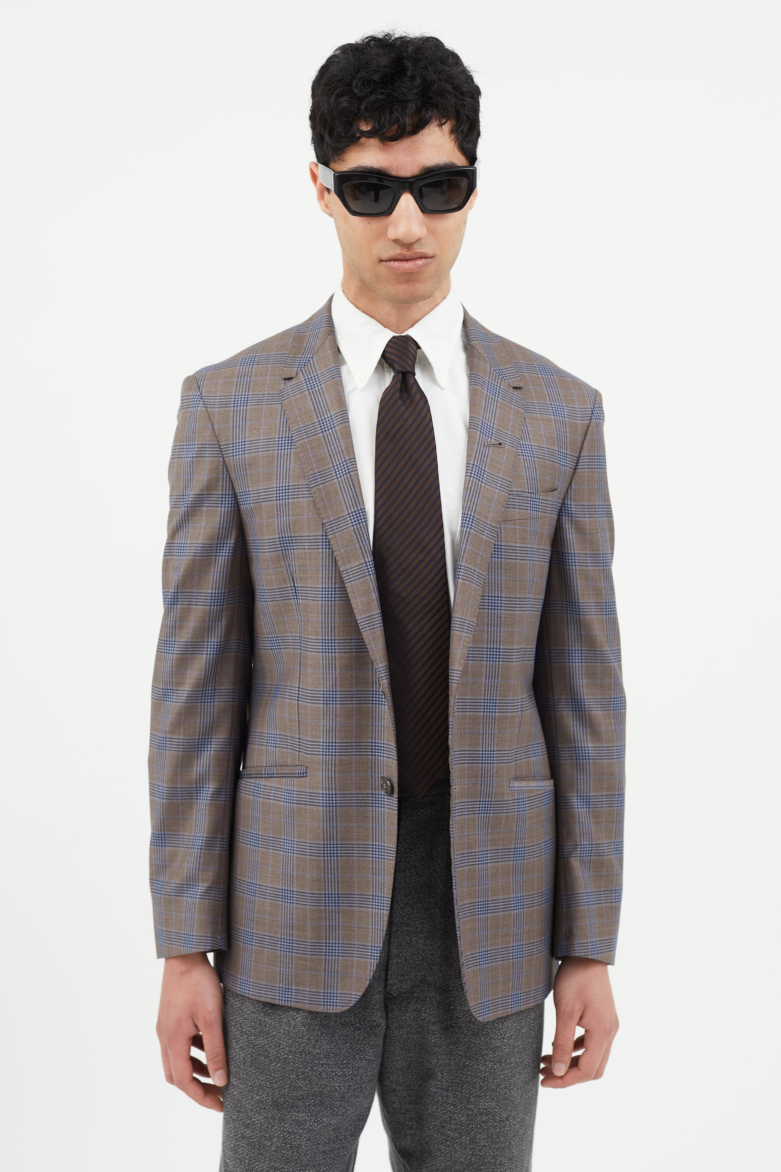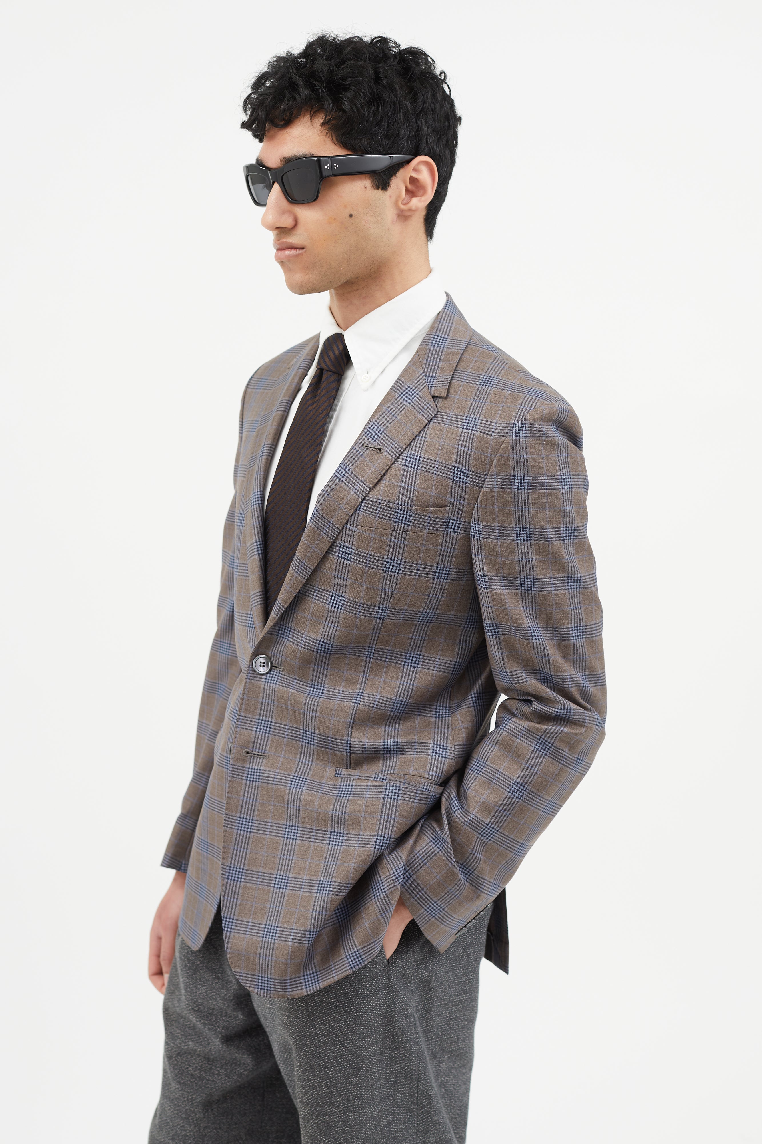 Brown & Blue Plaid Blazer IT 50 Size Guide