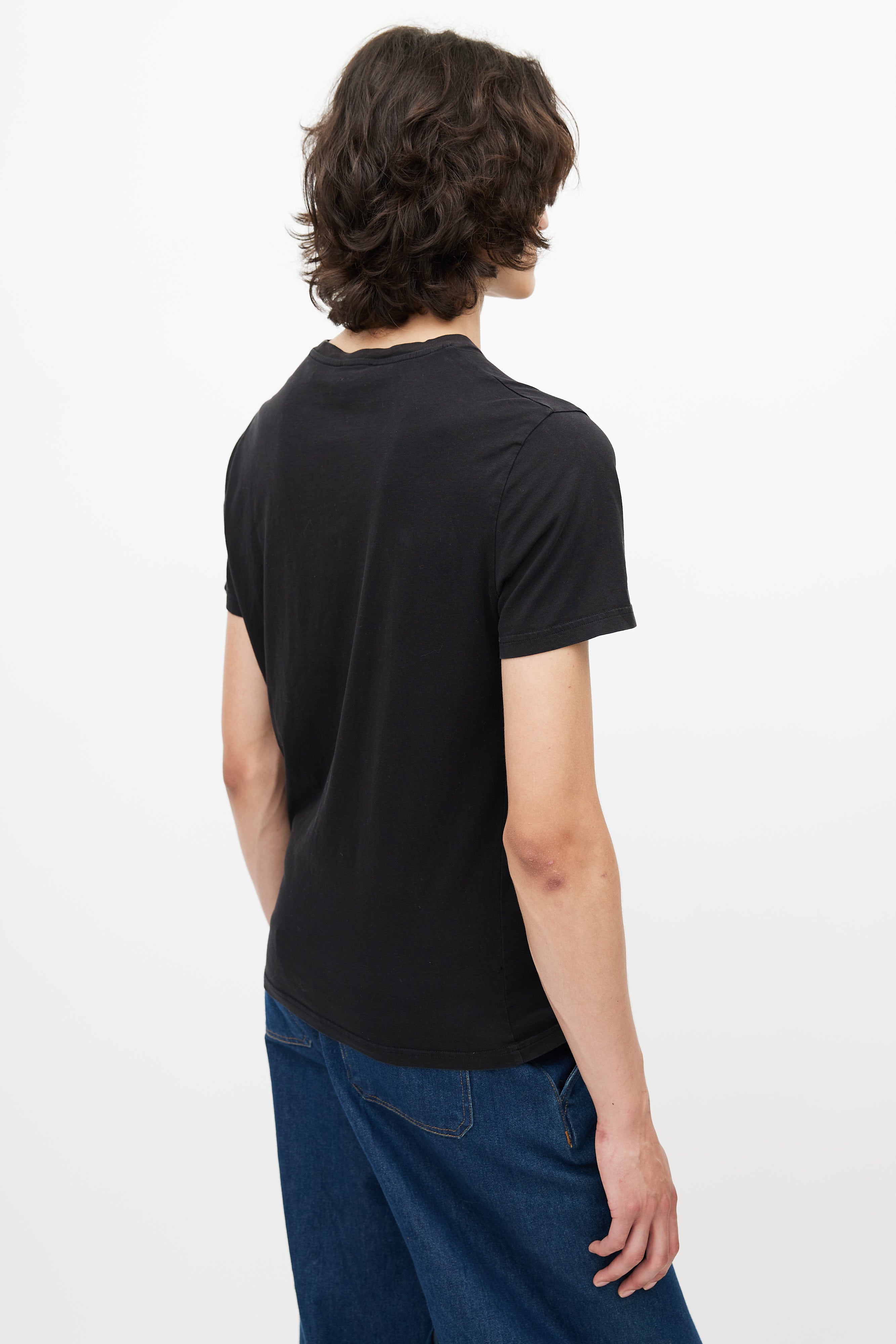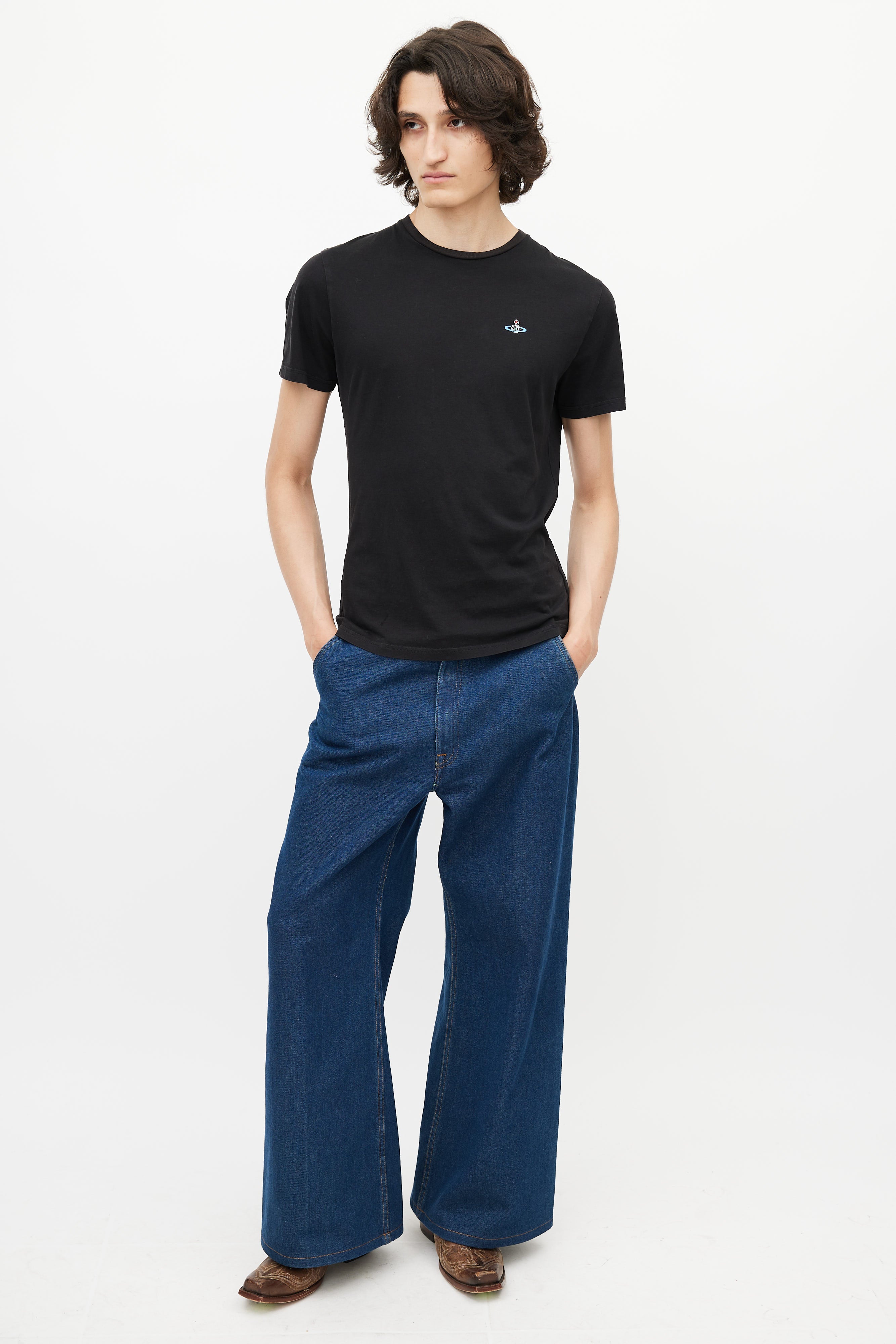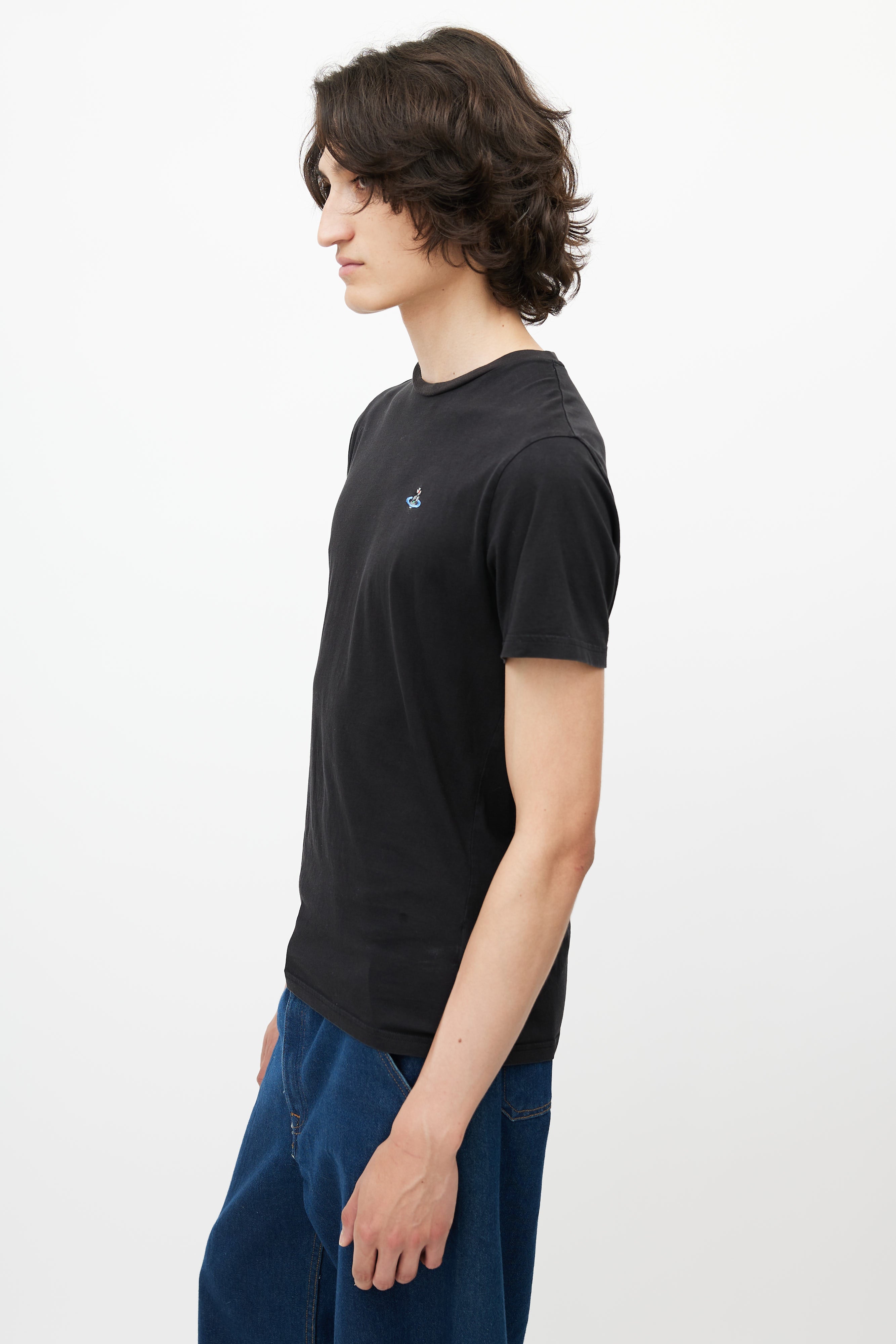 Pre-owned Vivienne Westwood Man black T-shirt featuring multicolour embroidered orb logo at chest, crew neckline, and short sleeves.