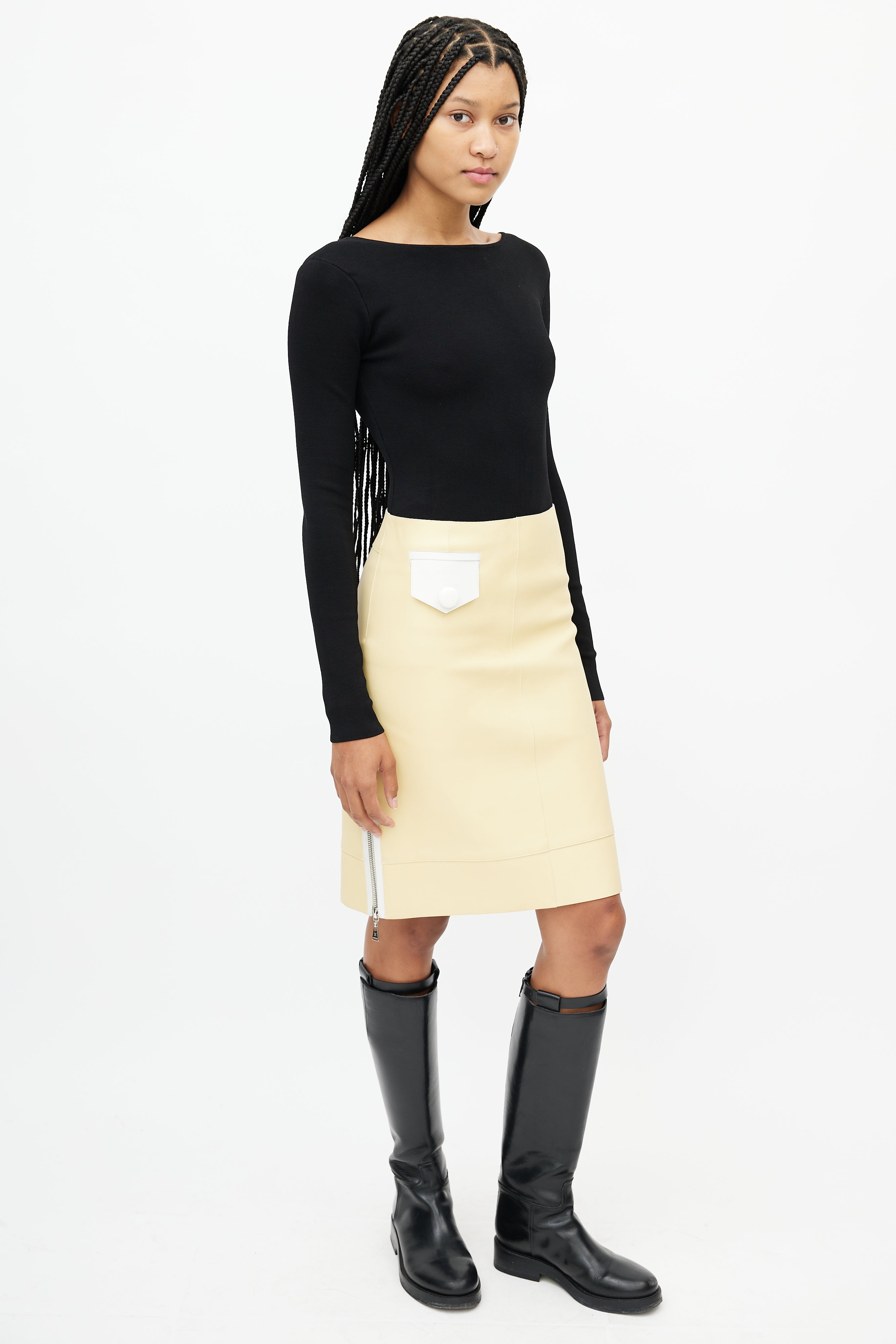 Yellow & White Leather Skirt FR 36 Size Guide