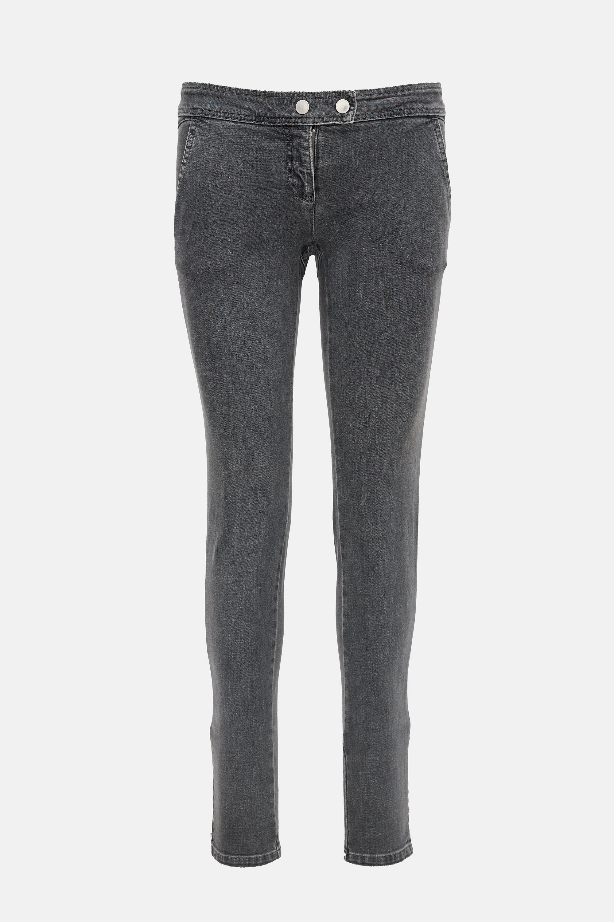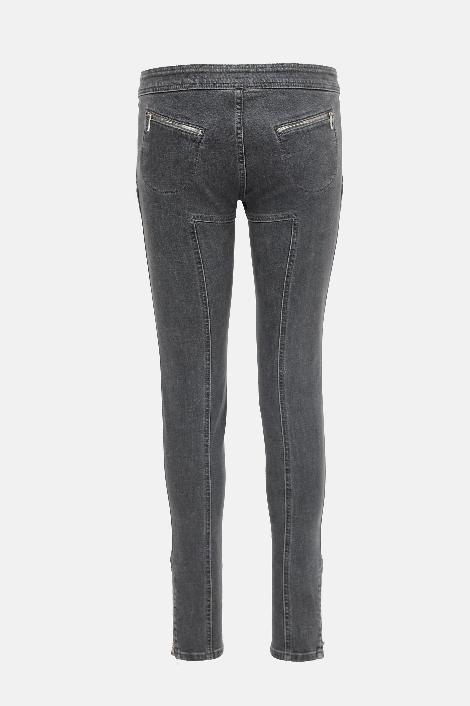 Pre-owned Alexander McQueen grey jeans featuring a low rise, zip fly with snap fastening, four pocket styling, slim leg, and zip hems.