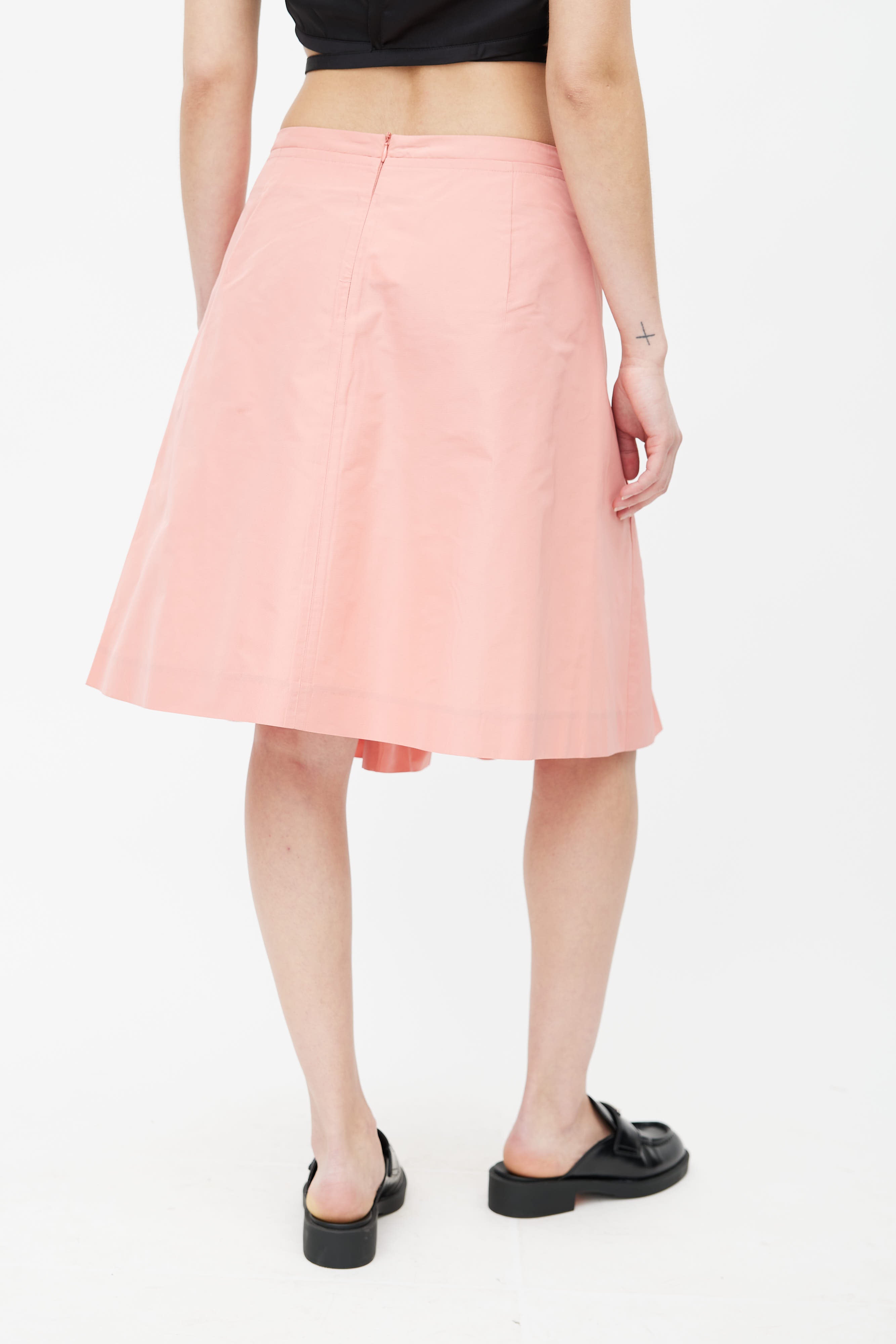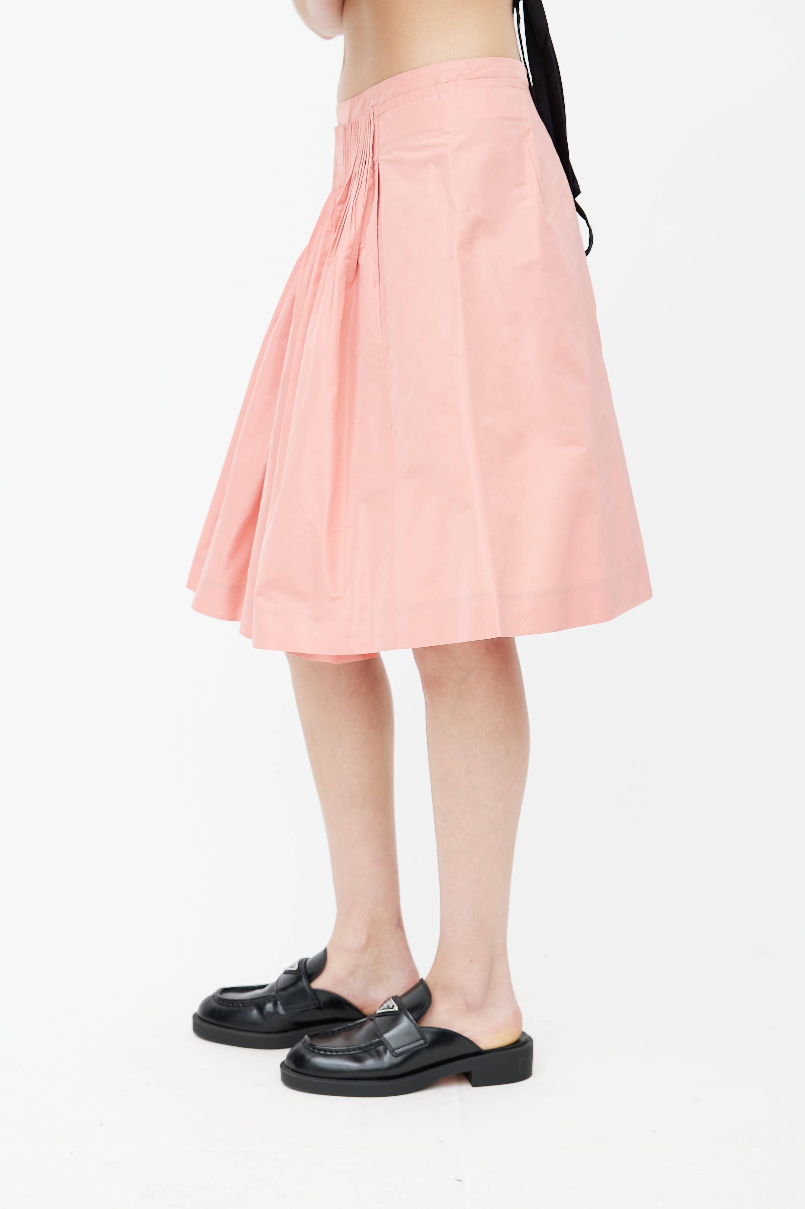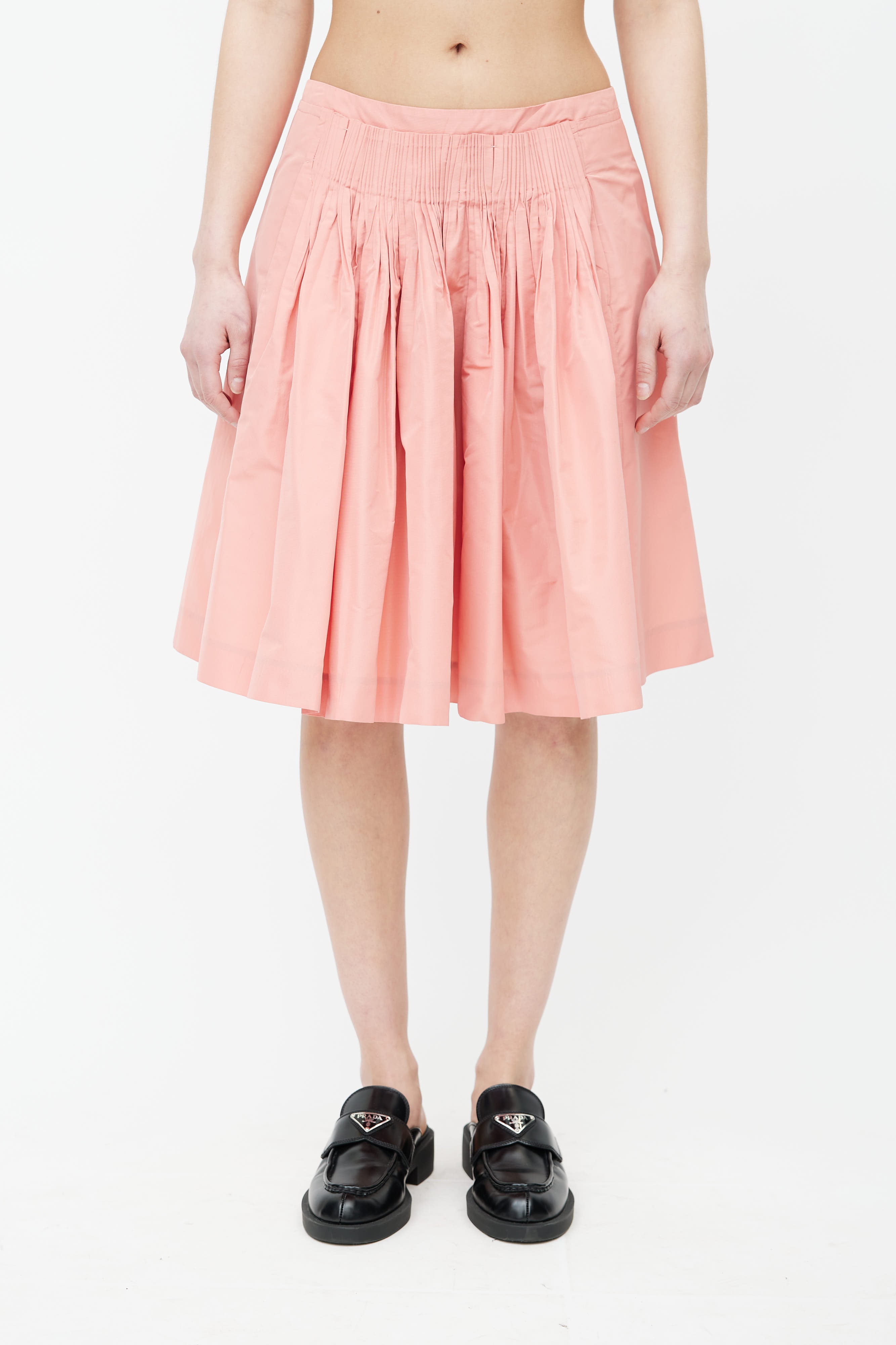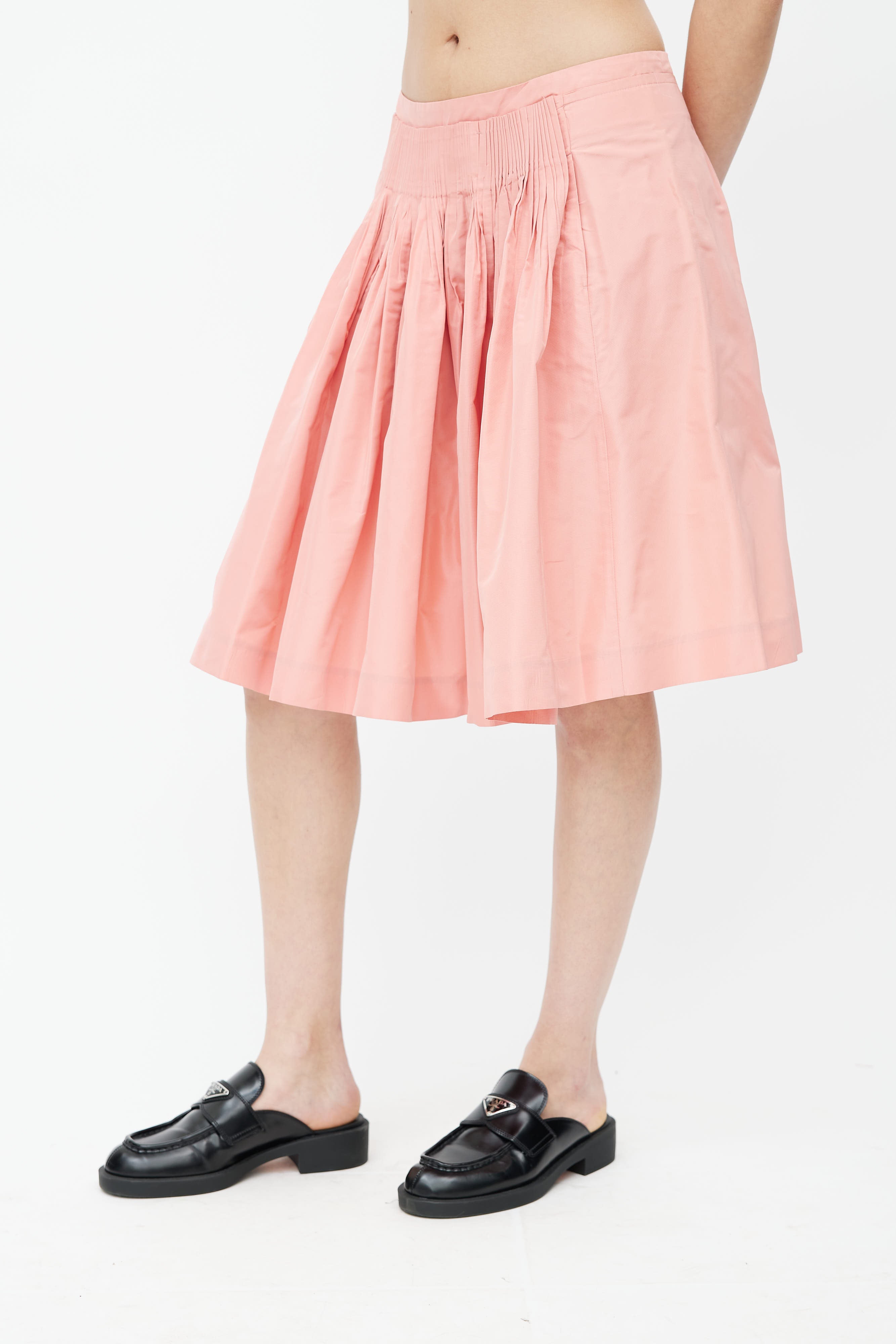 Pre-owned Miu Miu pink A-line skirt featuring pleating detail at front, two side pockets, and concealed zip closure at back.