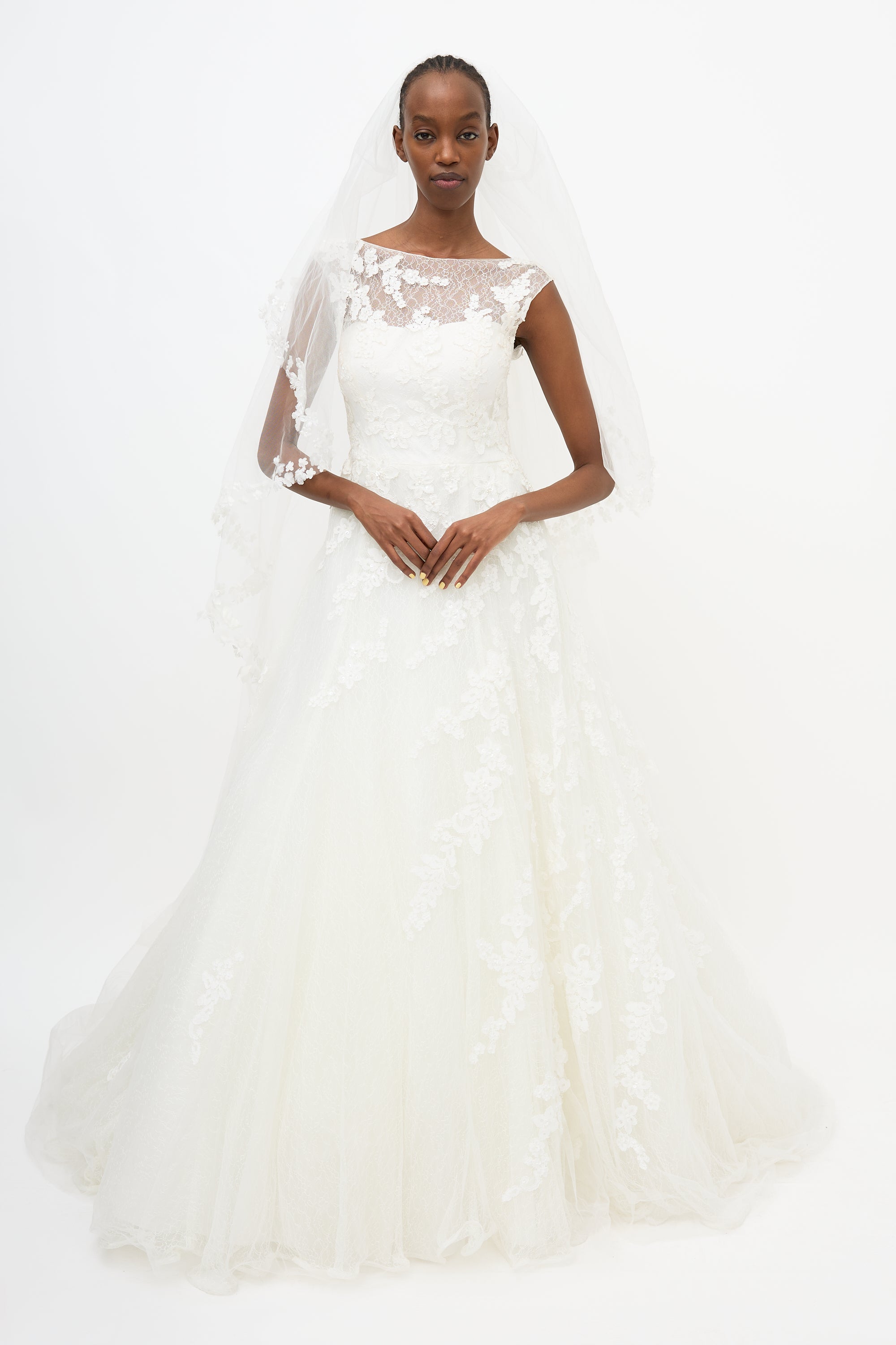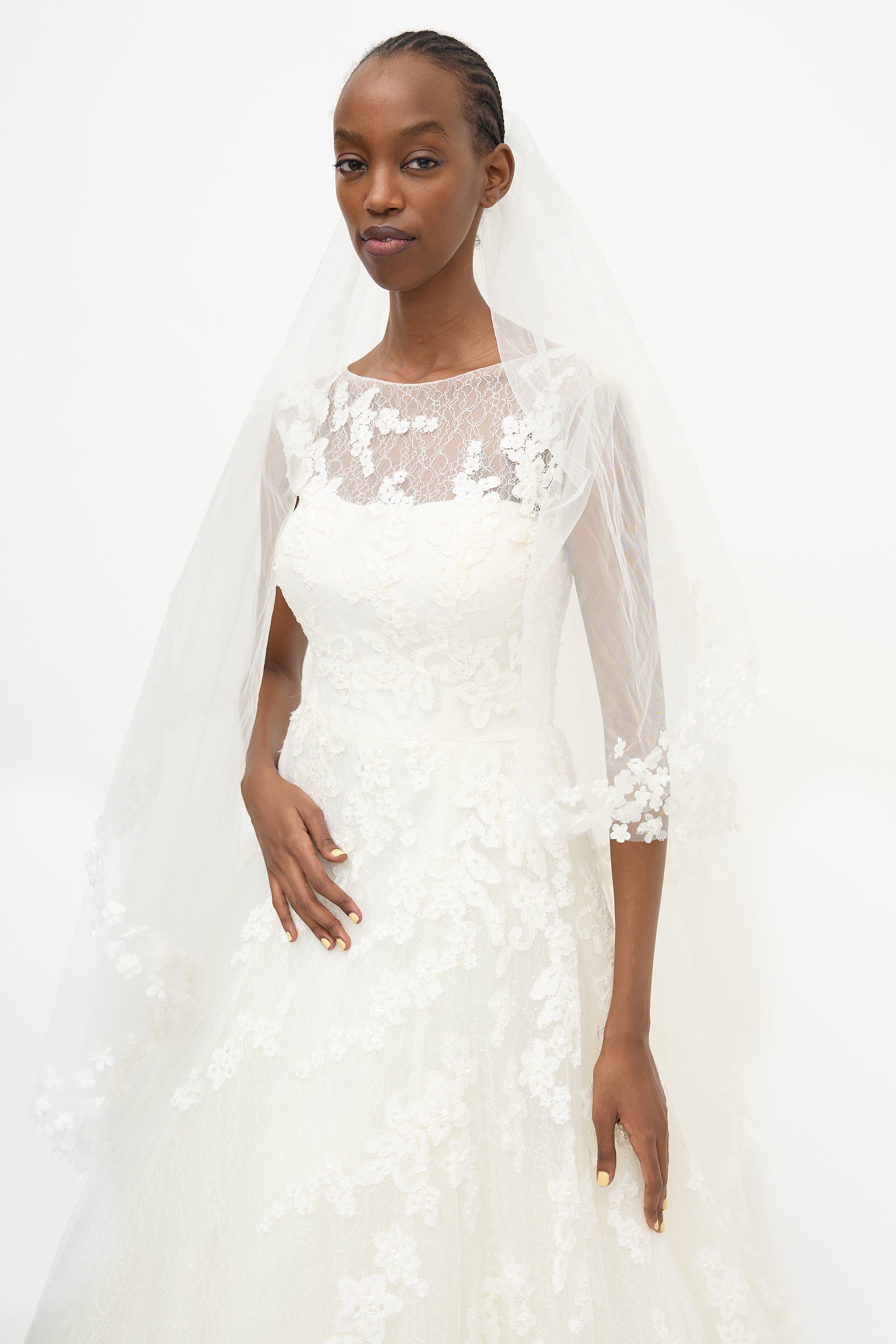 Small 14" Across Shoulder 15" Across Chest 14" Waist 78" Centre Back Length Veil: 100" Length