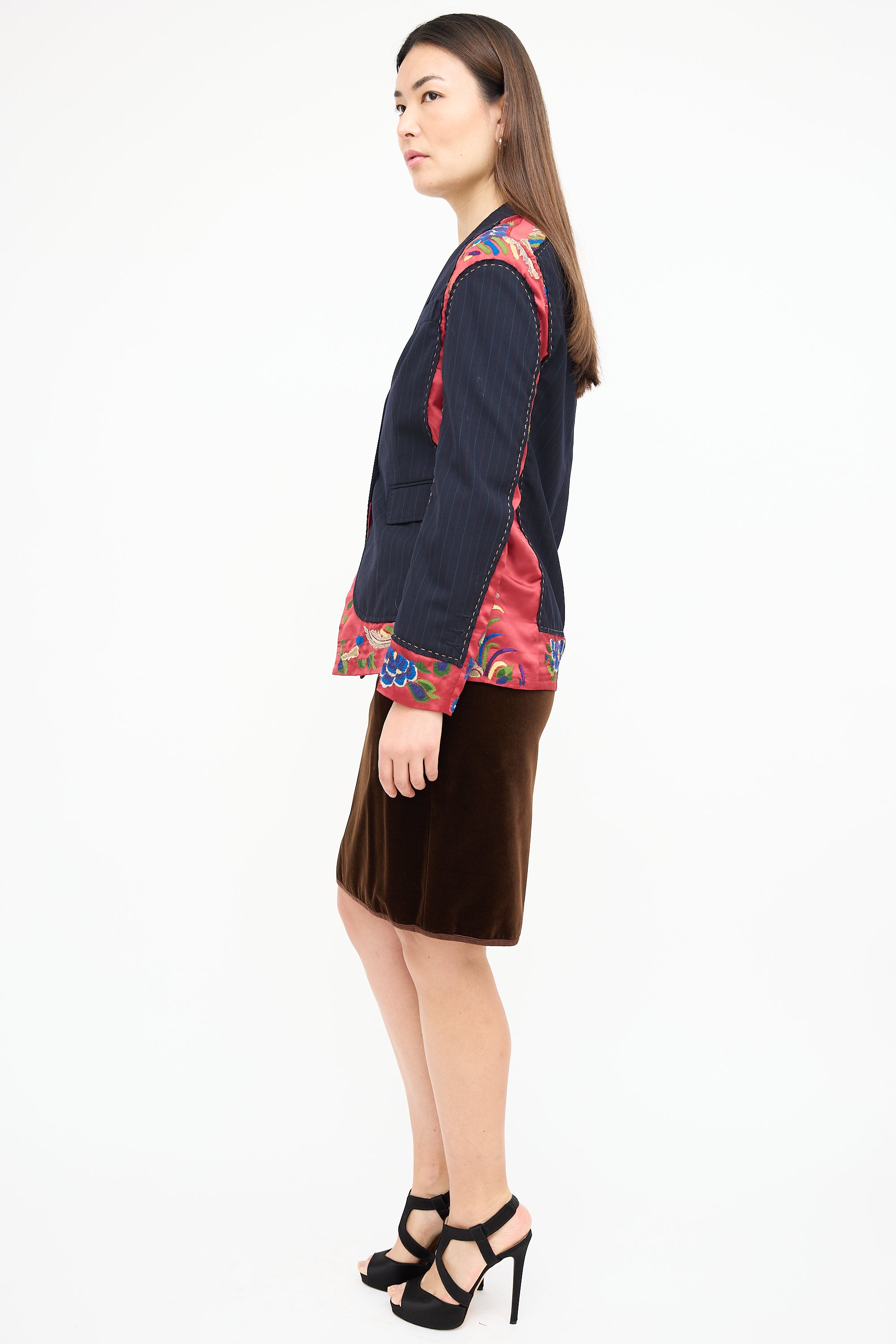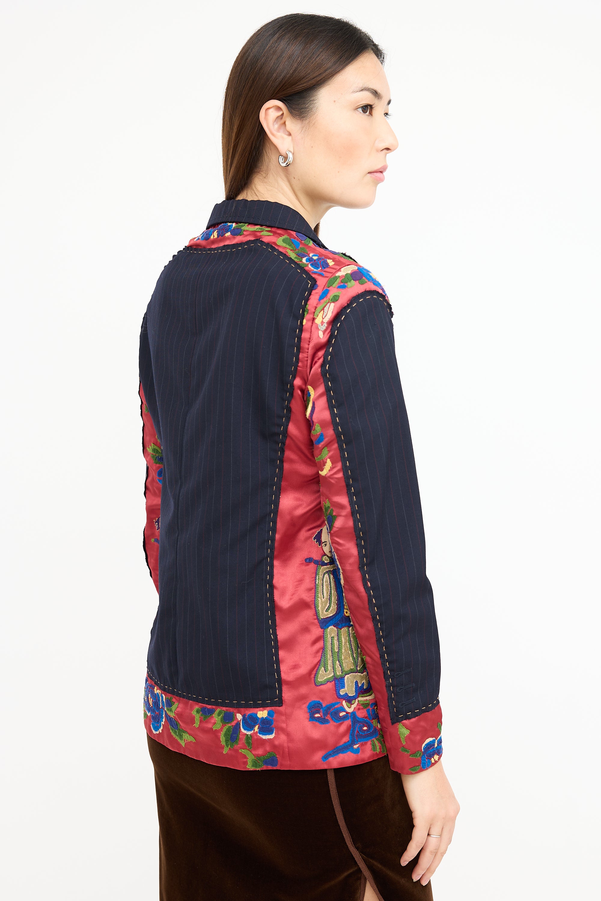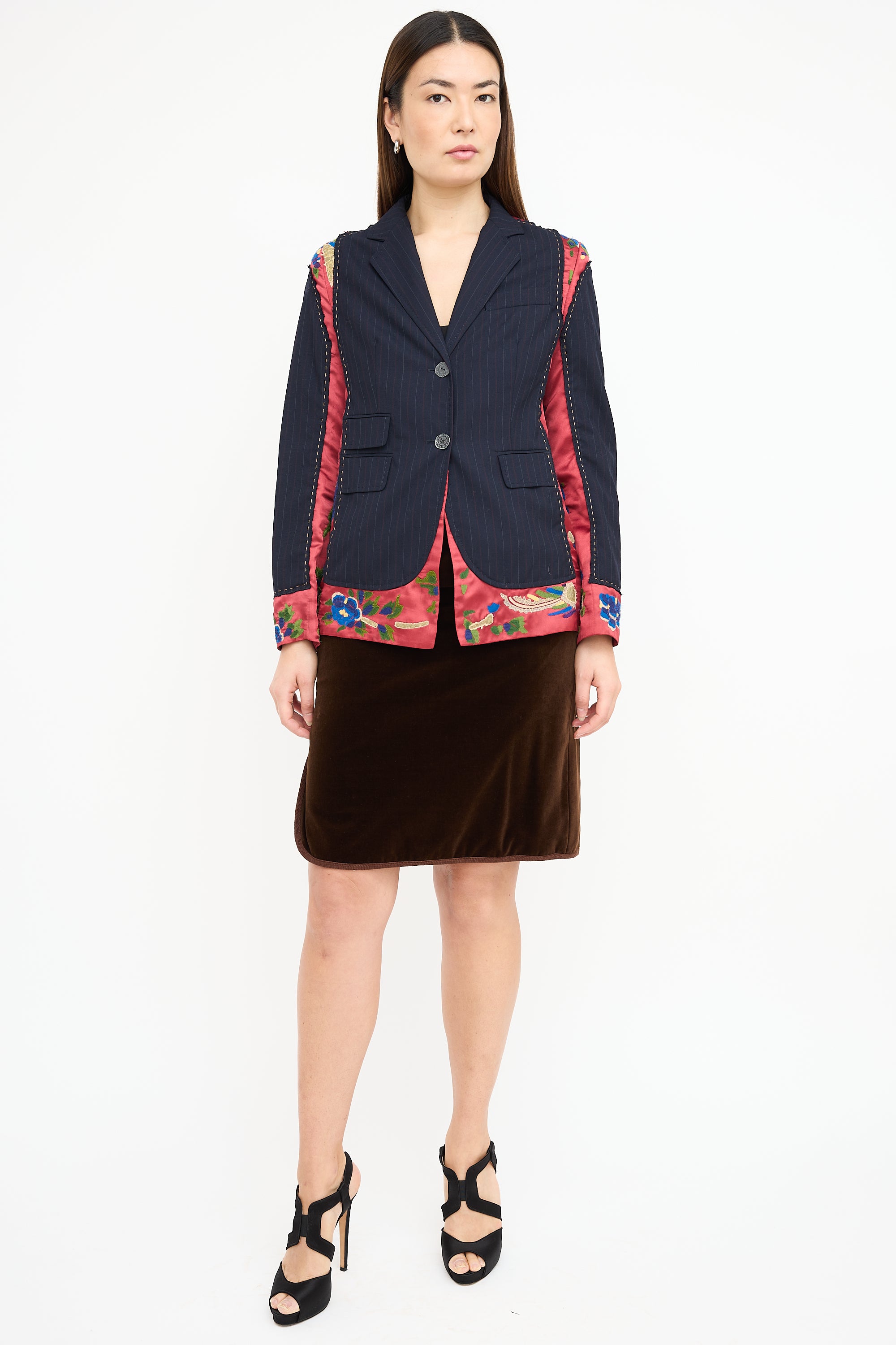 Black & Multi Embroidered Pinstripe Blazer US 8 Size Guide