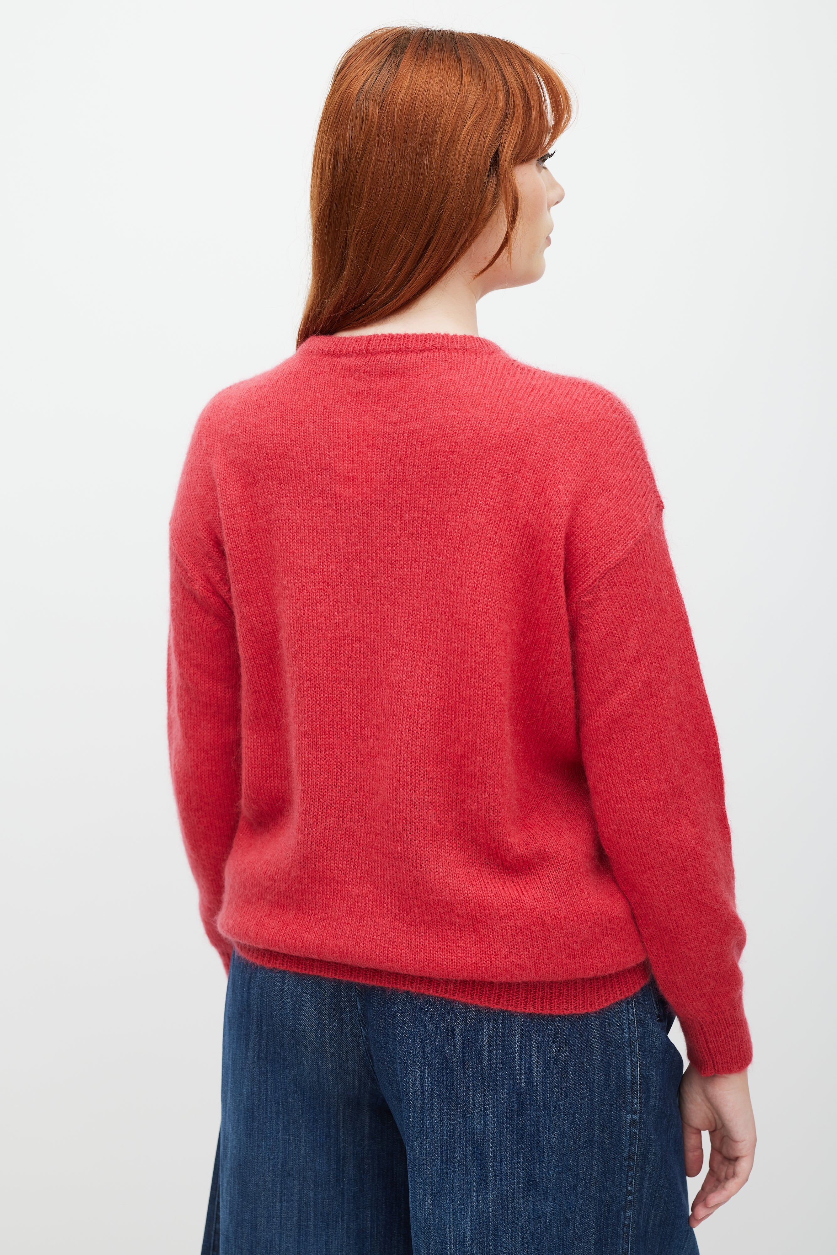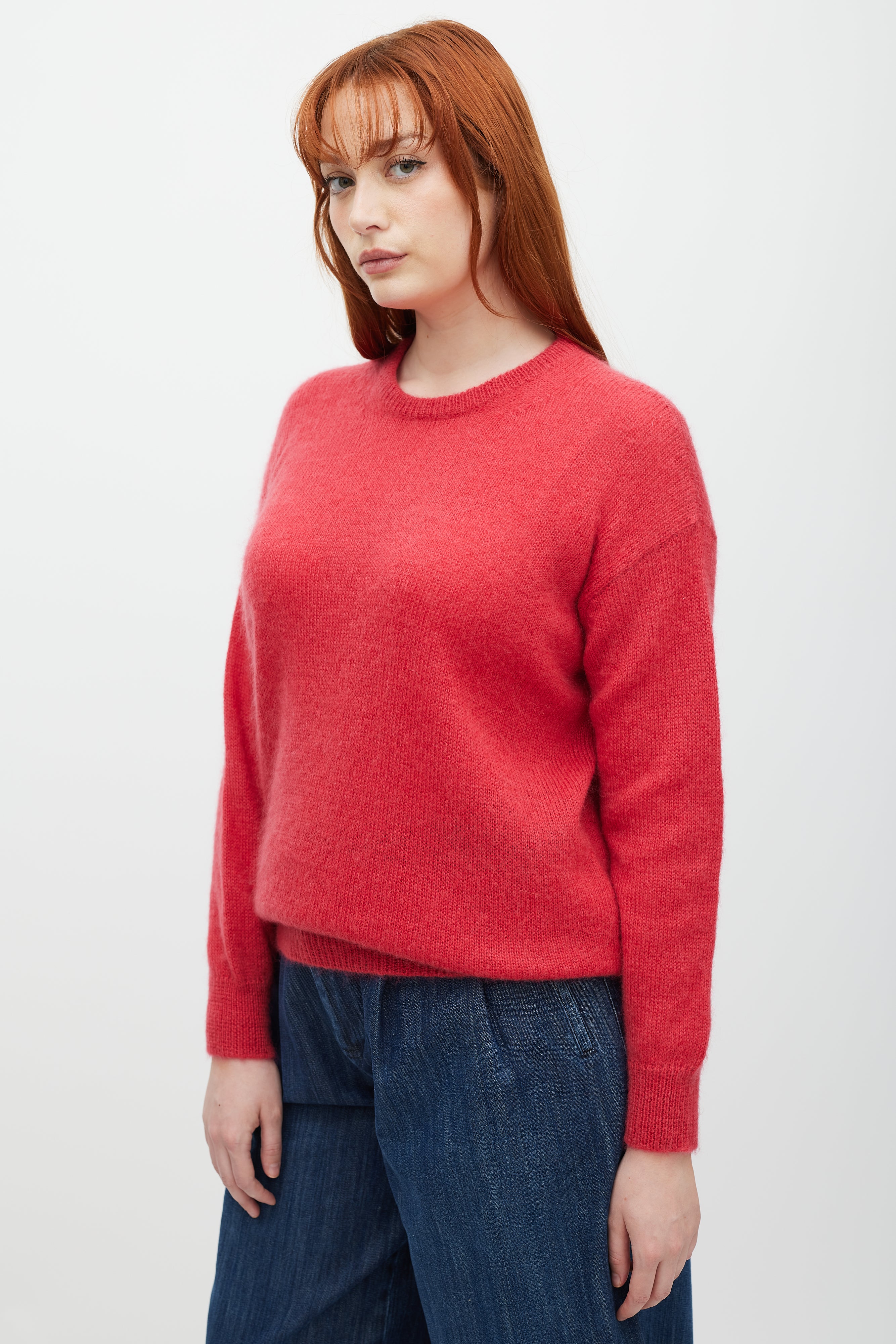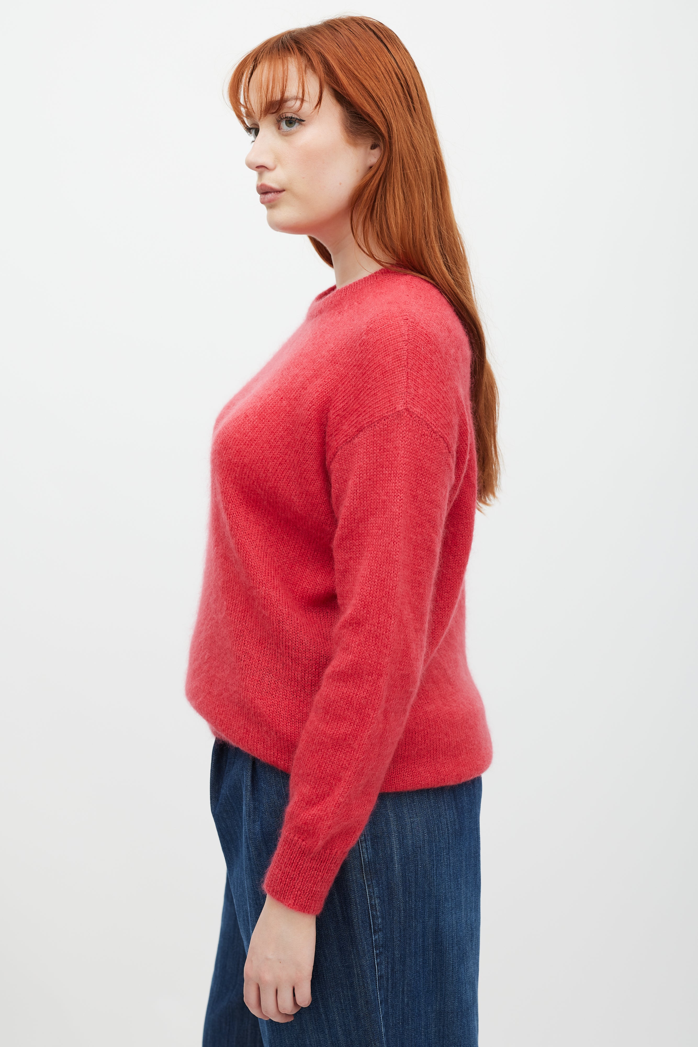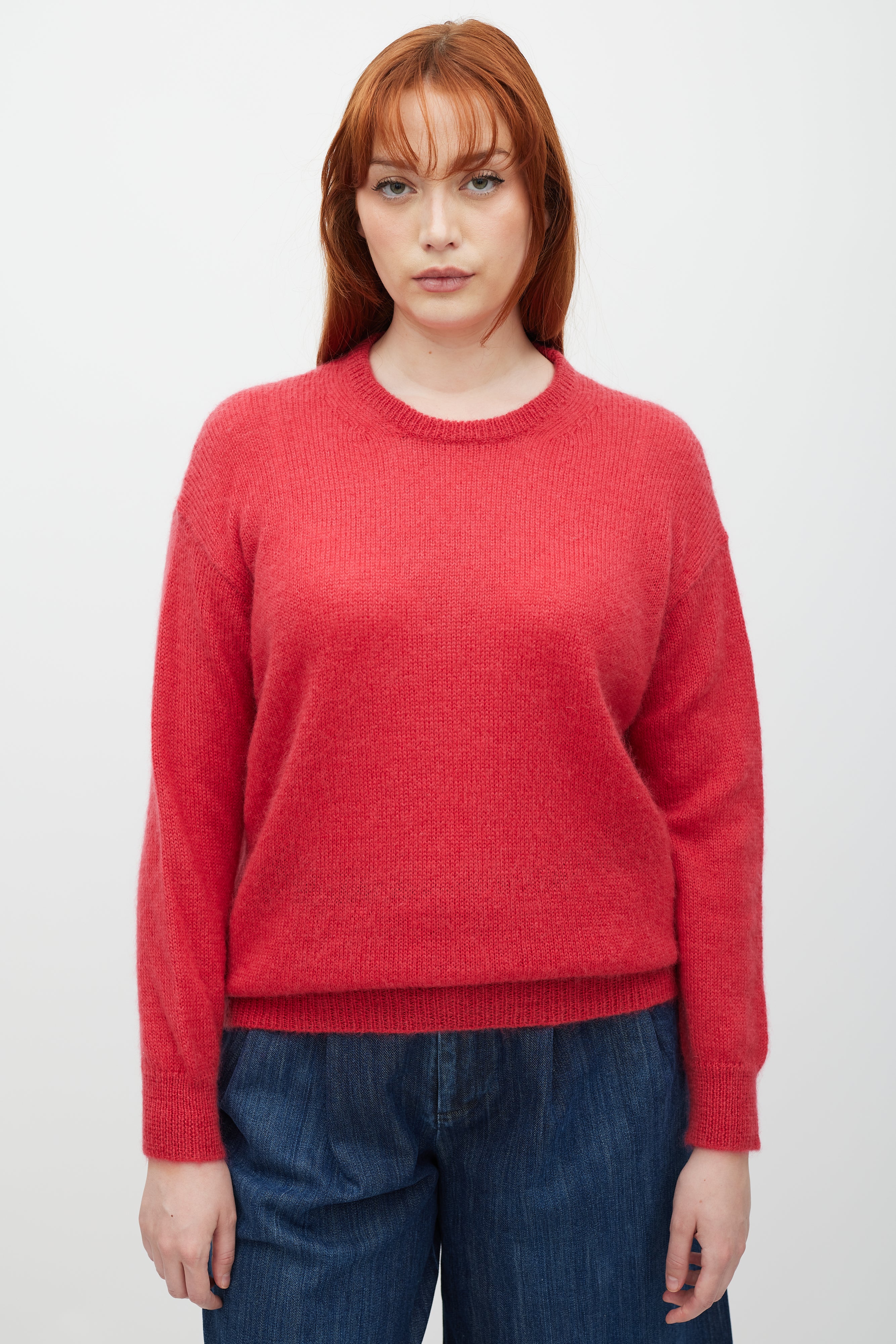 Pre-owned Max Mara red cashmere knit sweater featuring a round neckline, long sleeves, and ribbed hem.