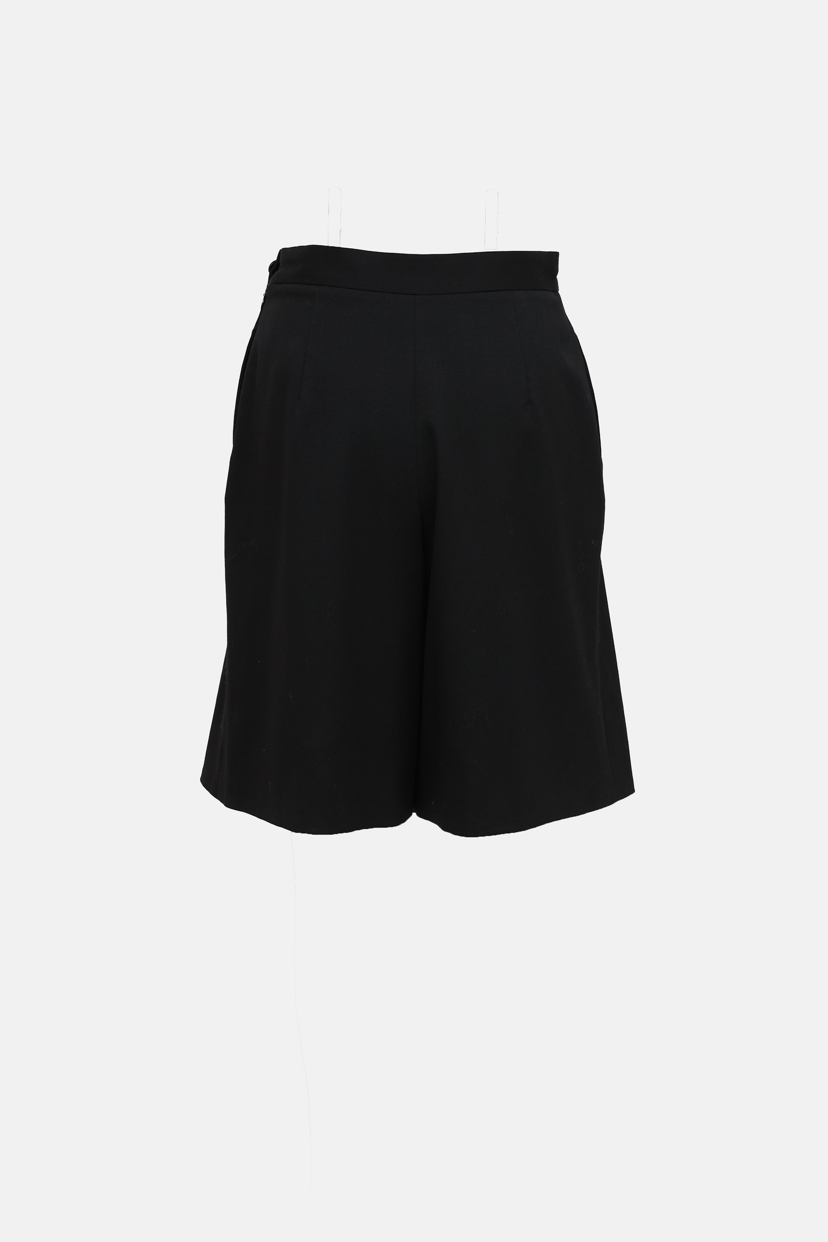 Pre-owned Vivenne Westwood Red Label black skort featuring logo button closure, slit pockets at hip, concealed zip at side, and pleated front.