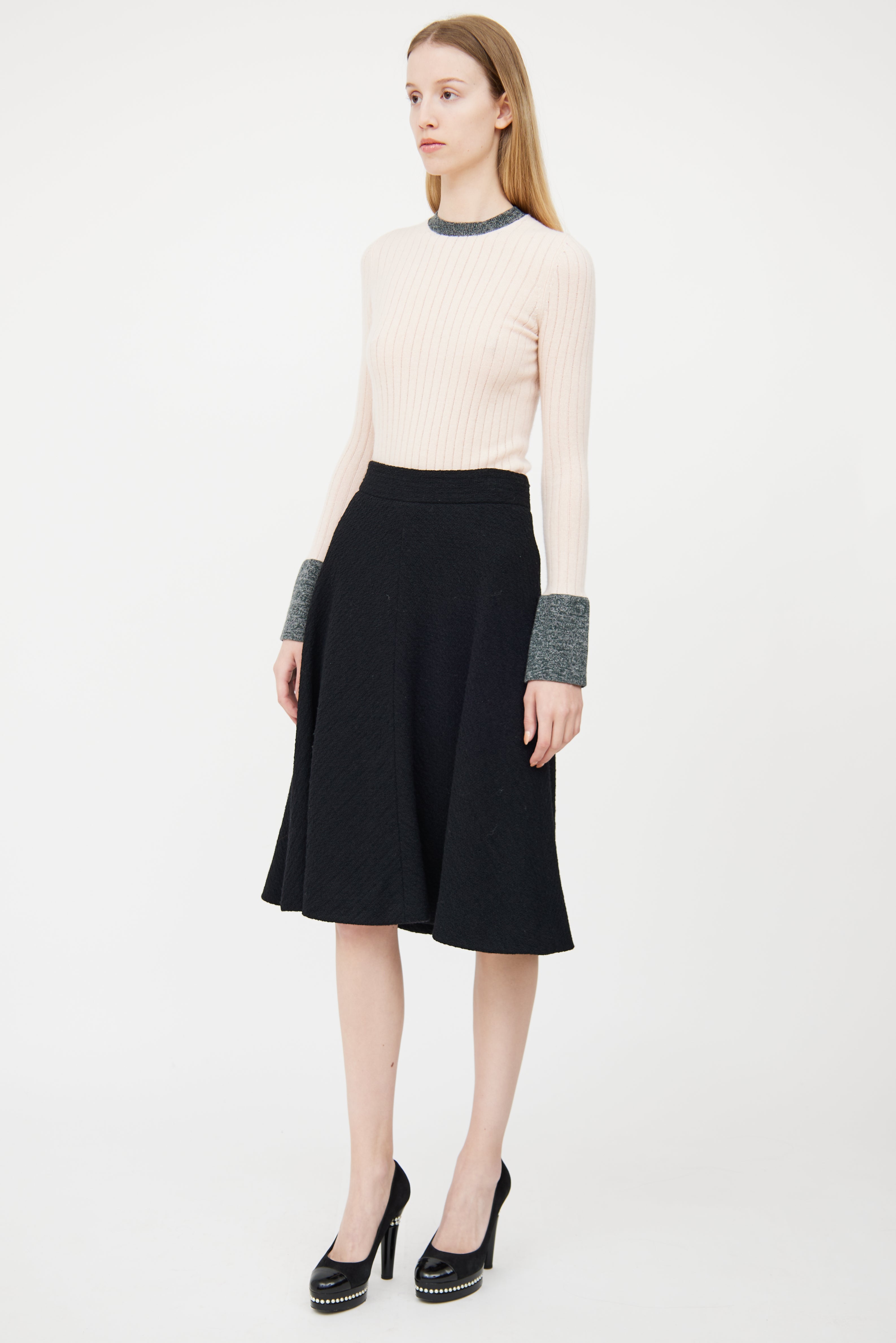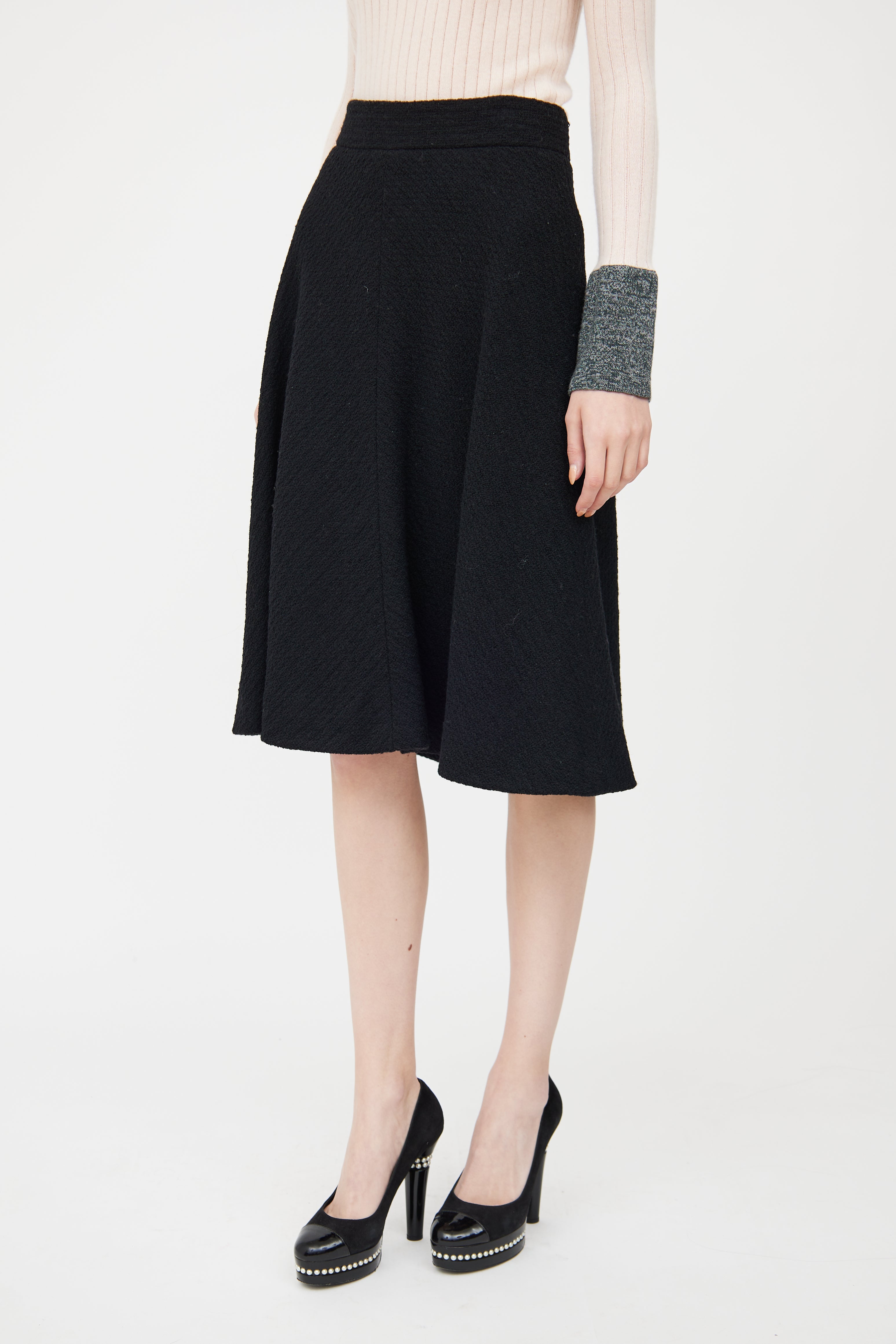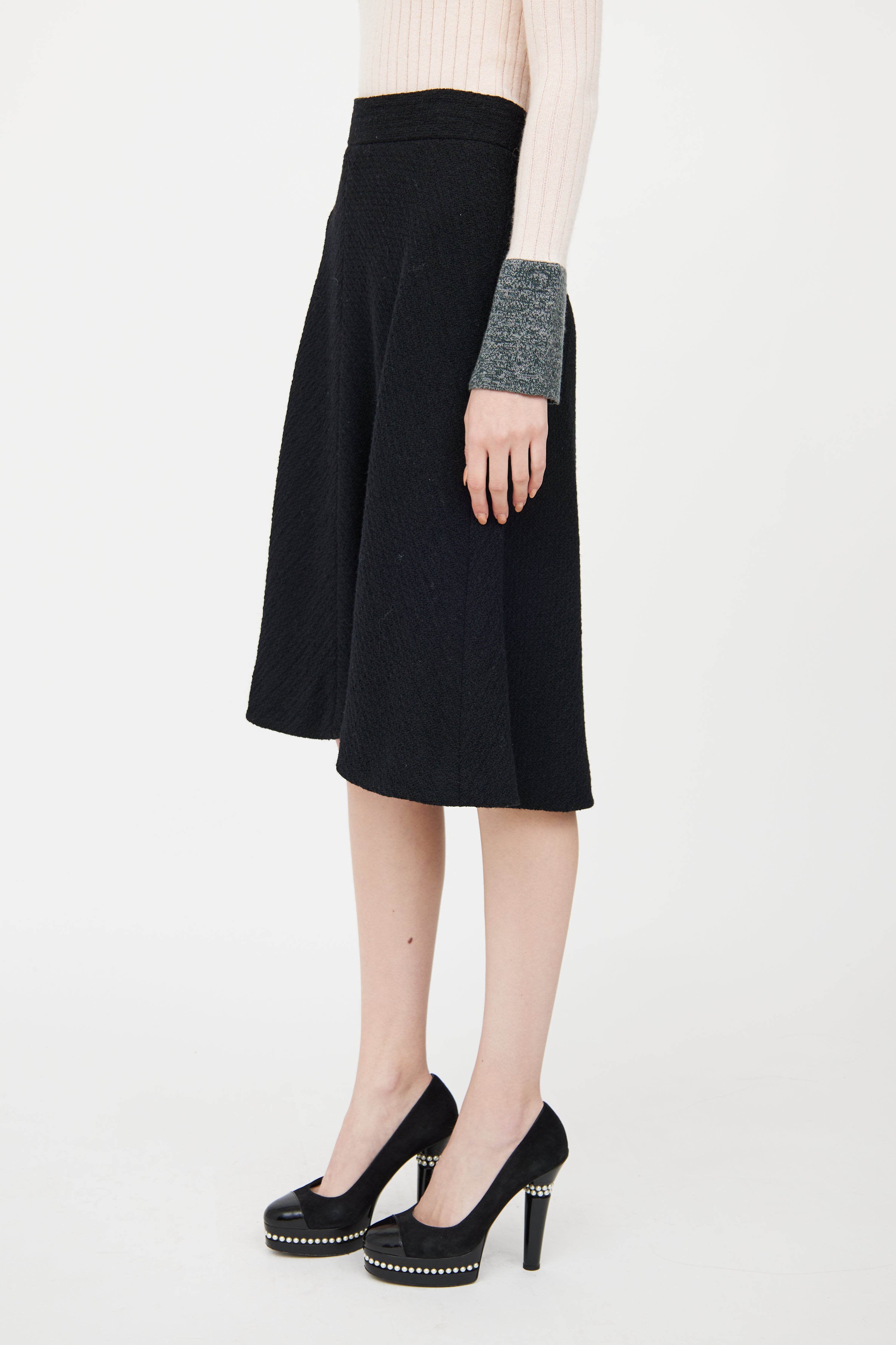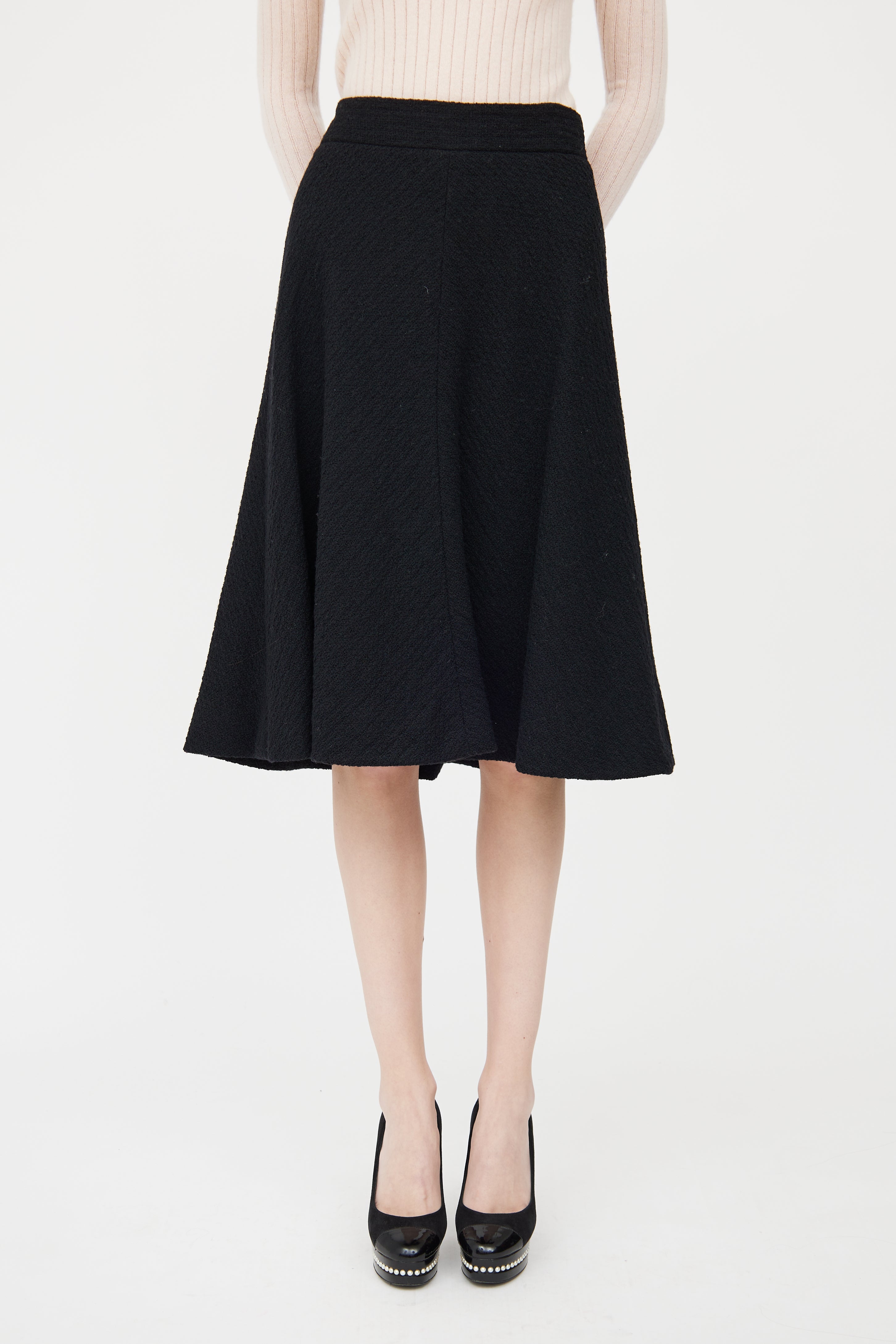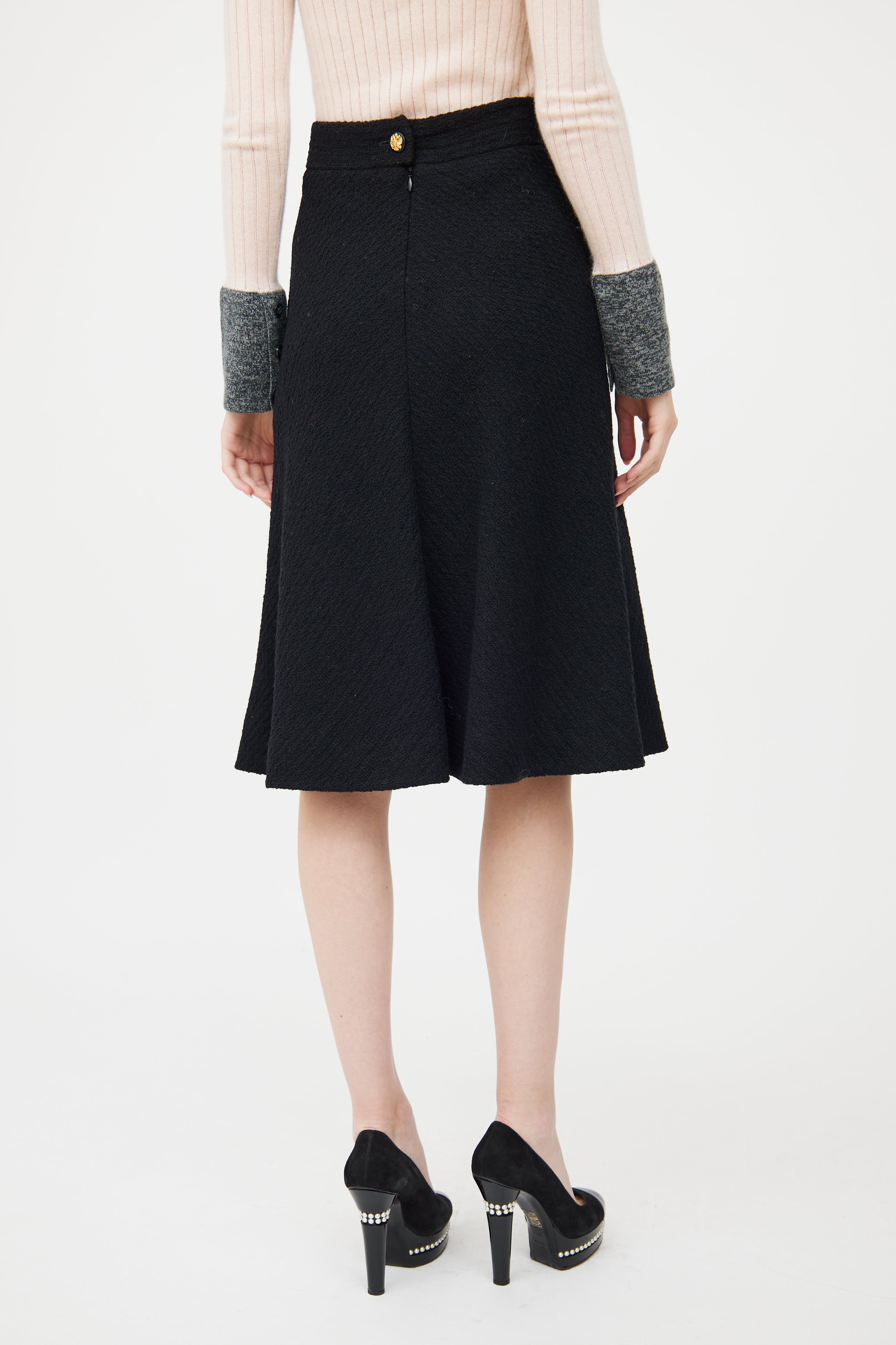 Chanel Fall 2009 Black Wool A Line Skirt FR 42