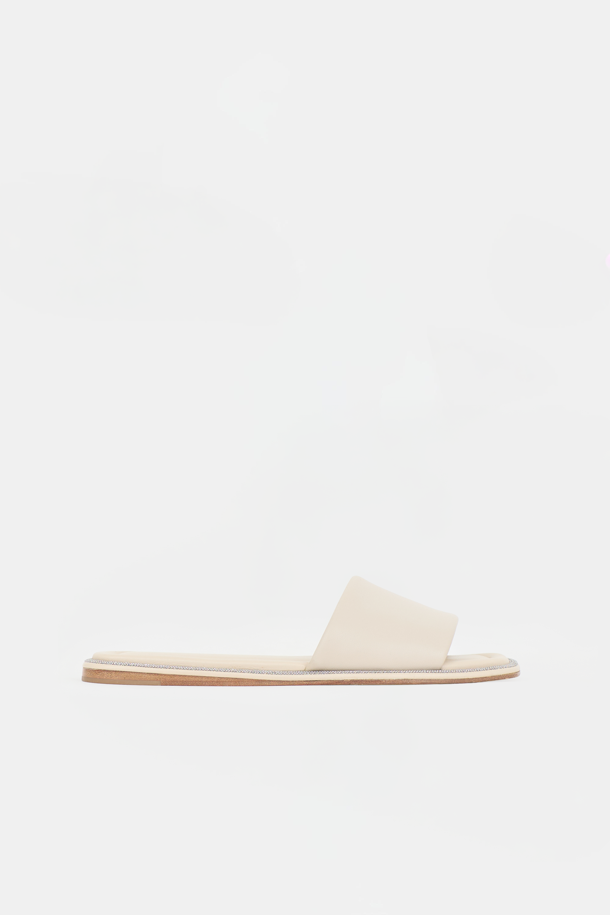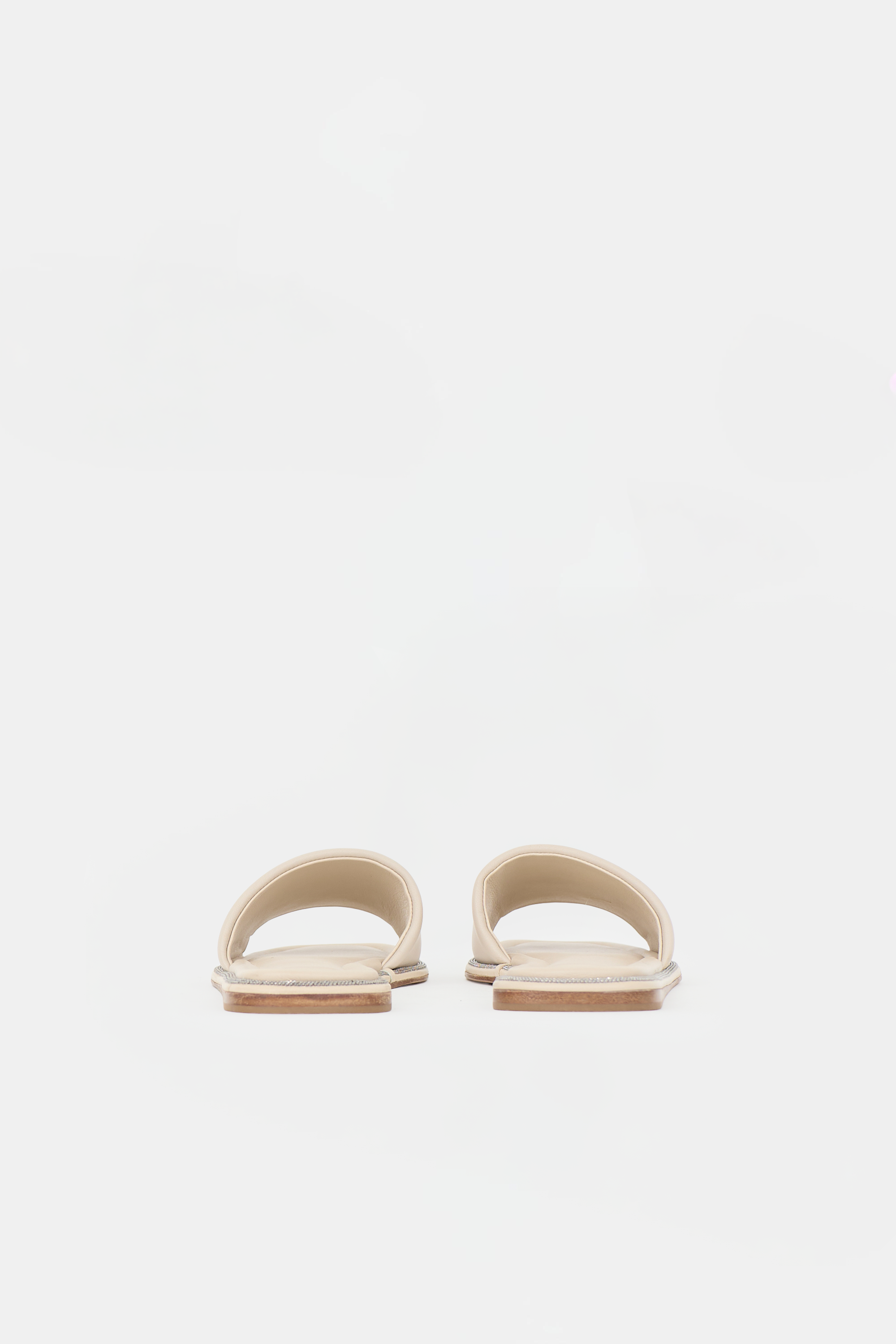 Pre-owned Brunello Cucinelli beige leather sandals featuring square toe, padded footbed, and Monili bead trim.
