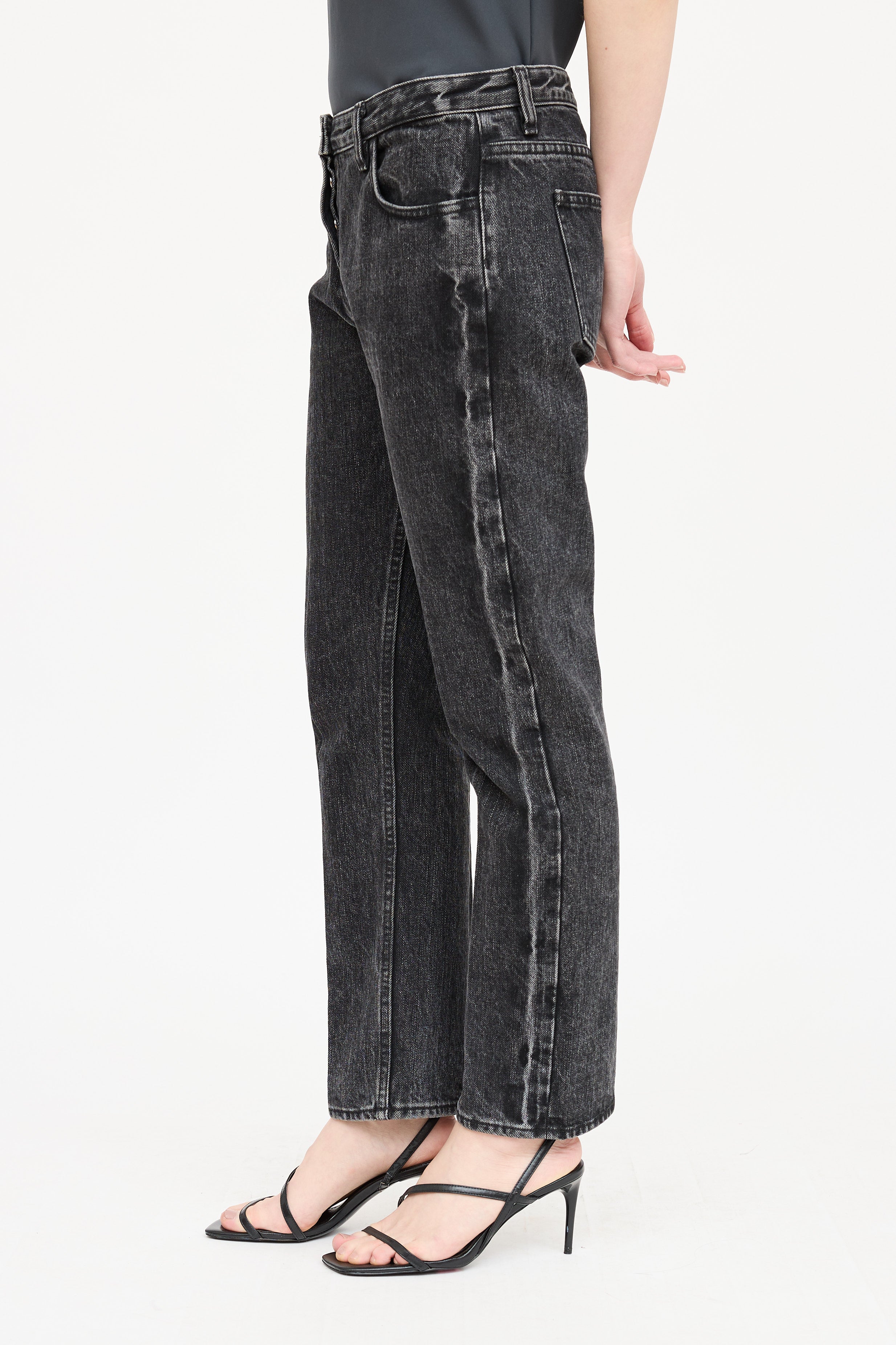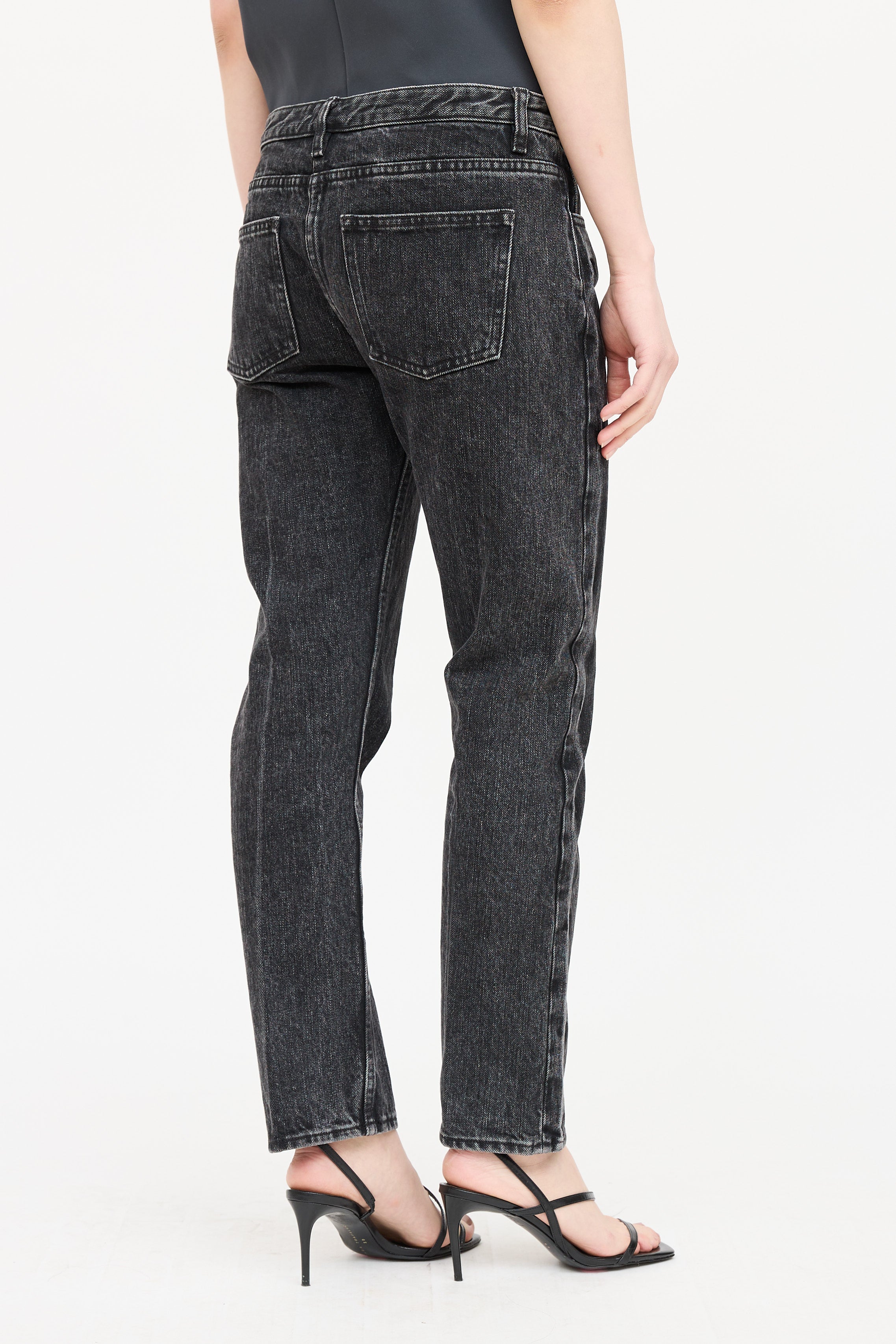 Pre-owned The Row black Ashland slim straight jean featuring mid-rise styling, concealed button closure, belt loops and five pocket styling.