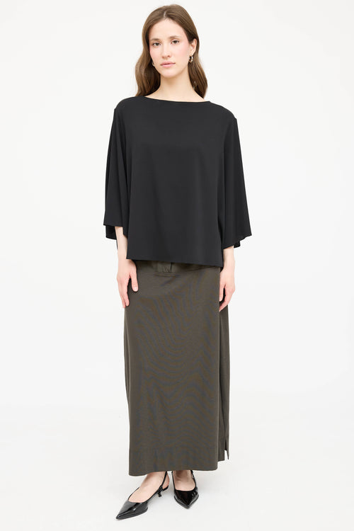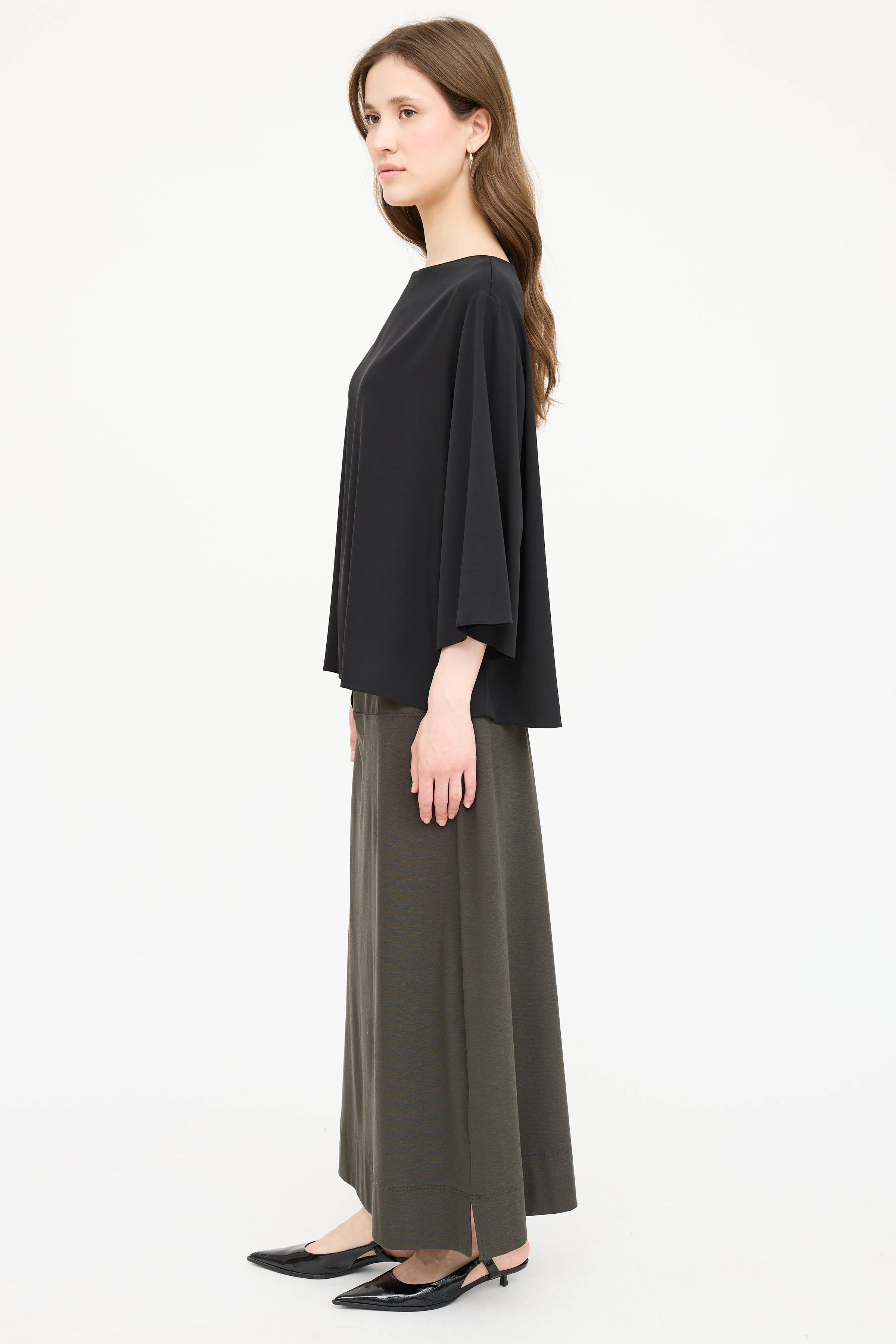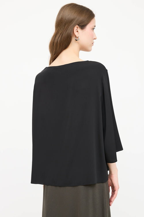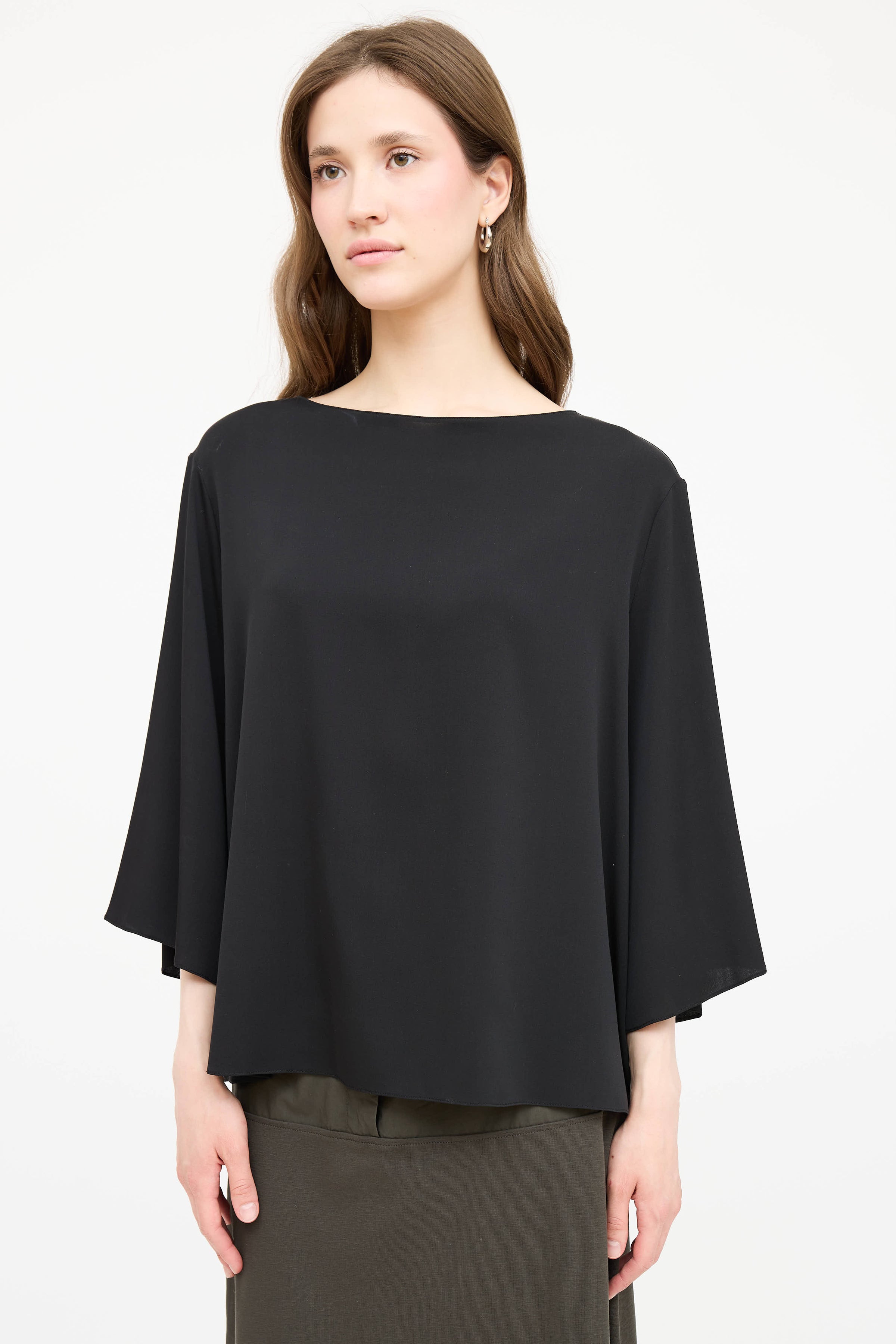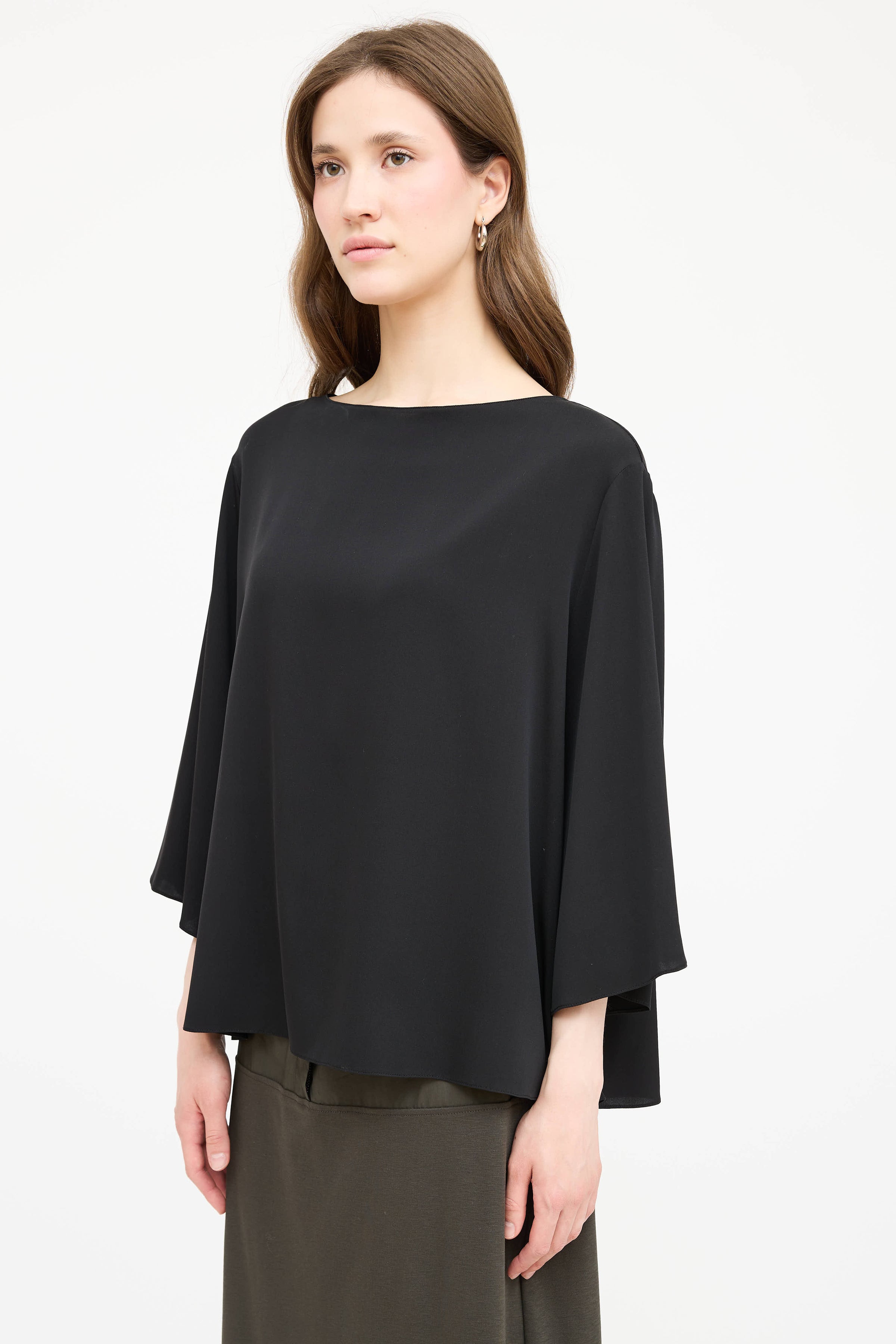 Pre-owned The Row black top featuring a boat neckline, and 3/4 flared sleeves.
