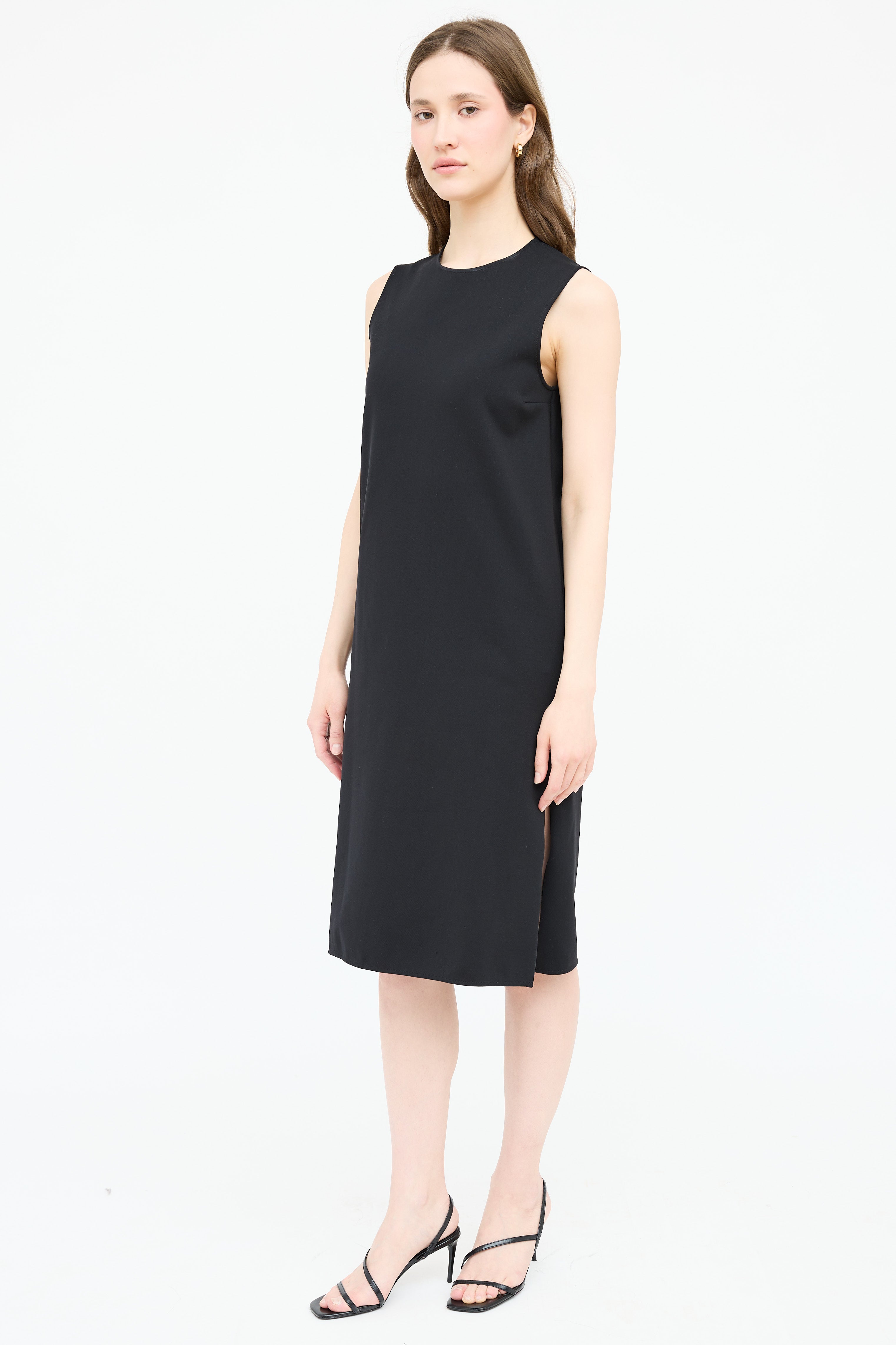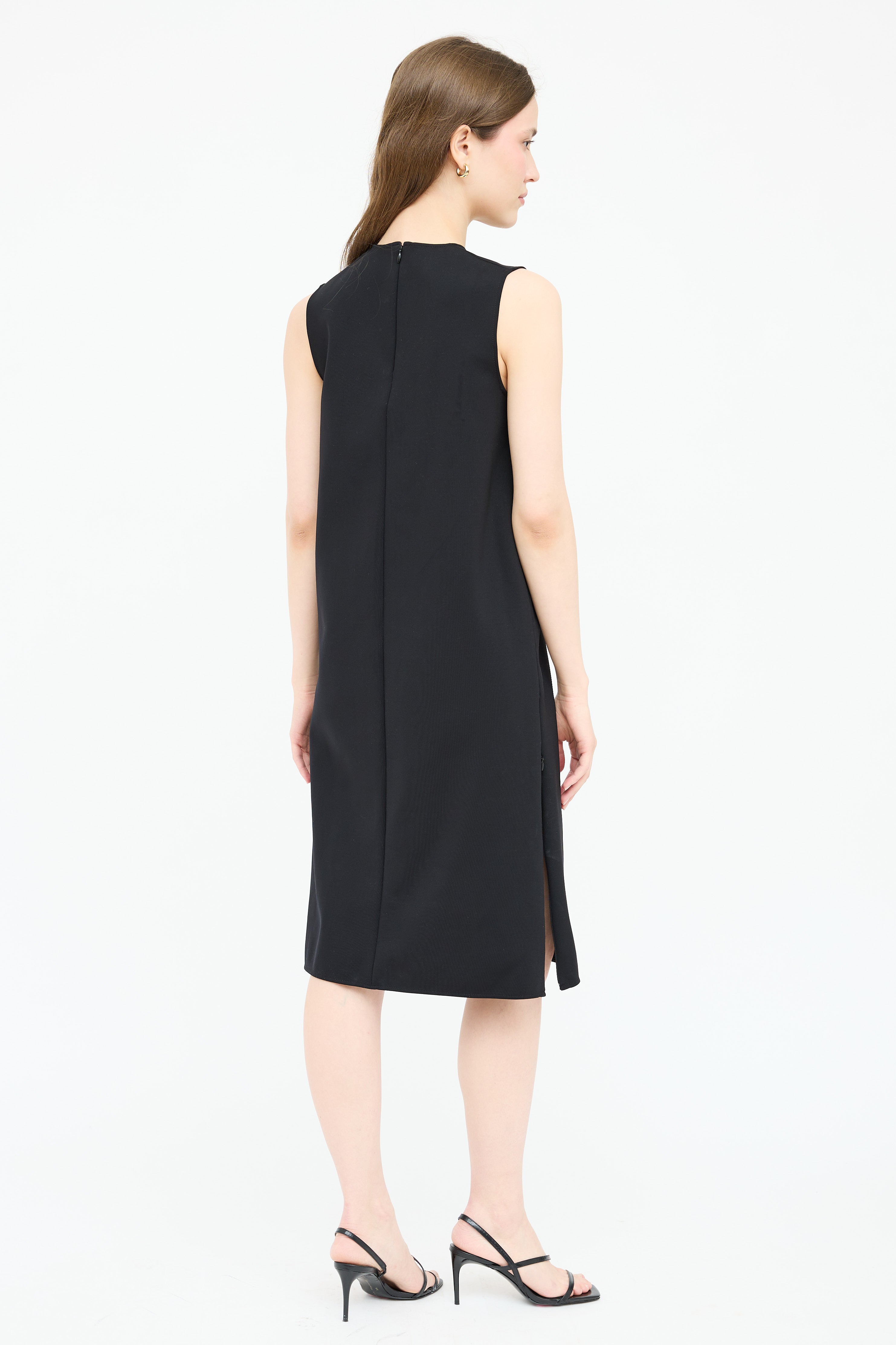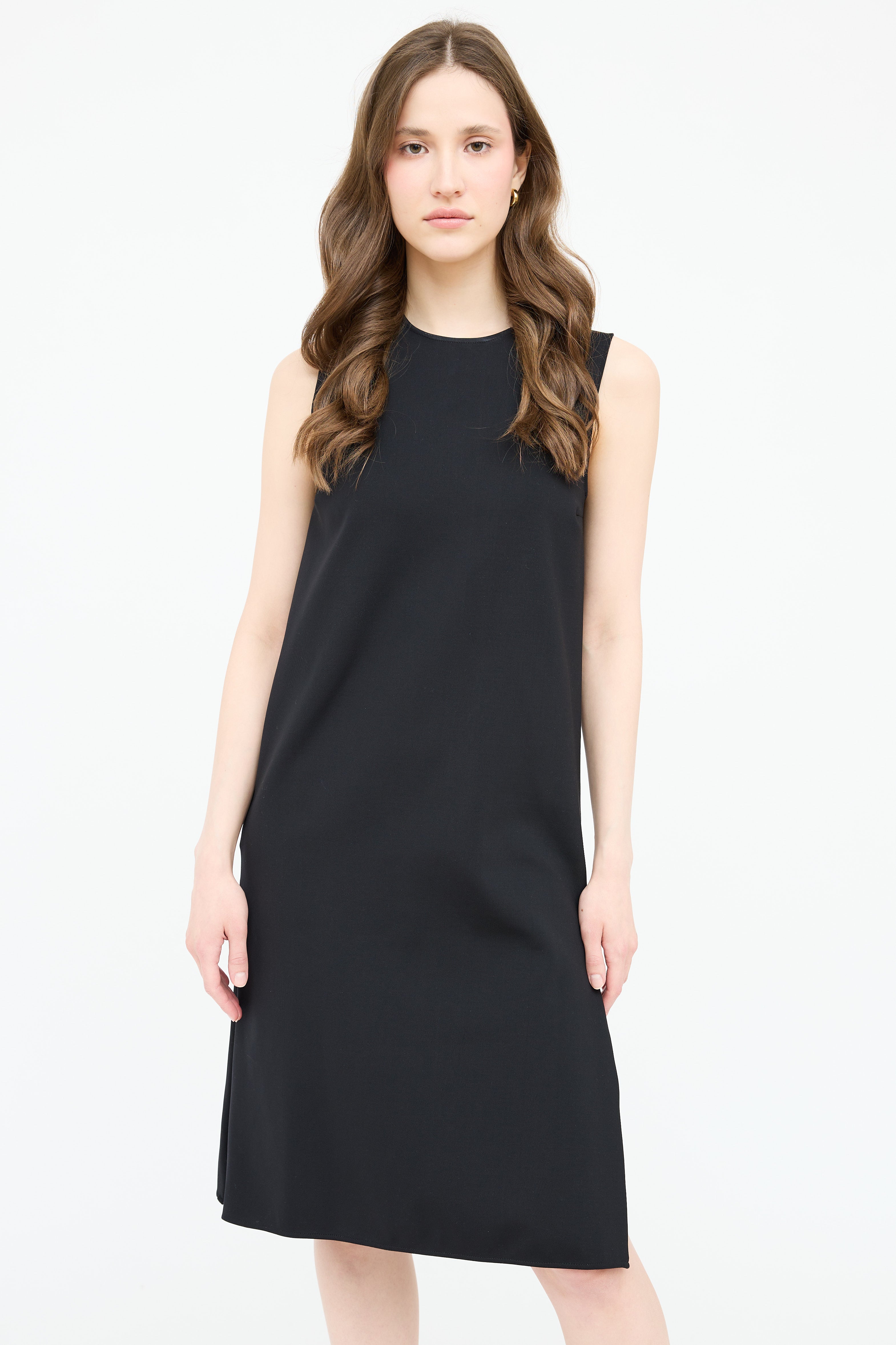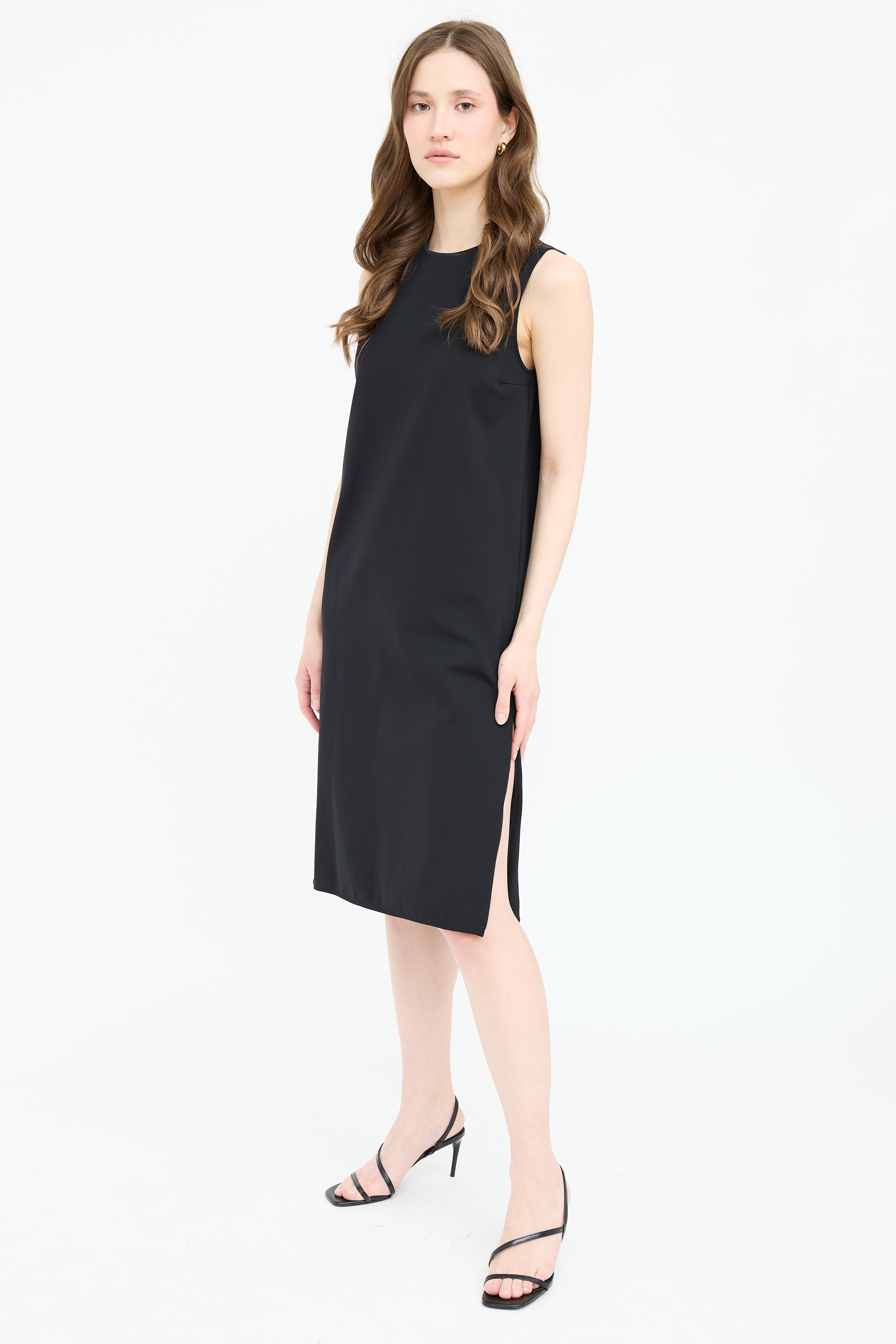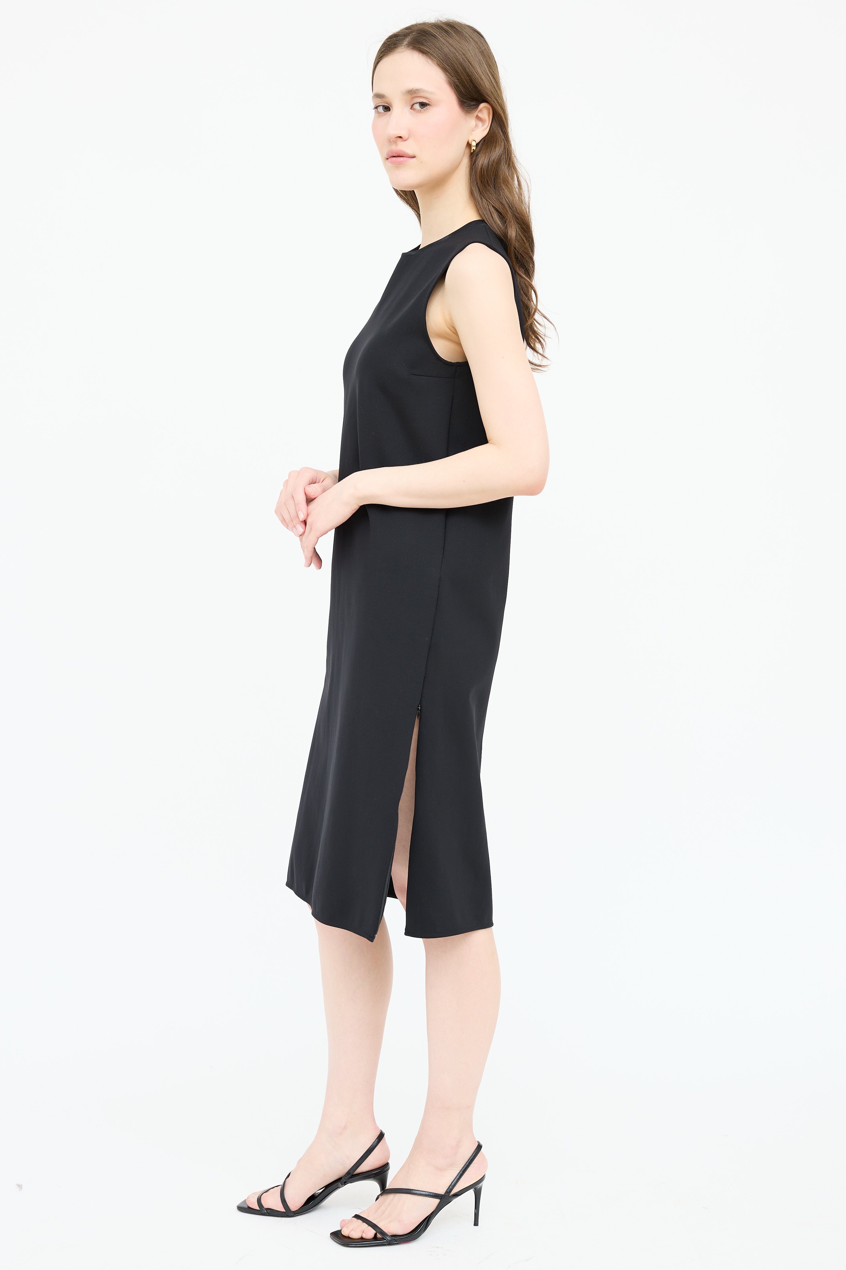 Pre-owned The Row black sleeveless dress featuring neoprene material, round neckline, zip closure at back and zip detail on both side seams. Unlined.