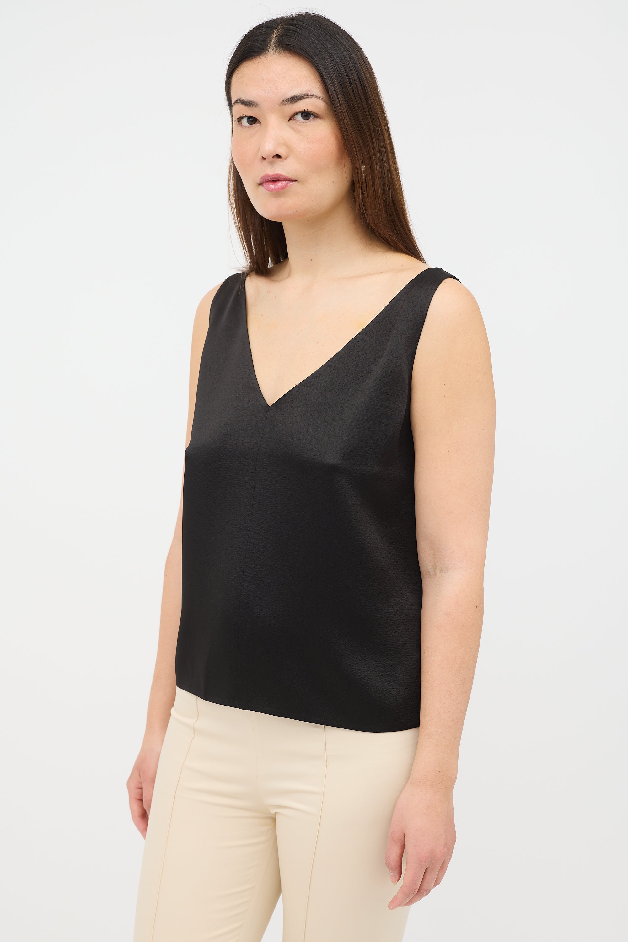 Pre-owned The Row black satin tank top featuring a V-neckline and back.