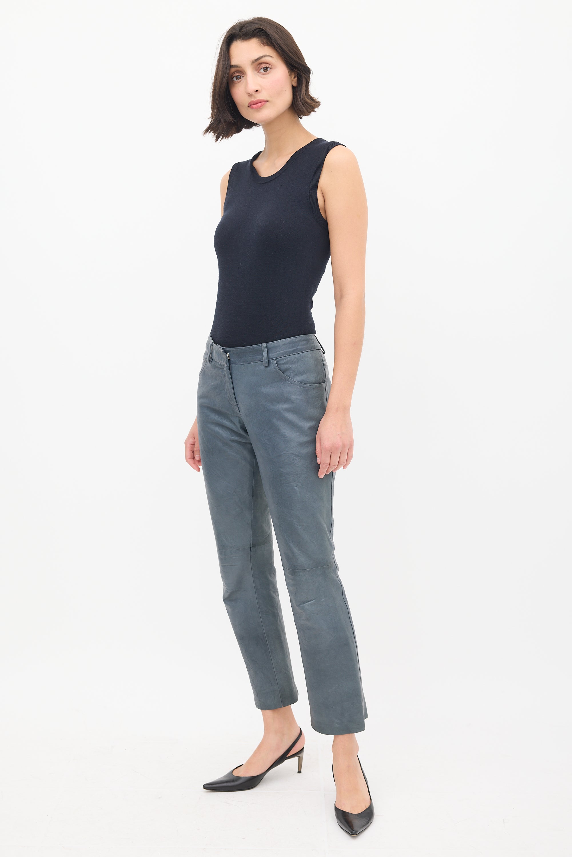 Slate Leather Straight Leg Trouser Small Size Guide