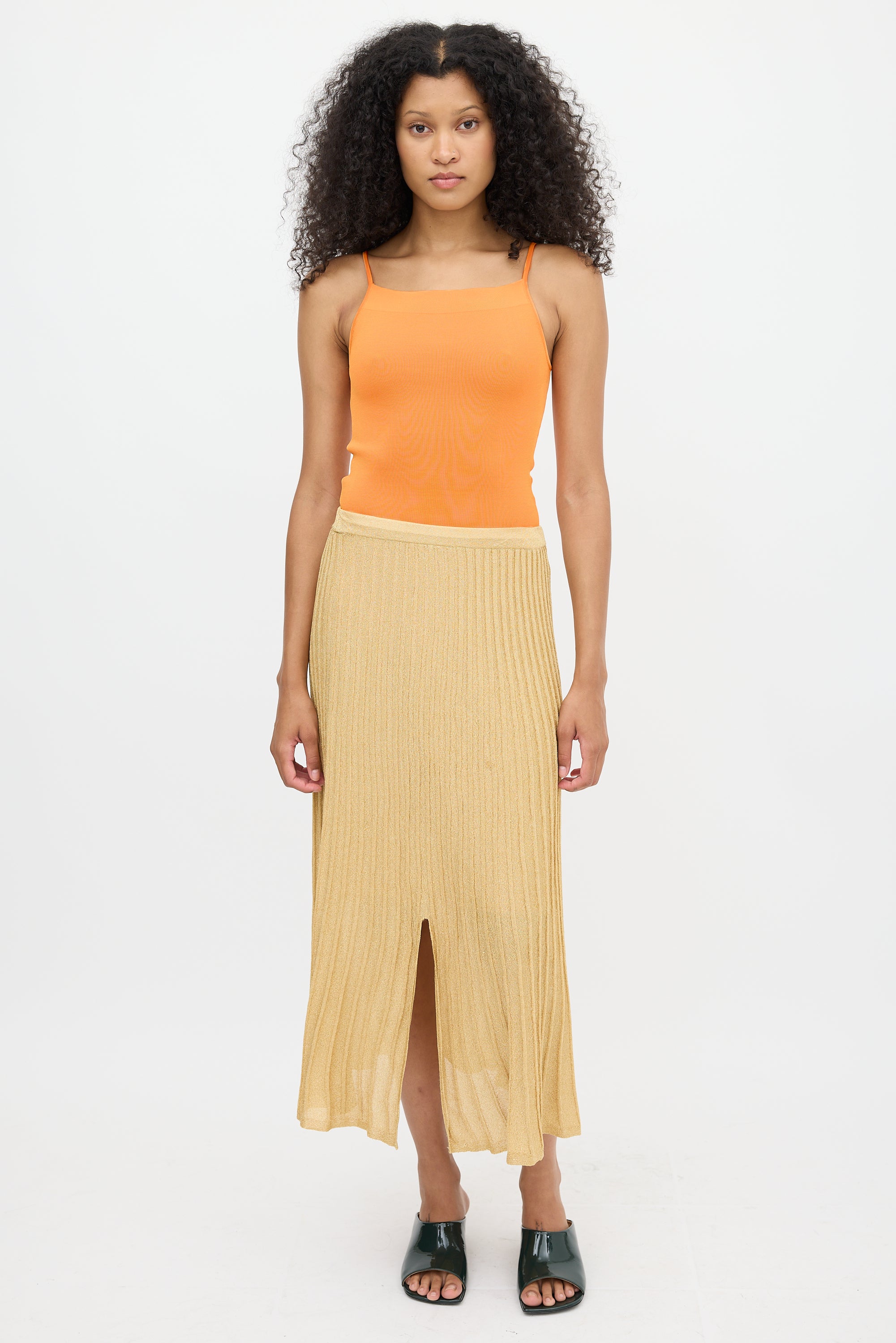 Pre-owned Low Classic orange knit bodysuit featuring a square neckline, sleeveless styling, and ribbed trim throughout.