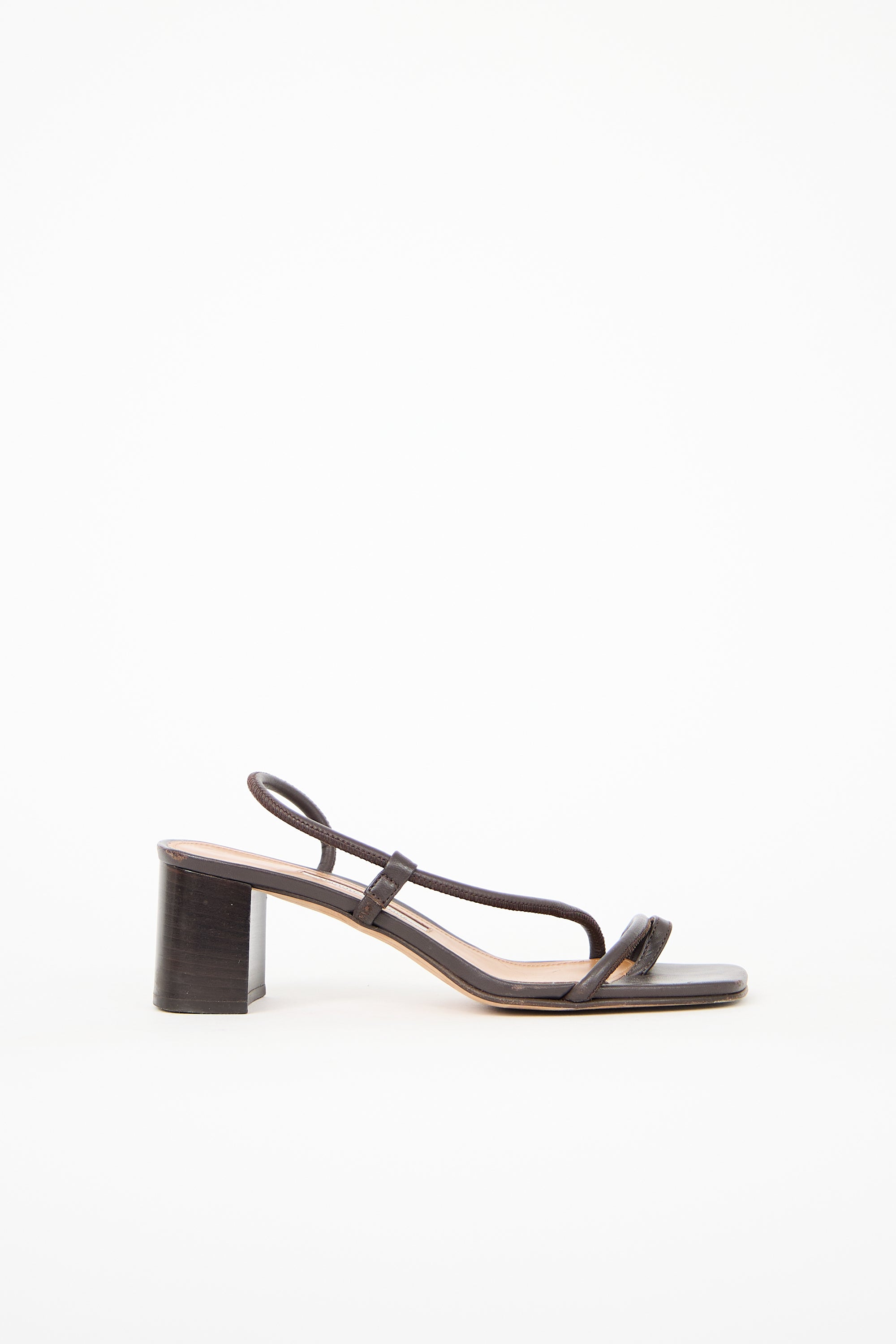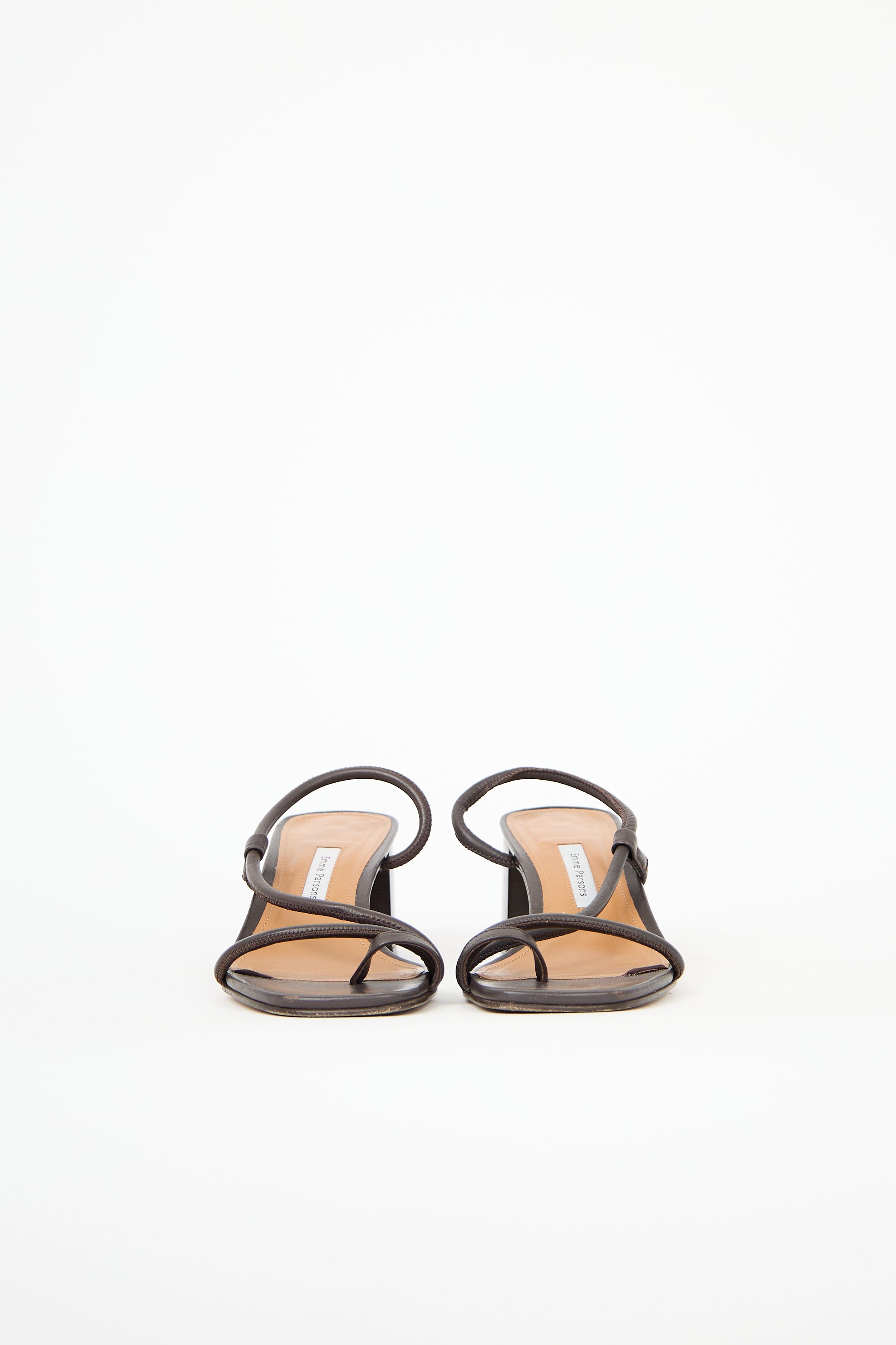 Pre-owned Emme Parsons brown leather Brera heels featuring open square toe, slingback strap, and block heel.