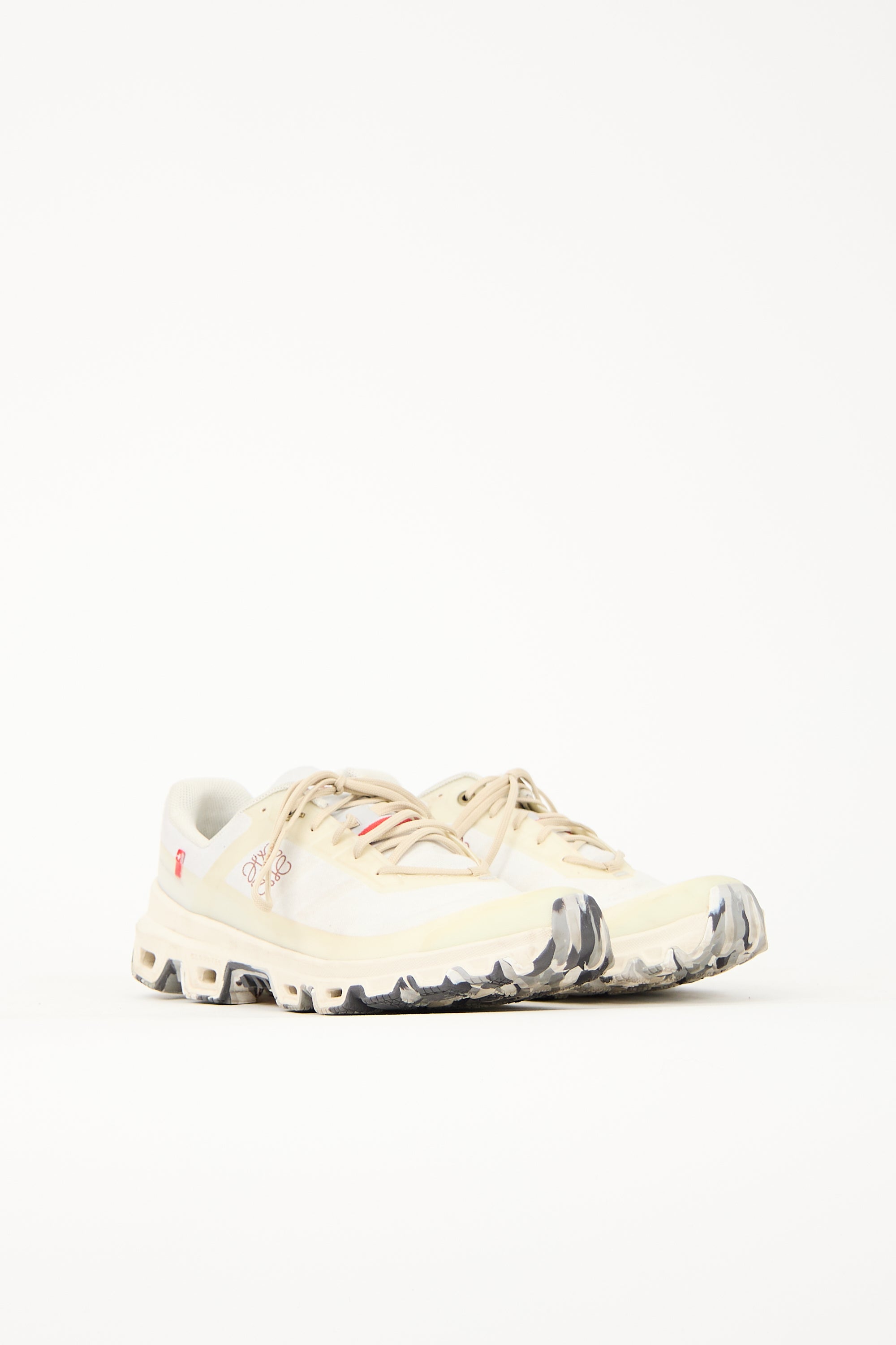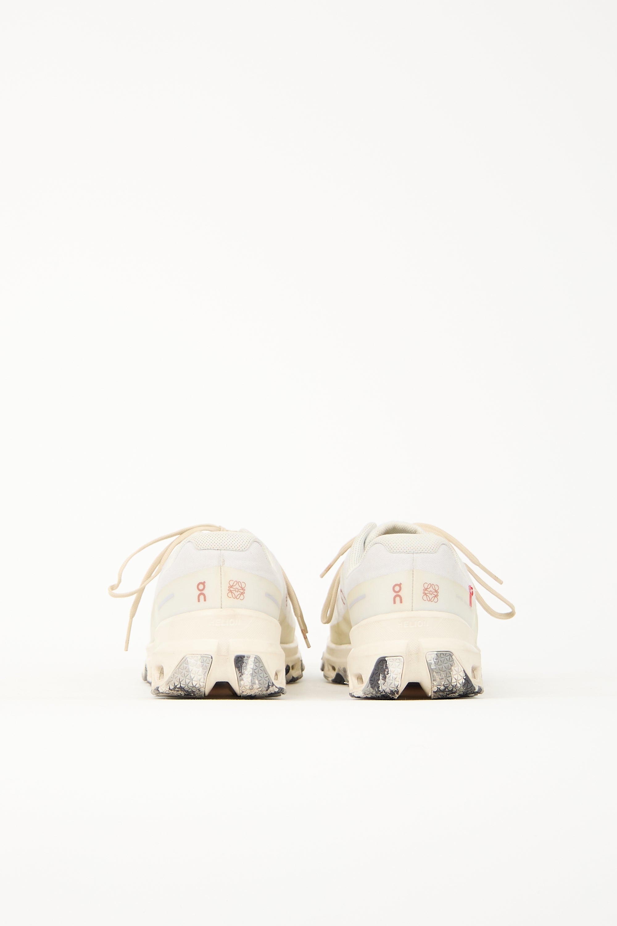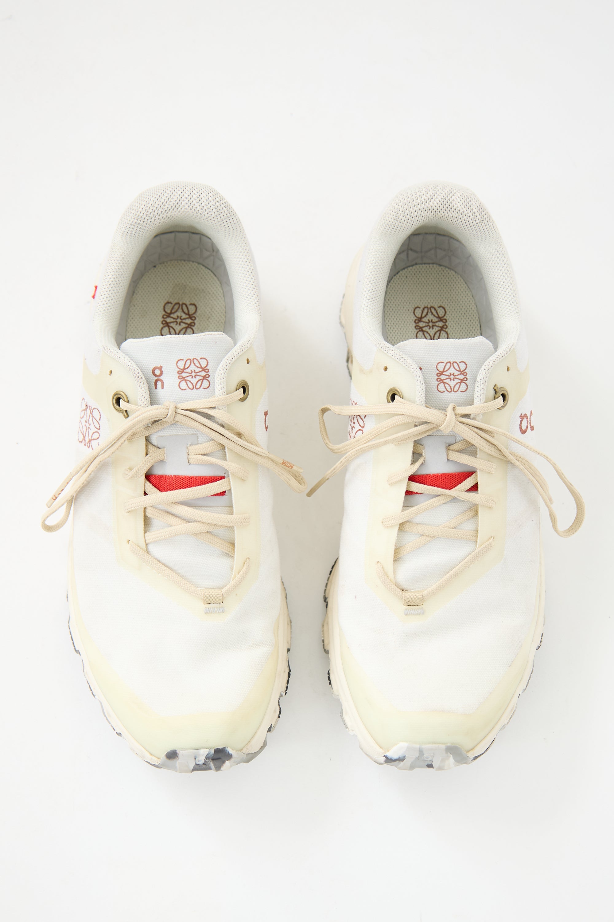 Pre-owned Loewe X ON white Cloudadventure sneakers featuring a tapered square toe, lace up front, stamped logo at side and counter, and treaded rubber sole.