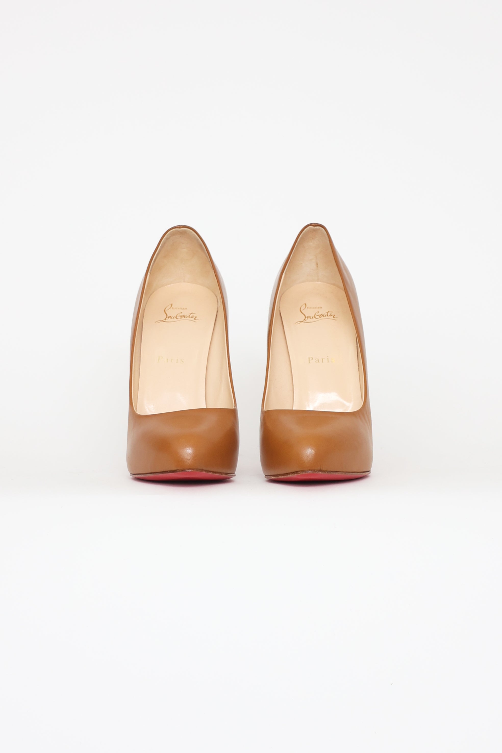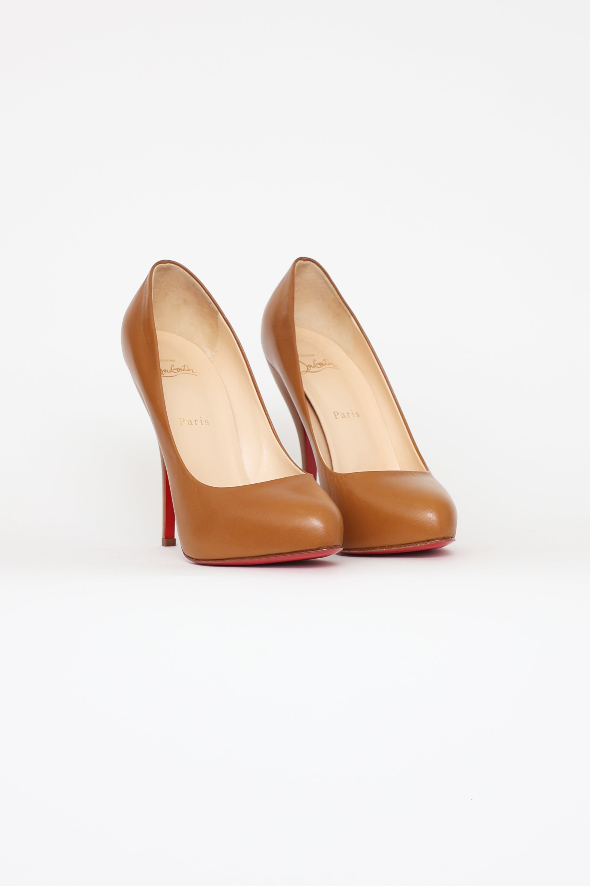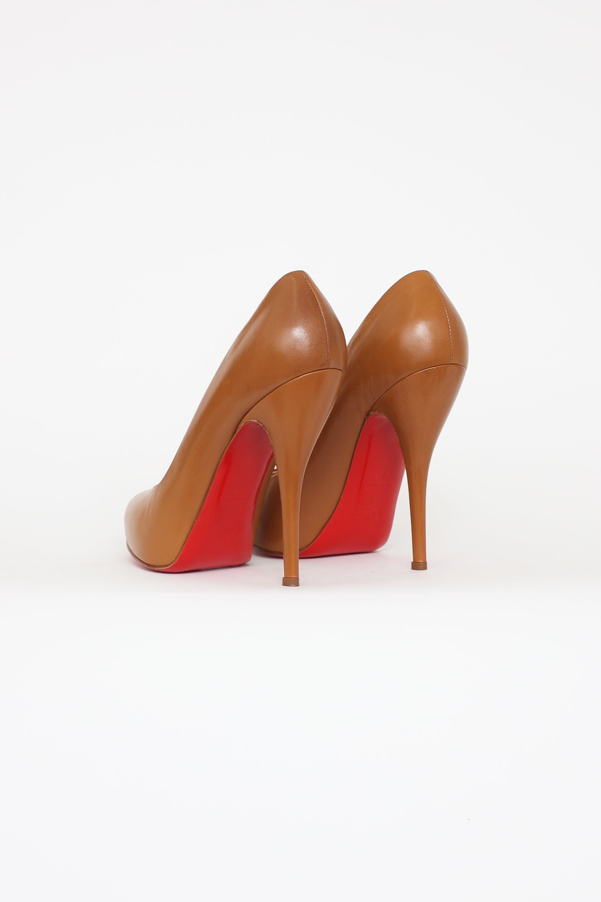 Pre-owned Christian Louboutin brown Feticha stiletto pumps featuring signature red bottom sole.
