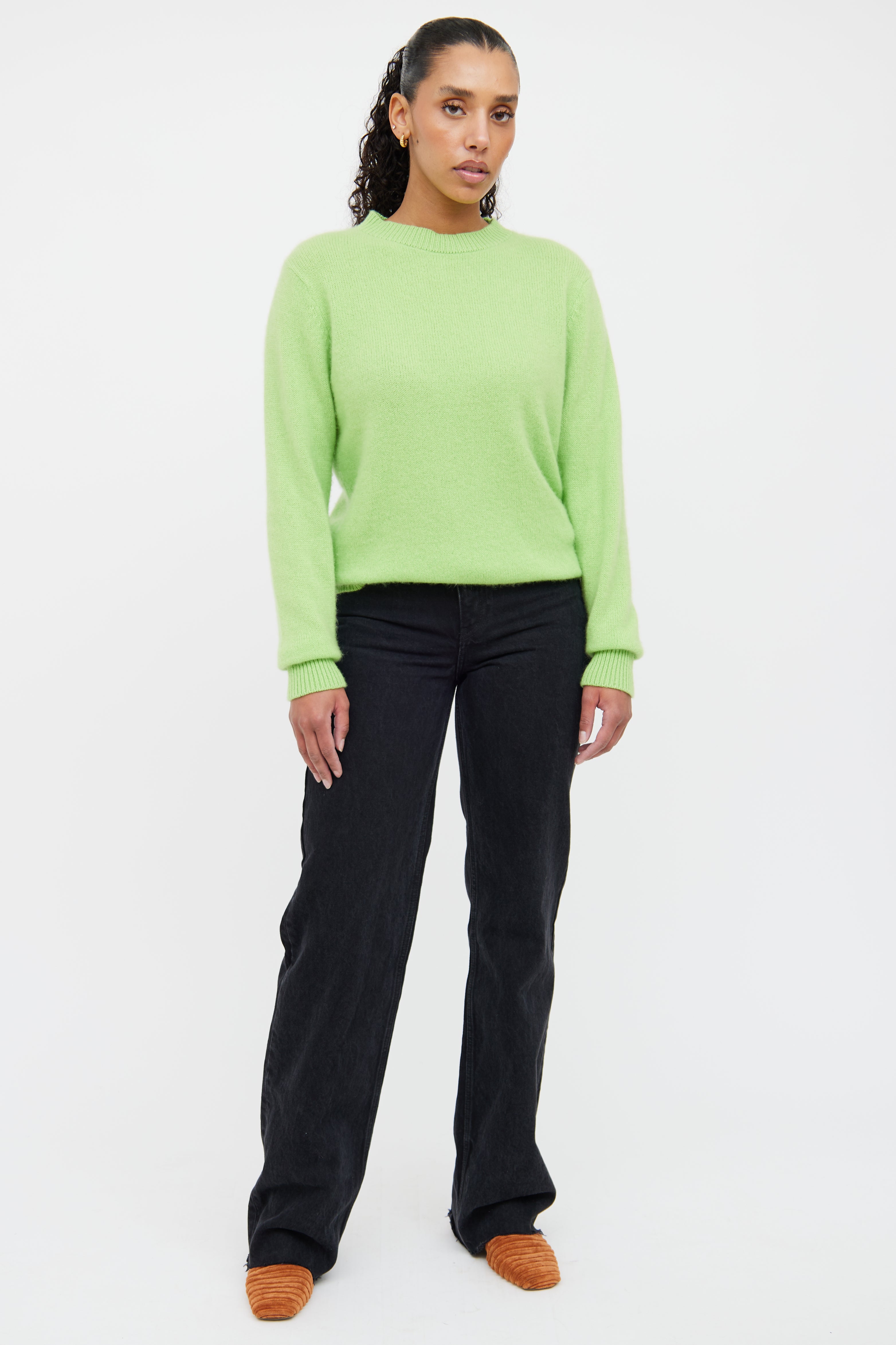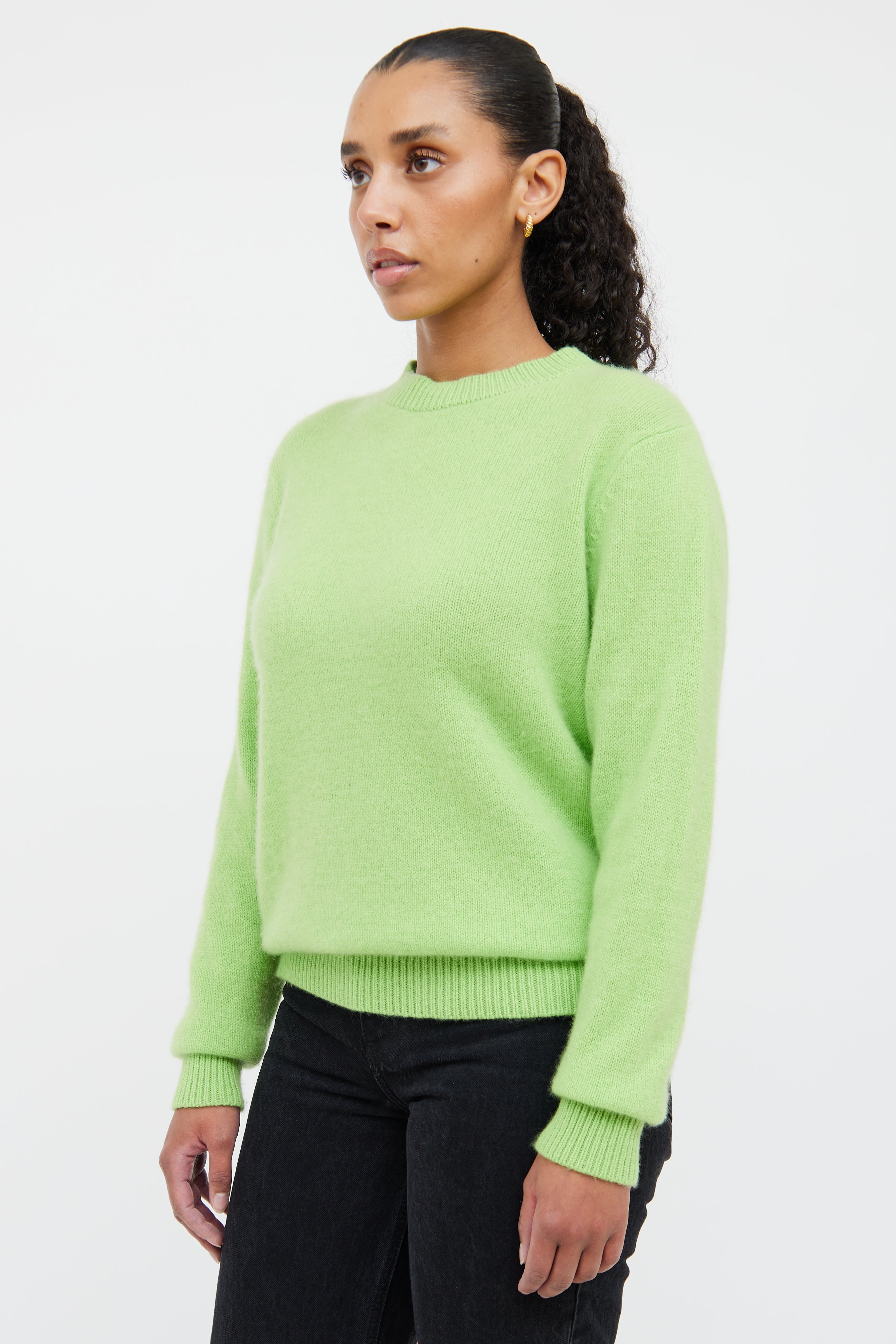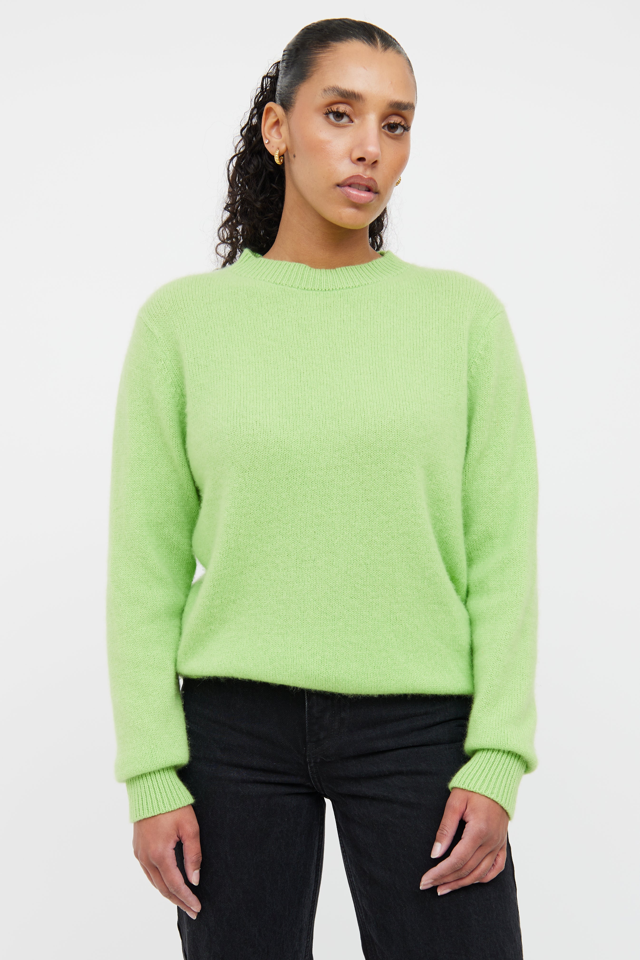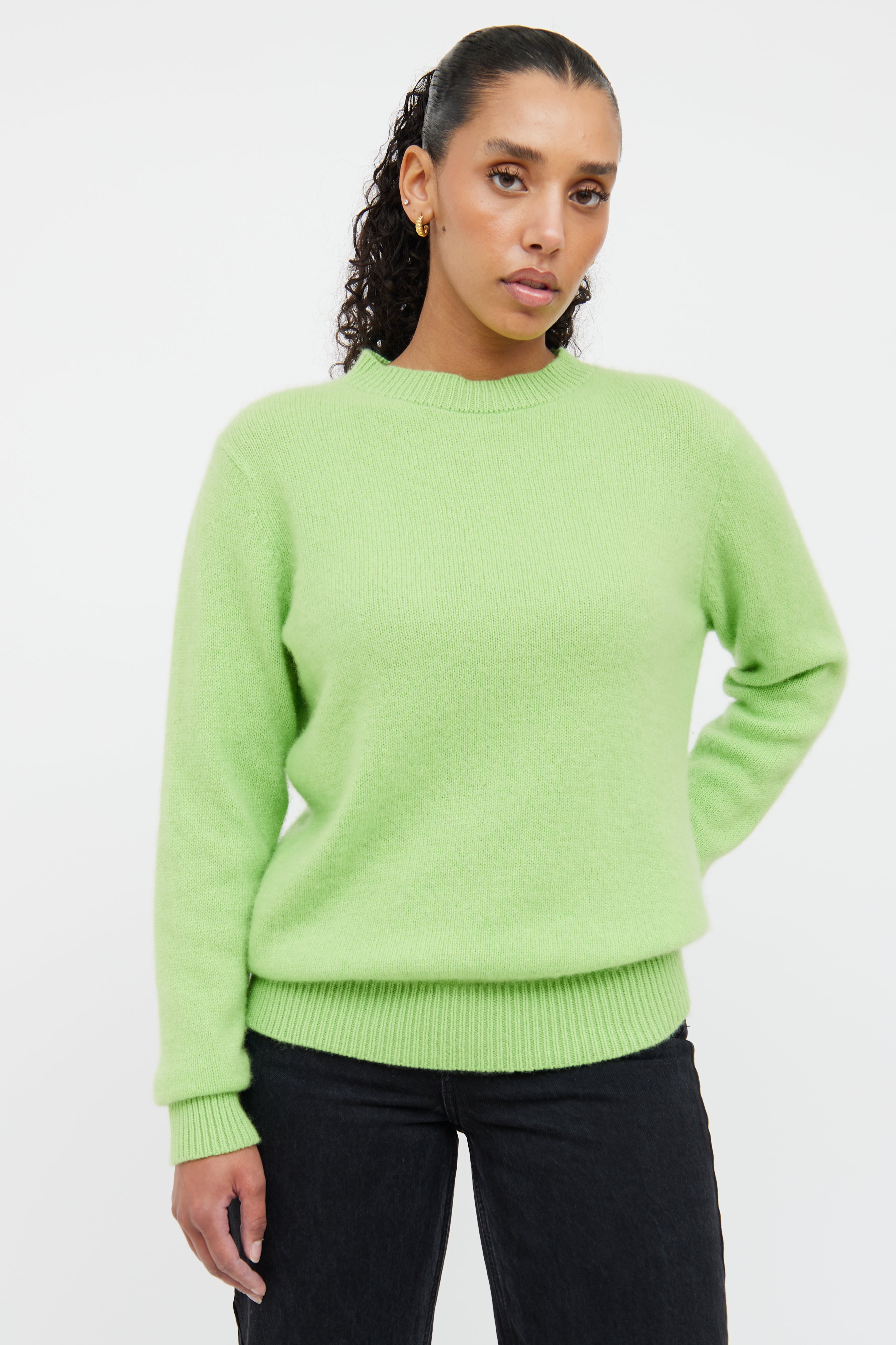 Pre-owned The Elder Statesman green cashmere knit sweater featuring a round neckline, drop shoulders, long sleeves and ribbed hemming throughout.