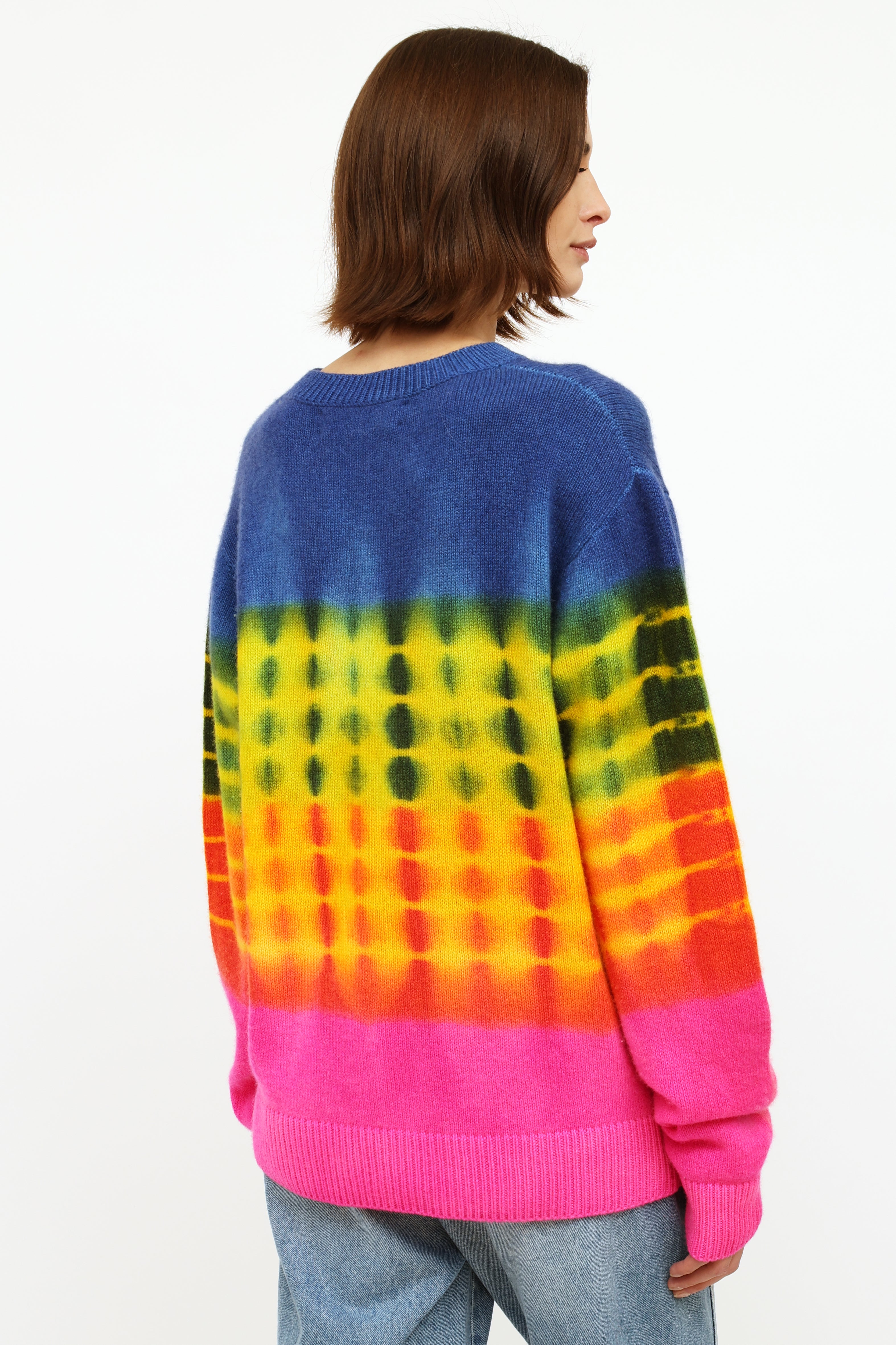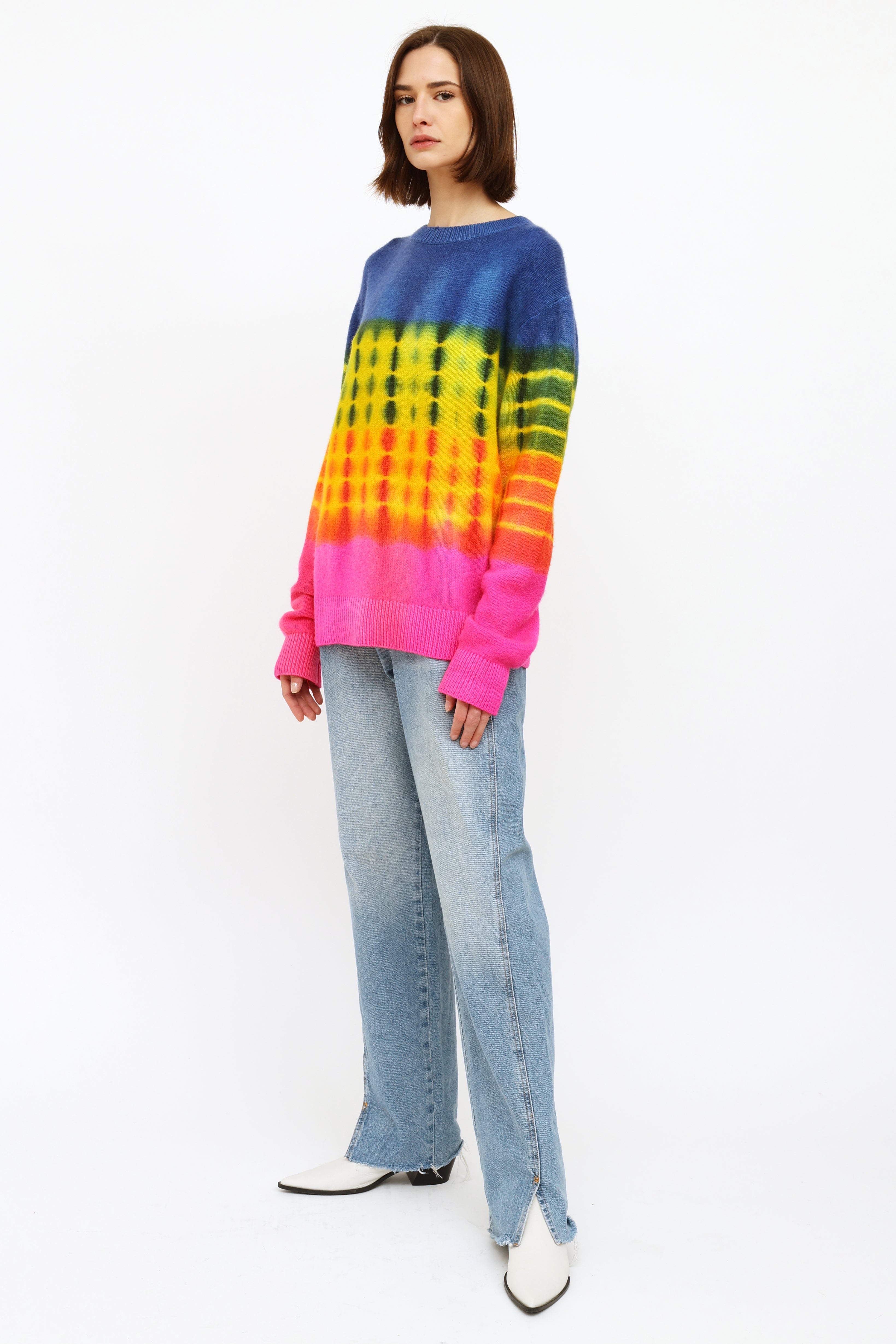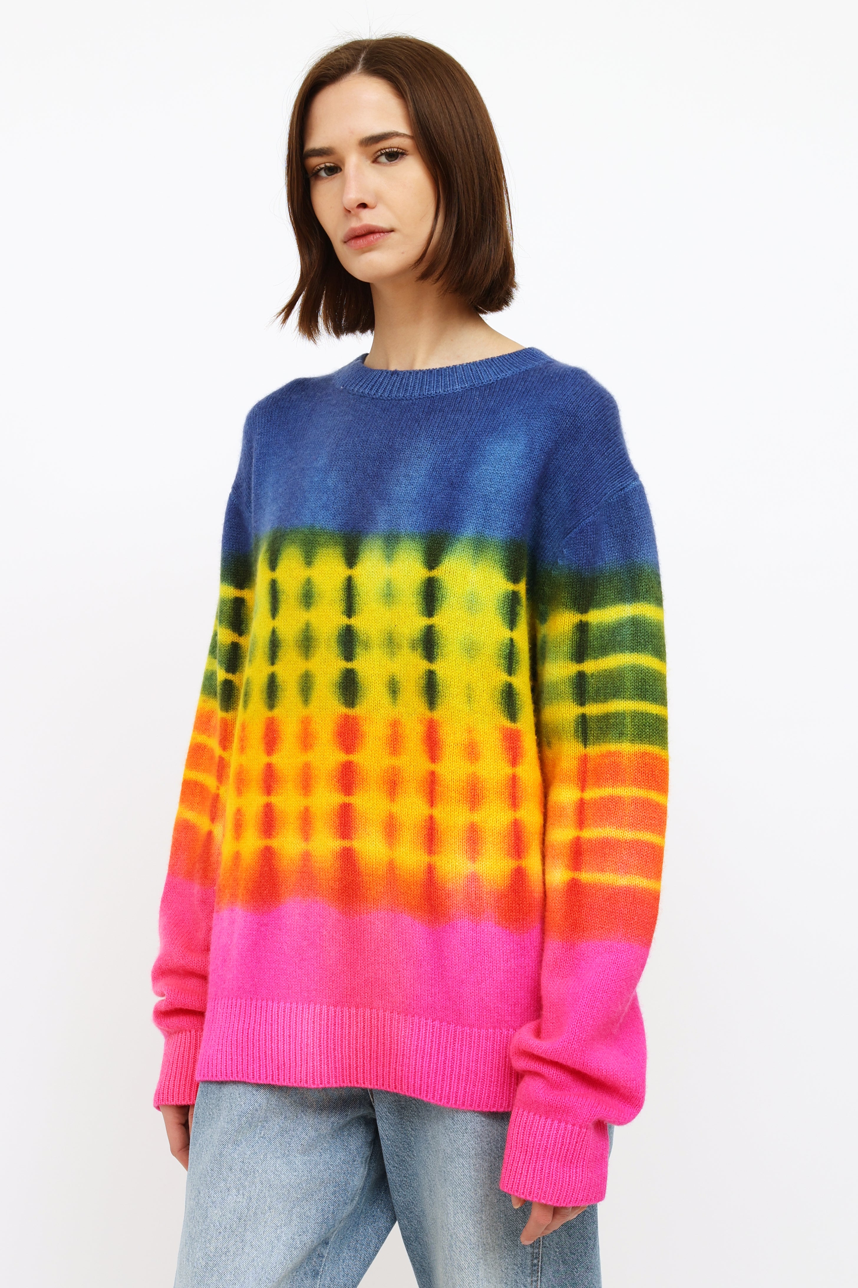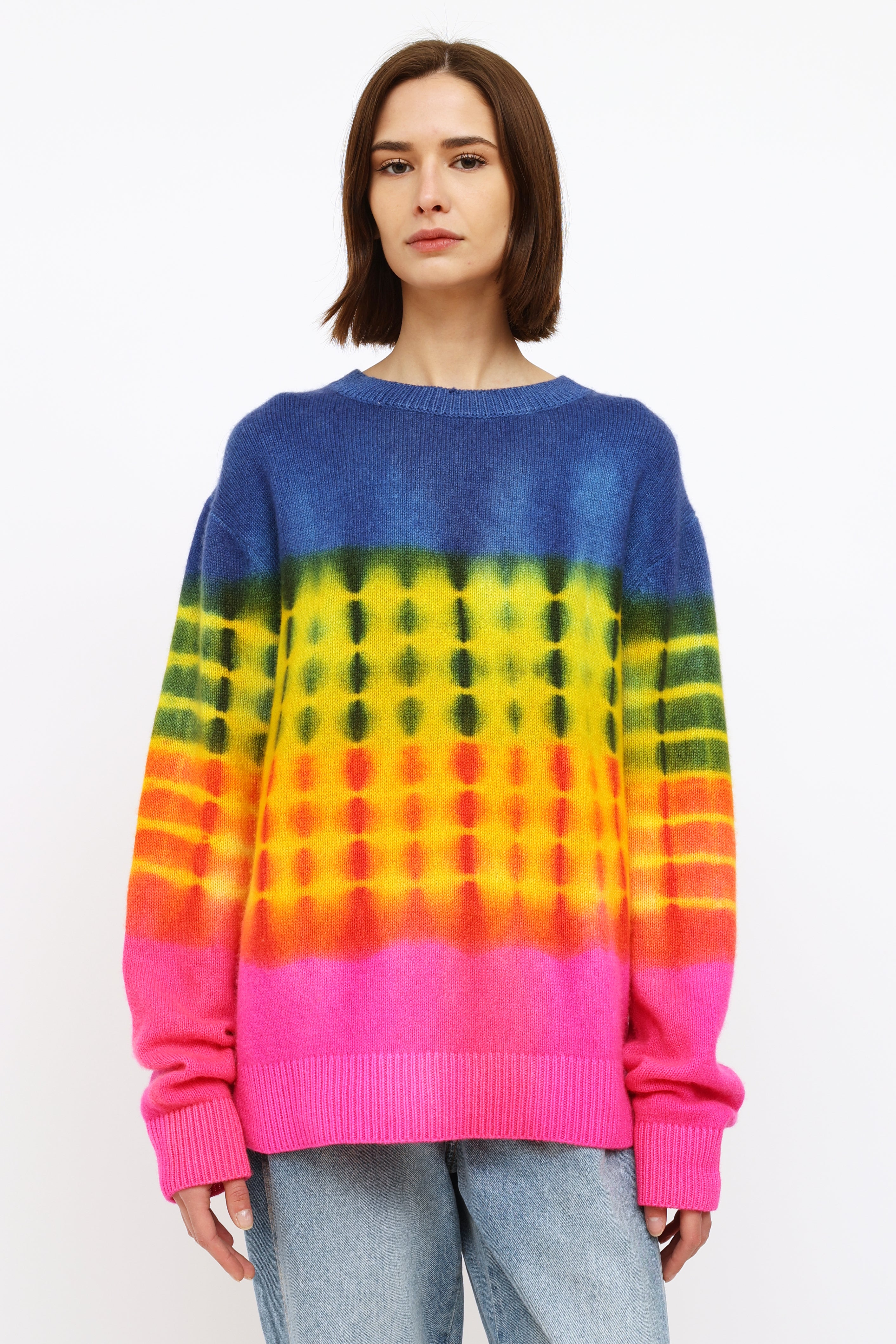 Pre-owned The Elder Statesman multicolour cashmere sweater featuring tie-dye pattern, ribbed neckline, ribbed cuffs, and a ribbed hemline.