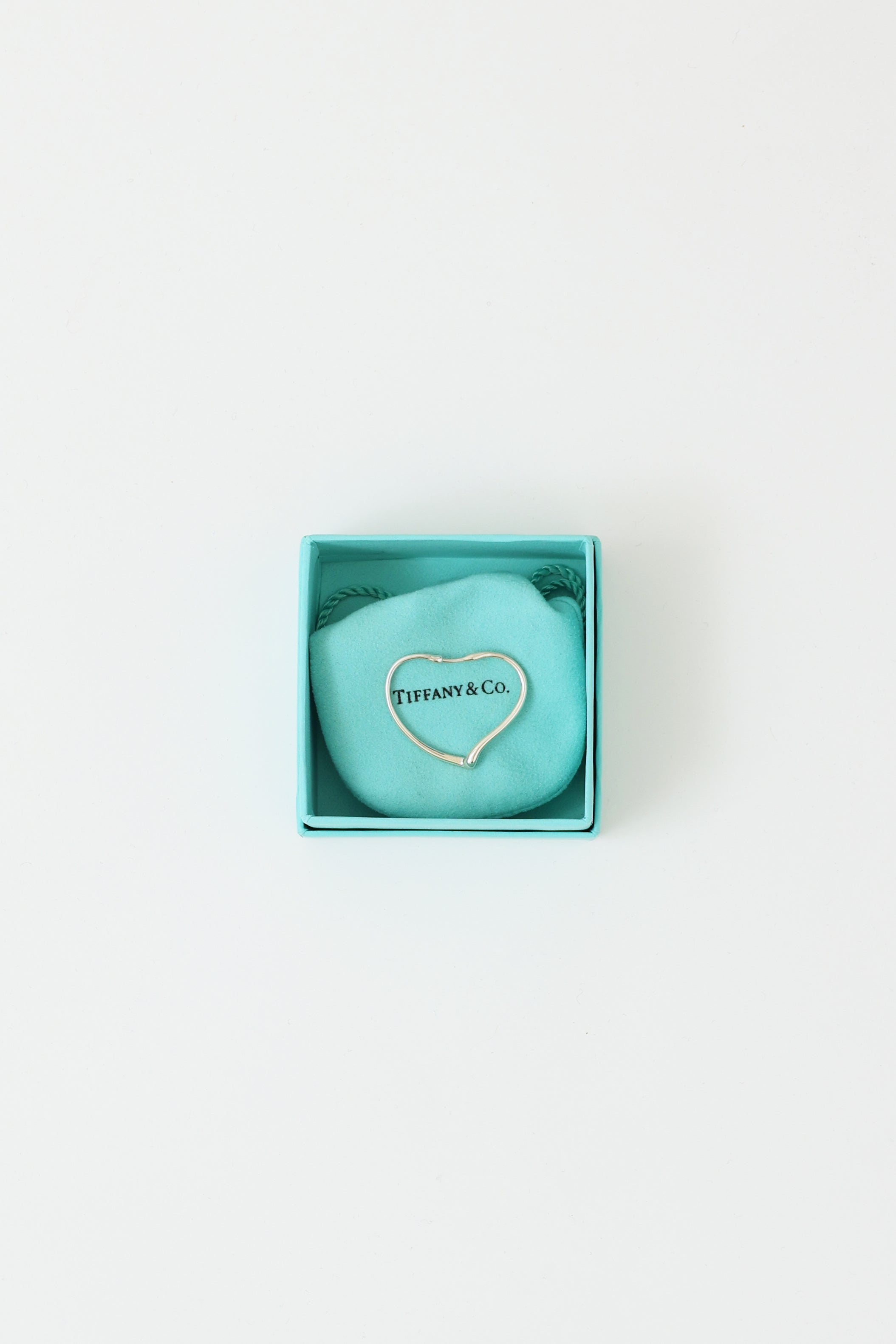Pre-owned Tiffany & Co. sterling silver open heart hoop earrings featuring sterling silver heart shape hoops and sleeper back closures.