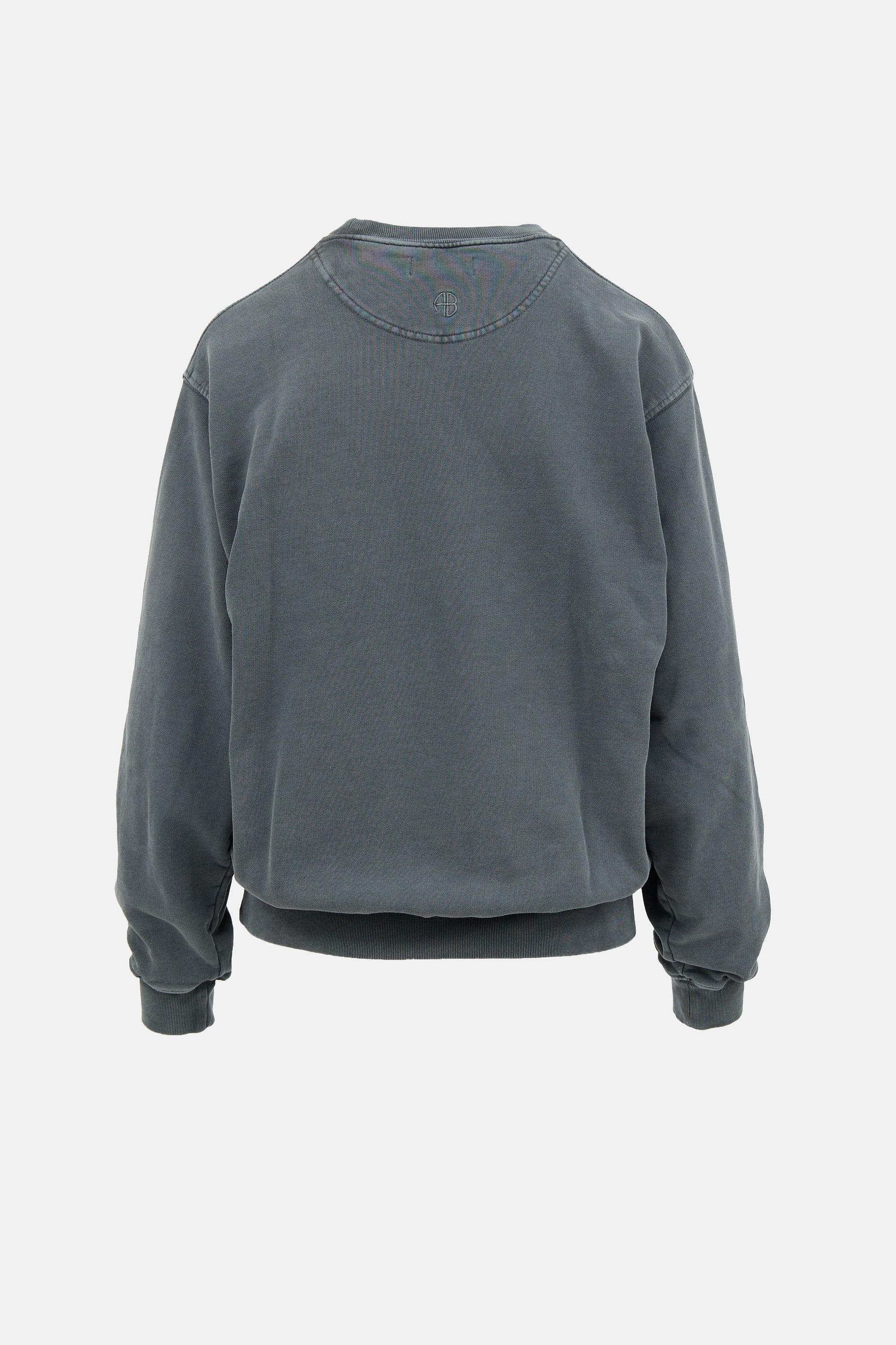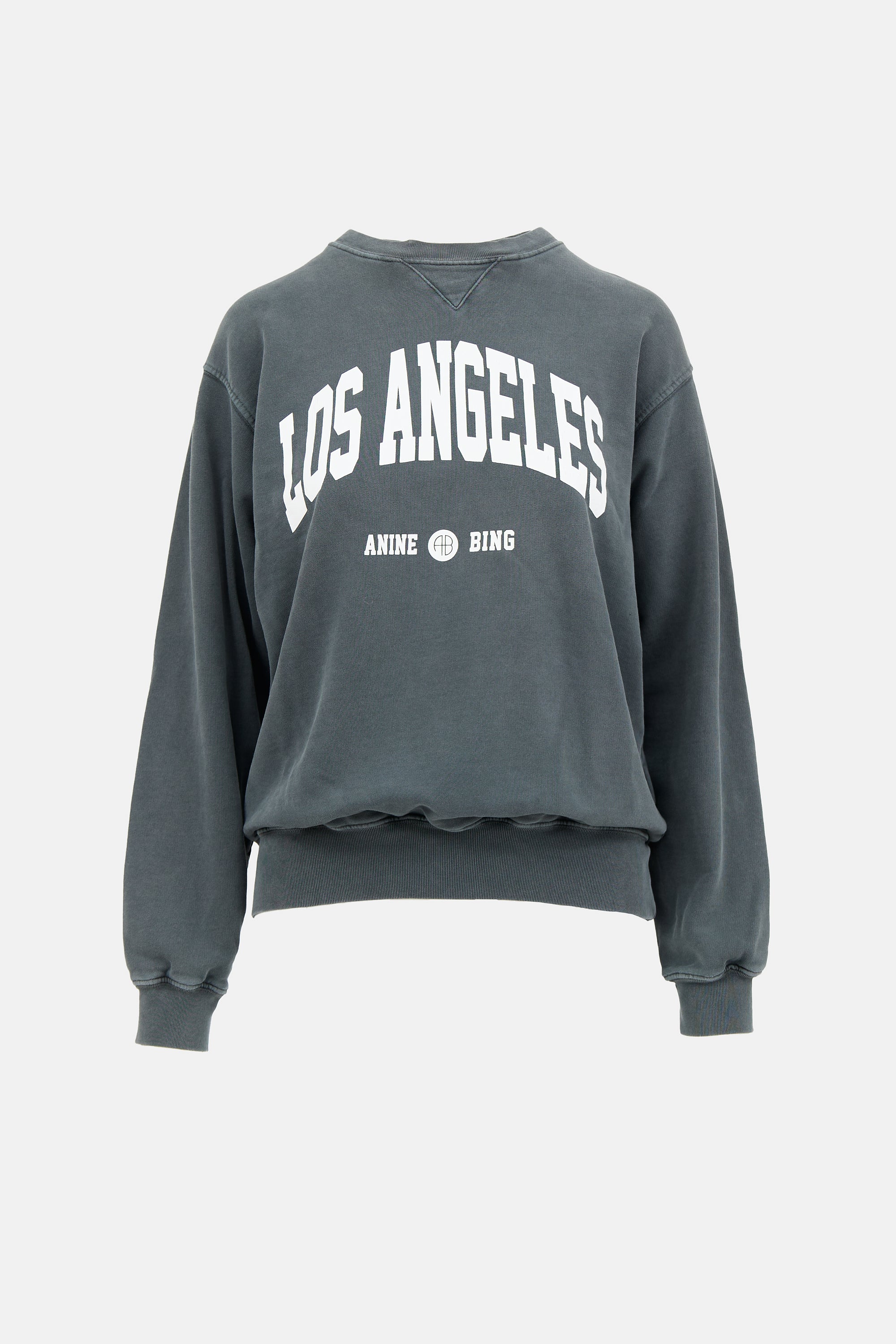 Pre-owned Anine Bing dark grey sweatshirt featuring a ribbed crew neckline, white printed logo and graphic at chest, embroidered logo at back collar, and a ribbed hem and cuffs.