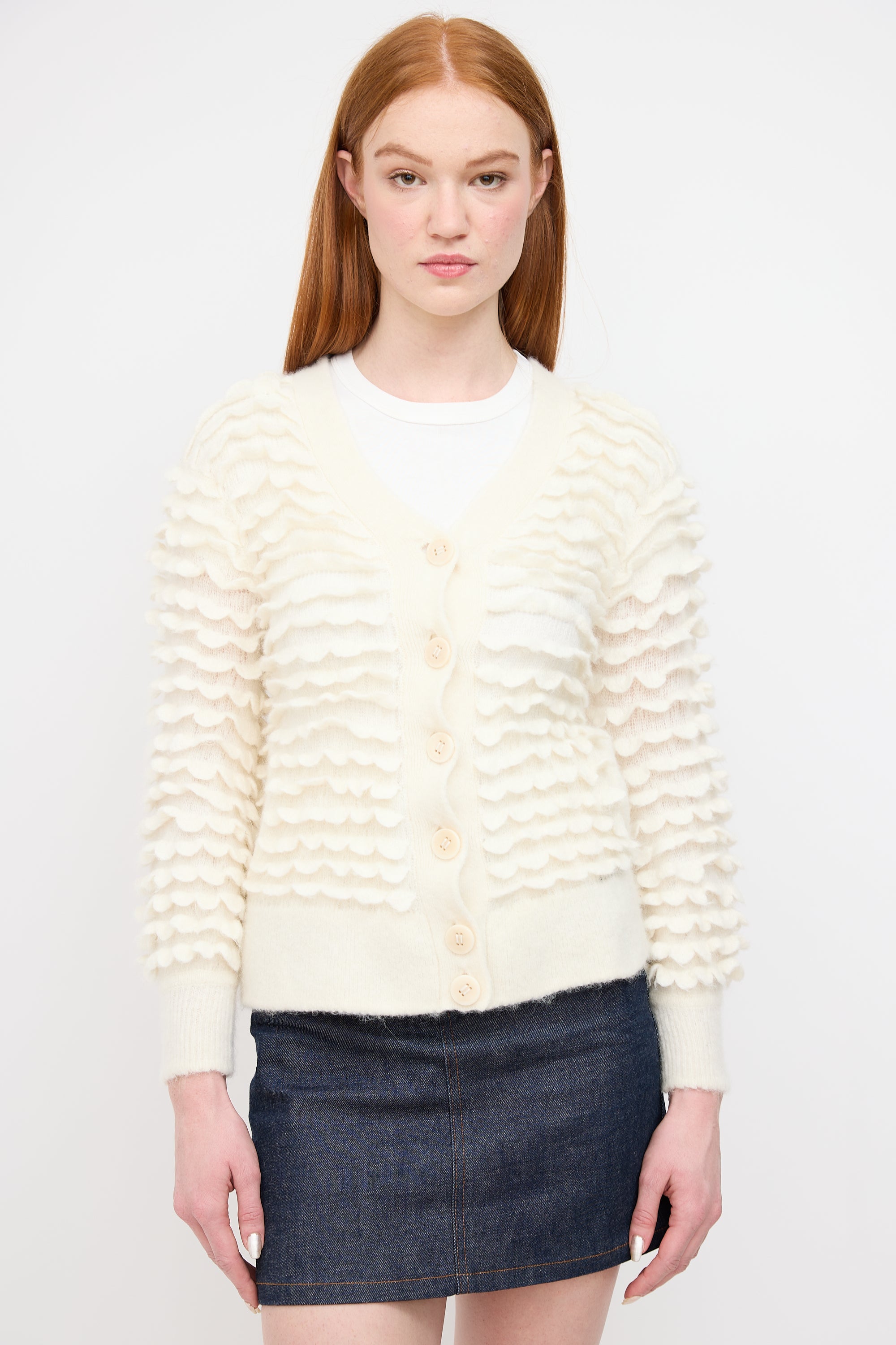 Zimmermann Cream Wool Scallop Frill Cardigan