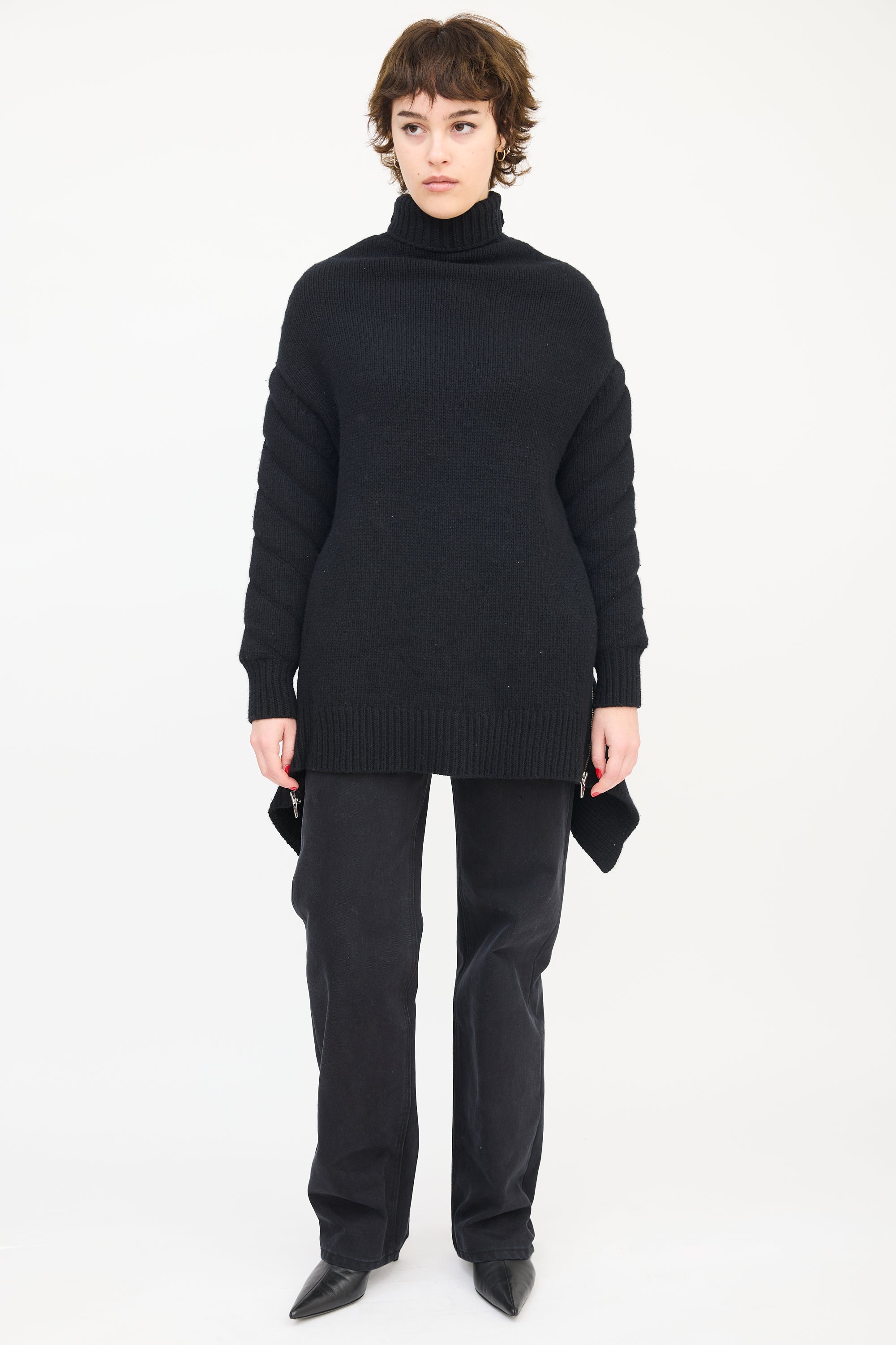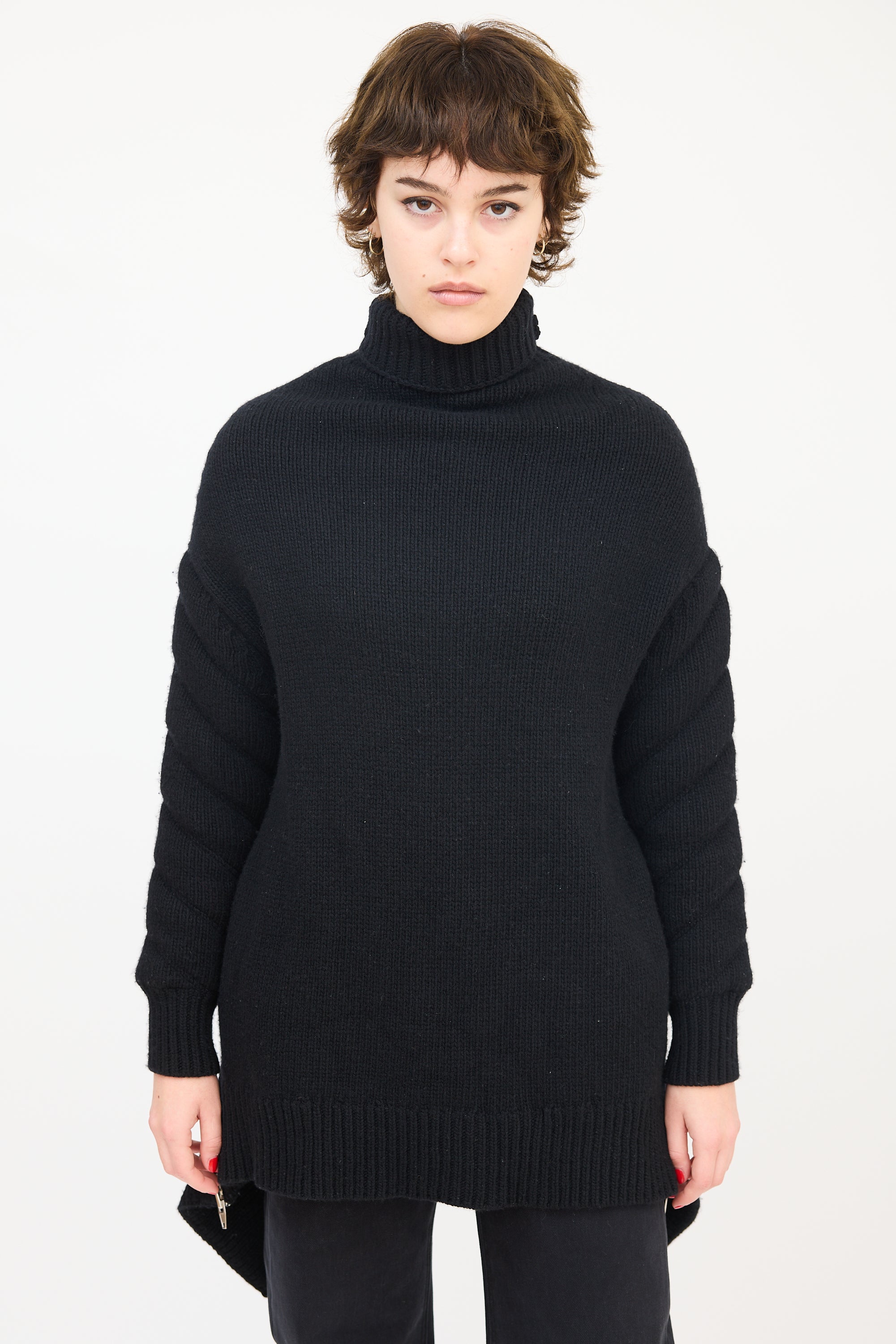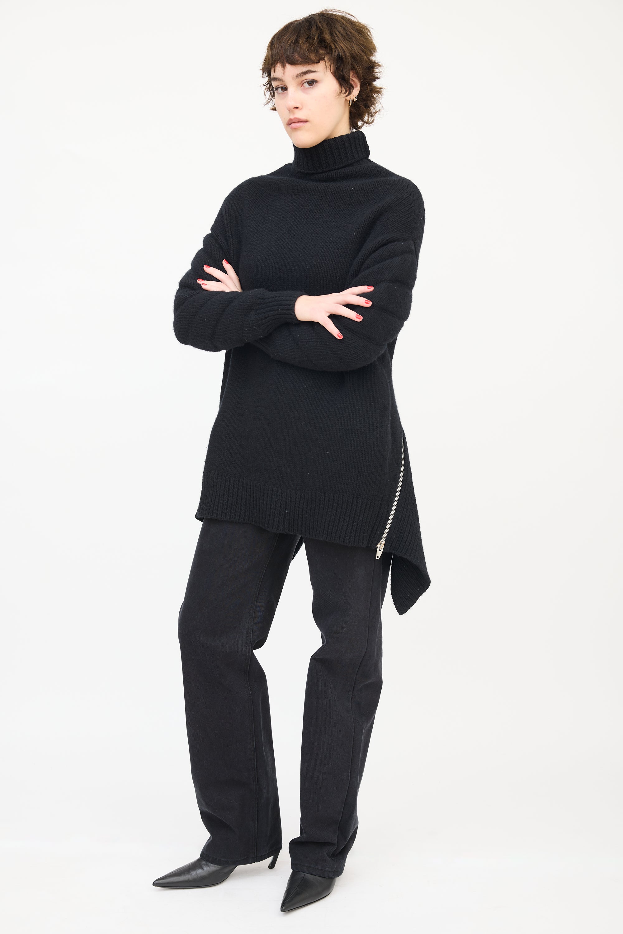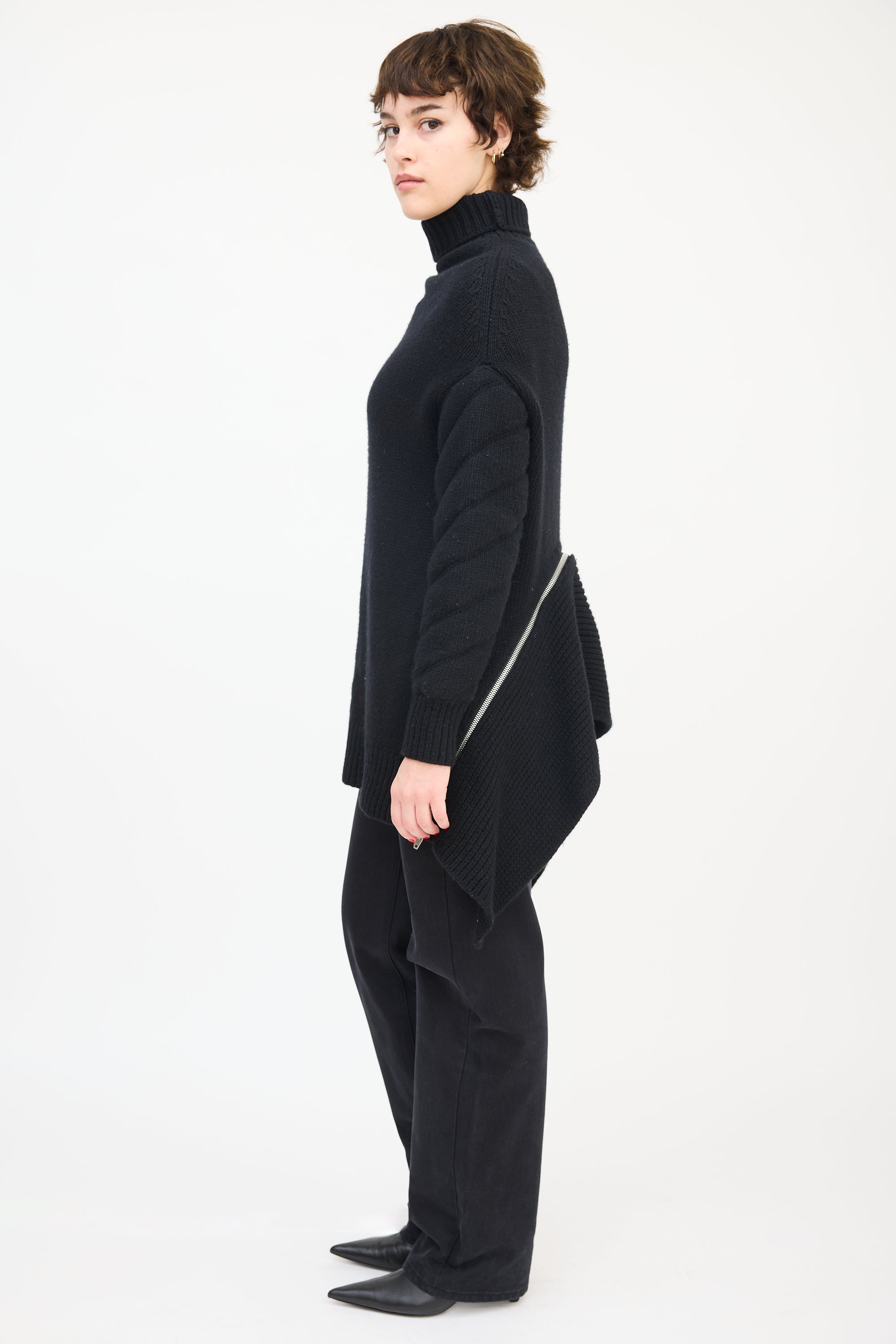 Black Wool Zip Flounce Turtleneck Sweater Small Size Guide