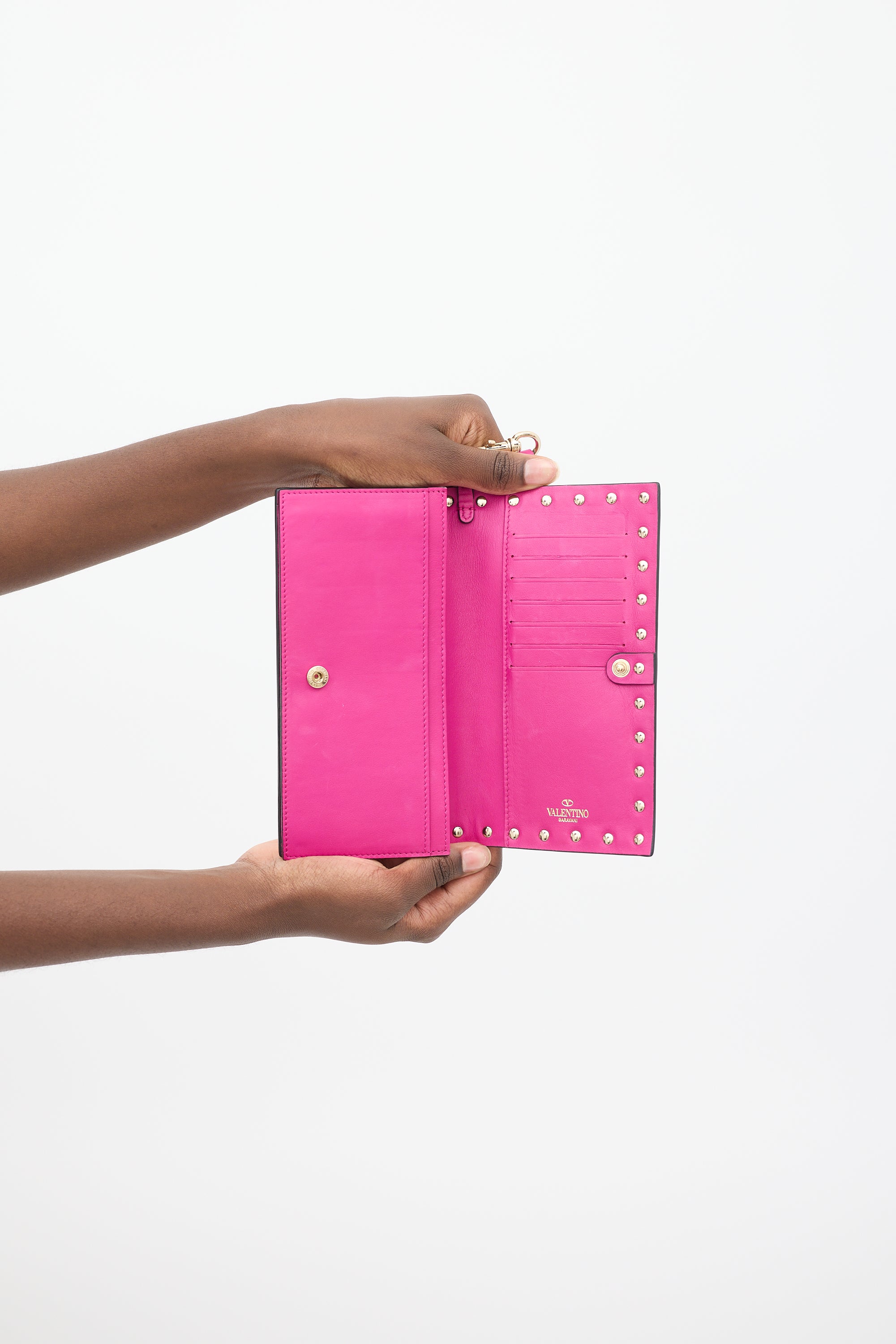 Fuchsia Leather Rockstud Long Bifold Wallet