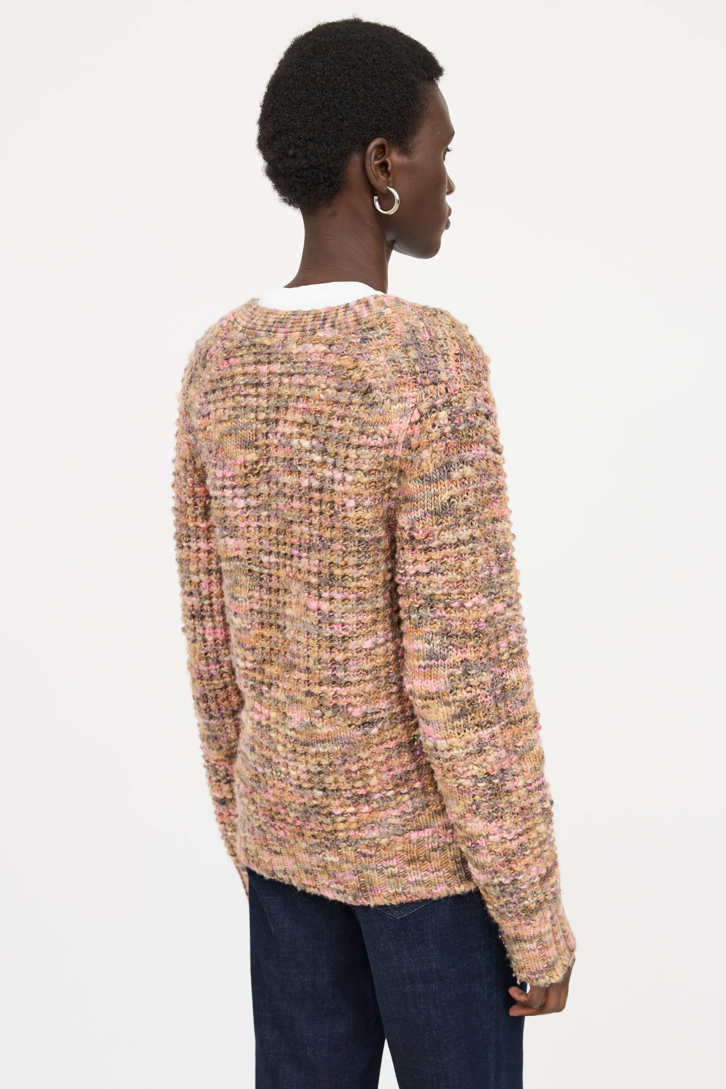 Pre-owned Acne Studios pink and multicolour space dyed knit cardigan featuring V neckline, button down closure, ribbed cuffs, and a ribbed hemline.